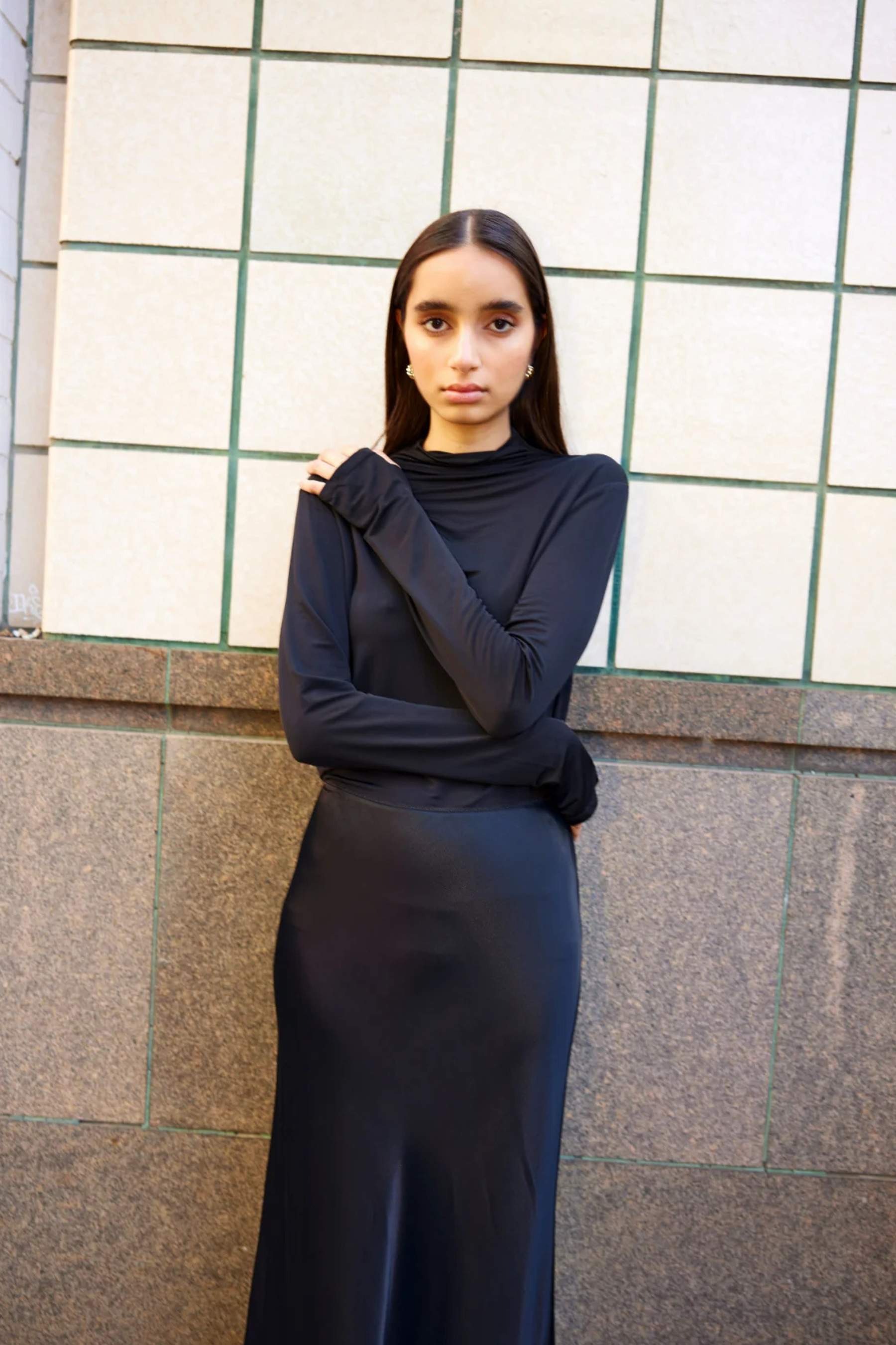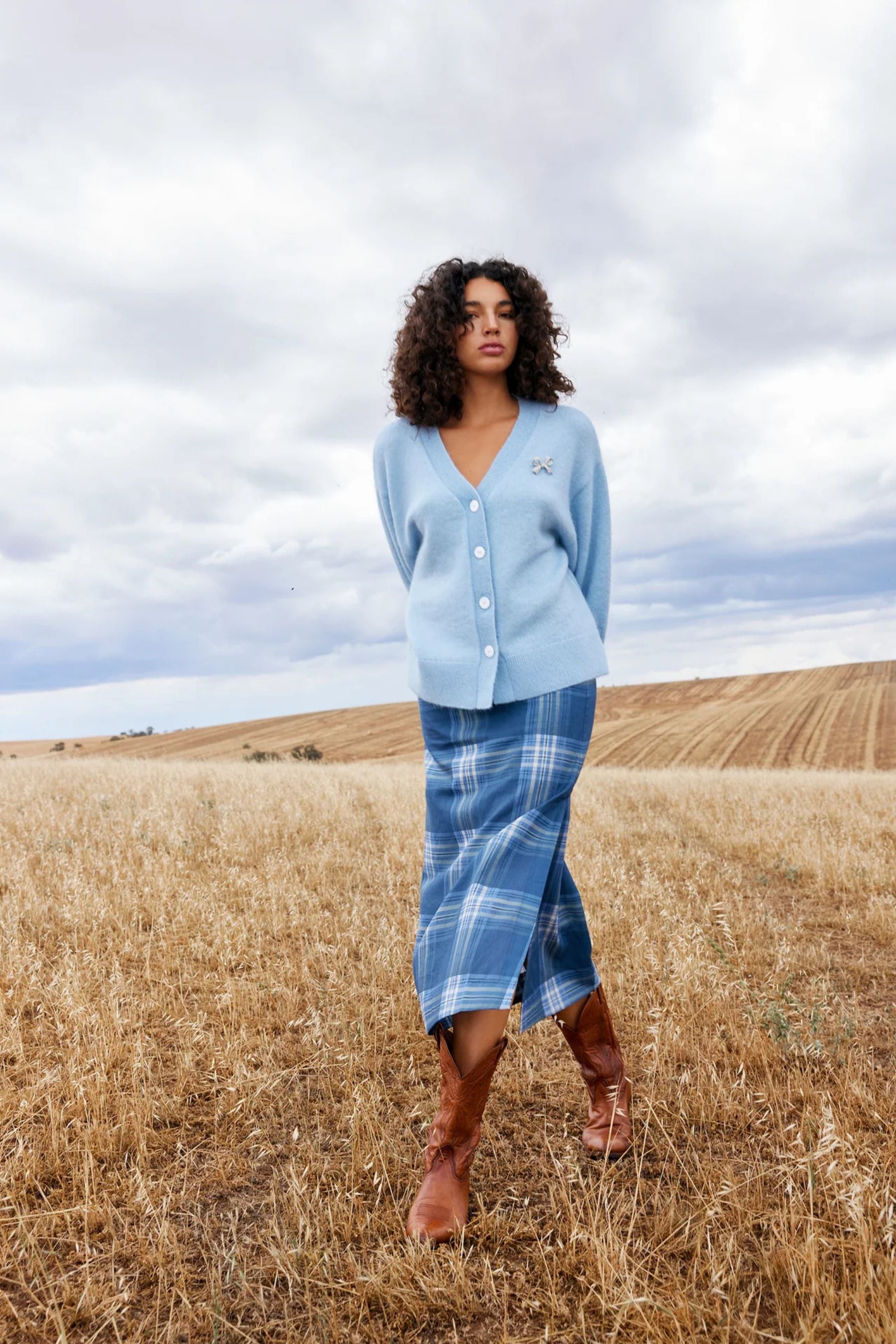 Zenobia Contrast Dobby Midi Skirt | Azure Mosaic