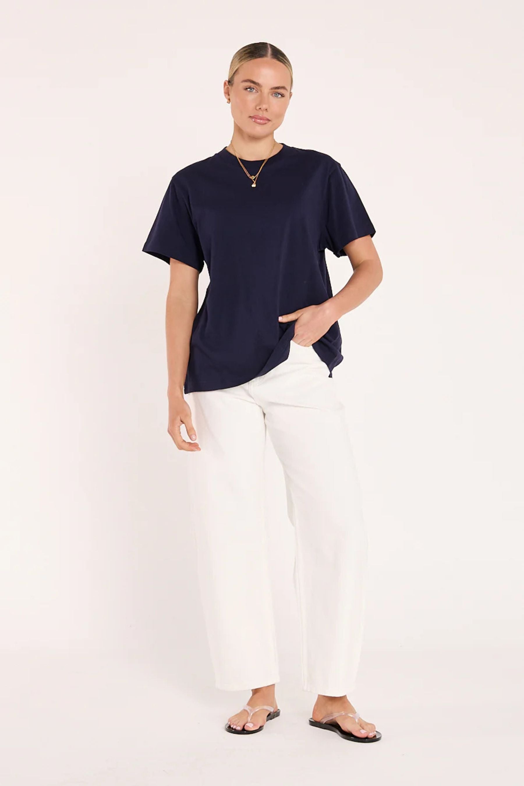 Stevie Slouchy Tee | Washed Coral/New Navy Stripe