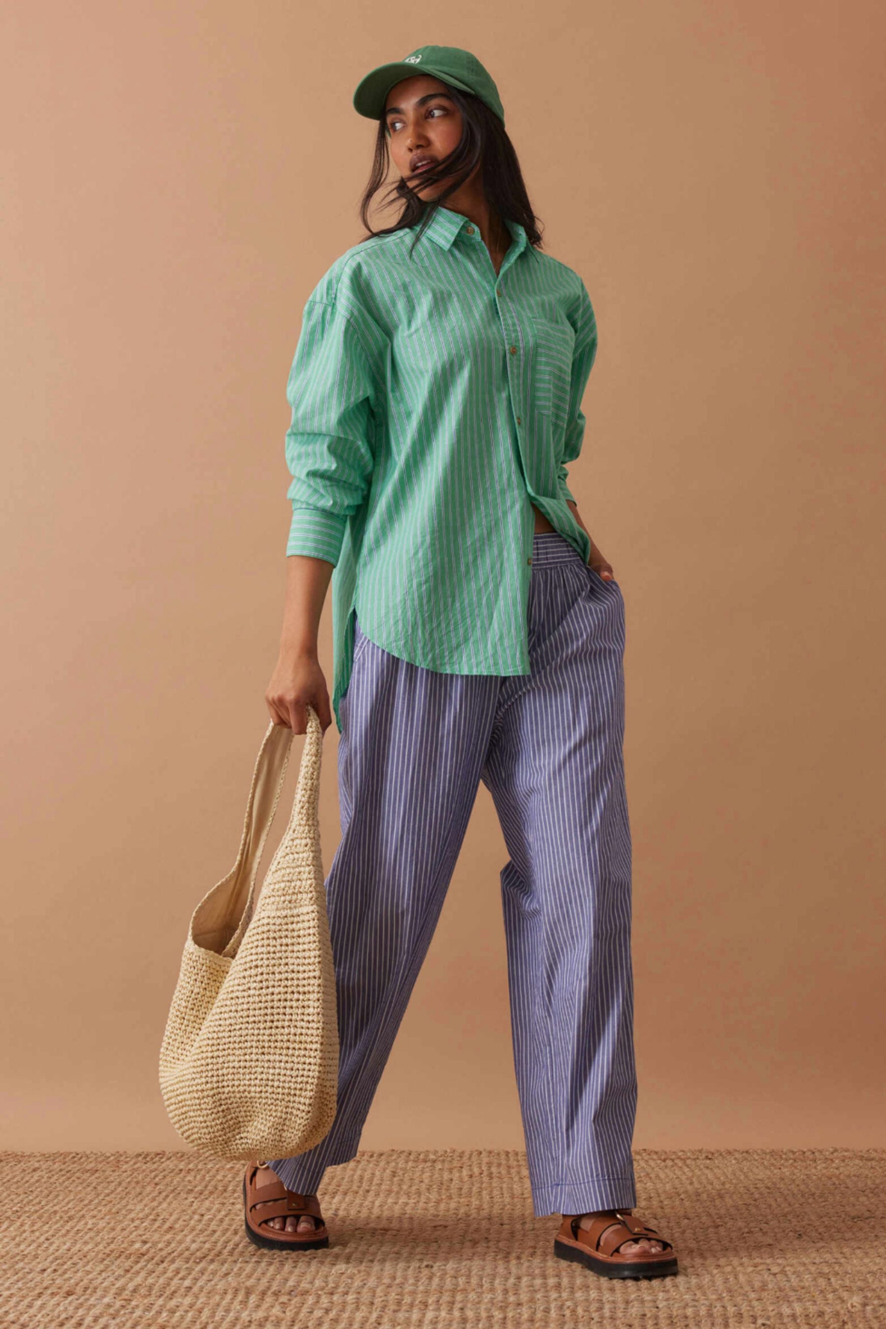 Peta Oversized Shirt | Zesty Green Triple Stripe