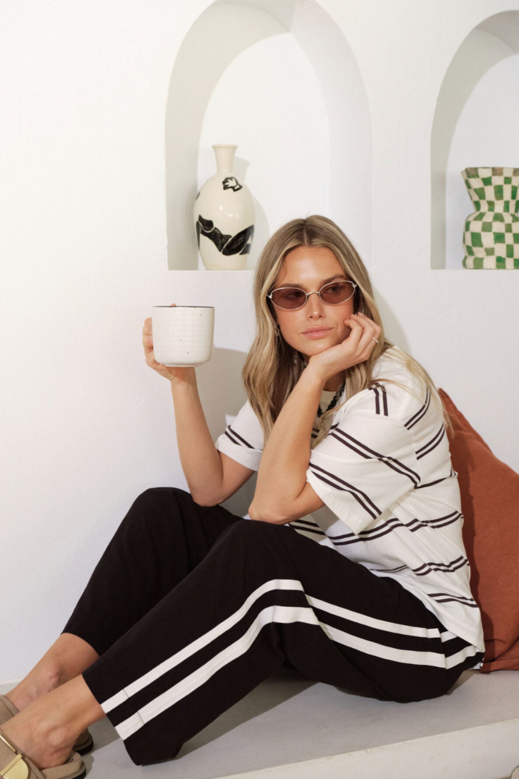 The Luna Longline Shirt Dress | Pink Stripe Floral Trim