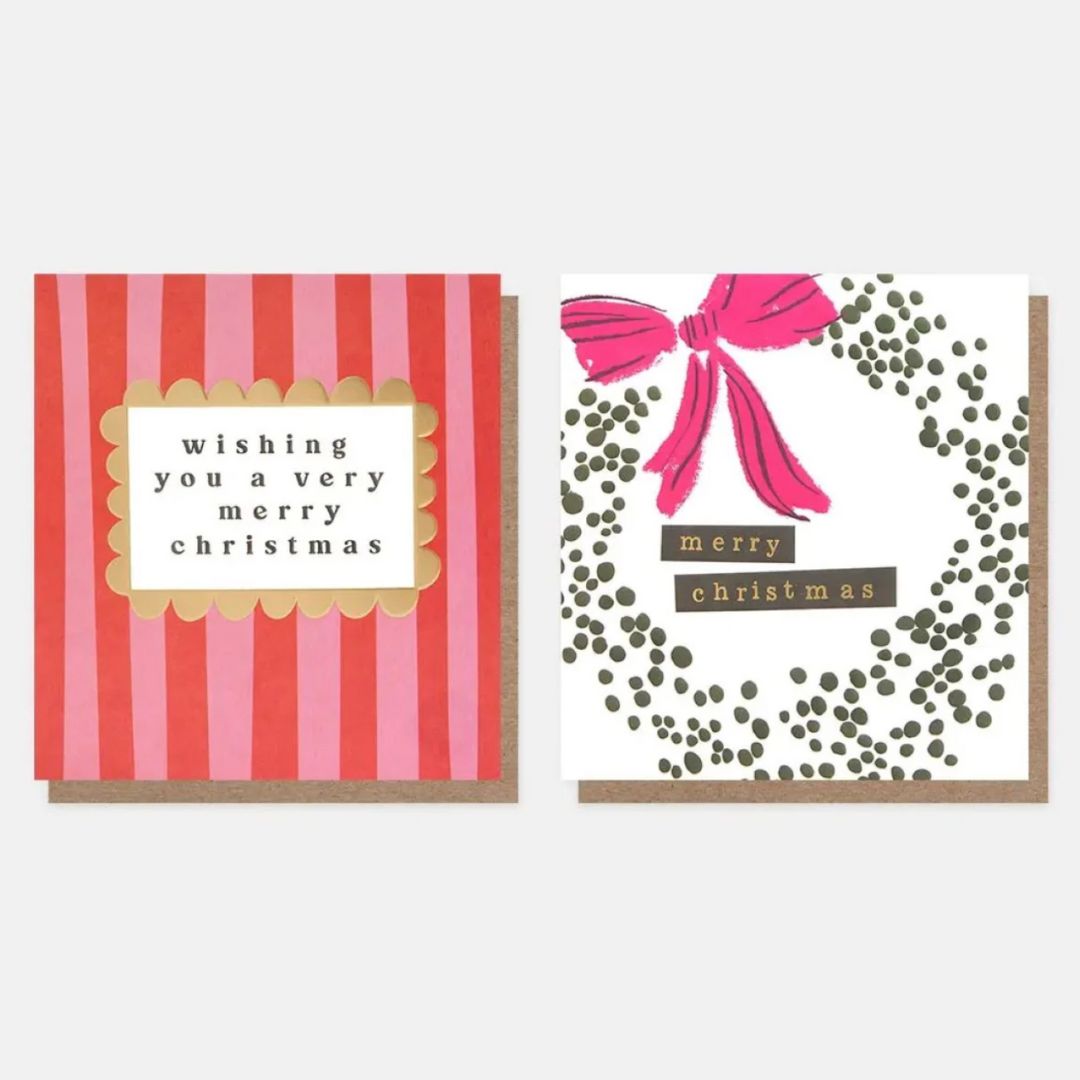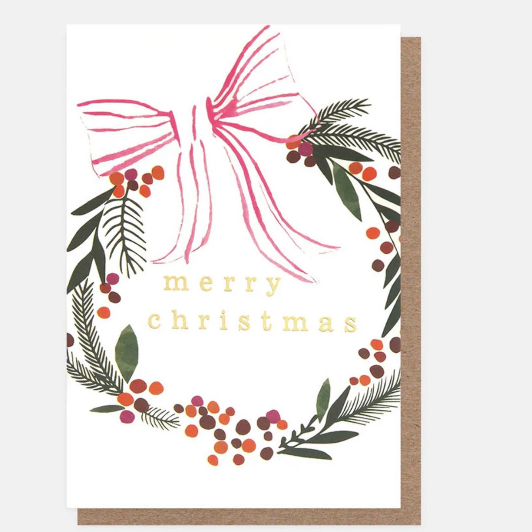 Card Pack | Merry Christmas Circle Wreath With Pink