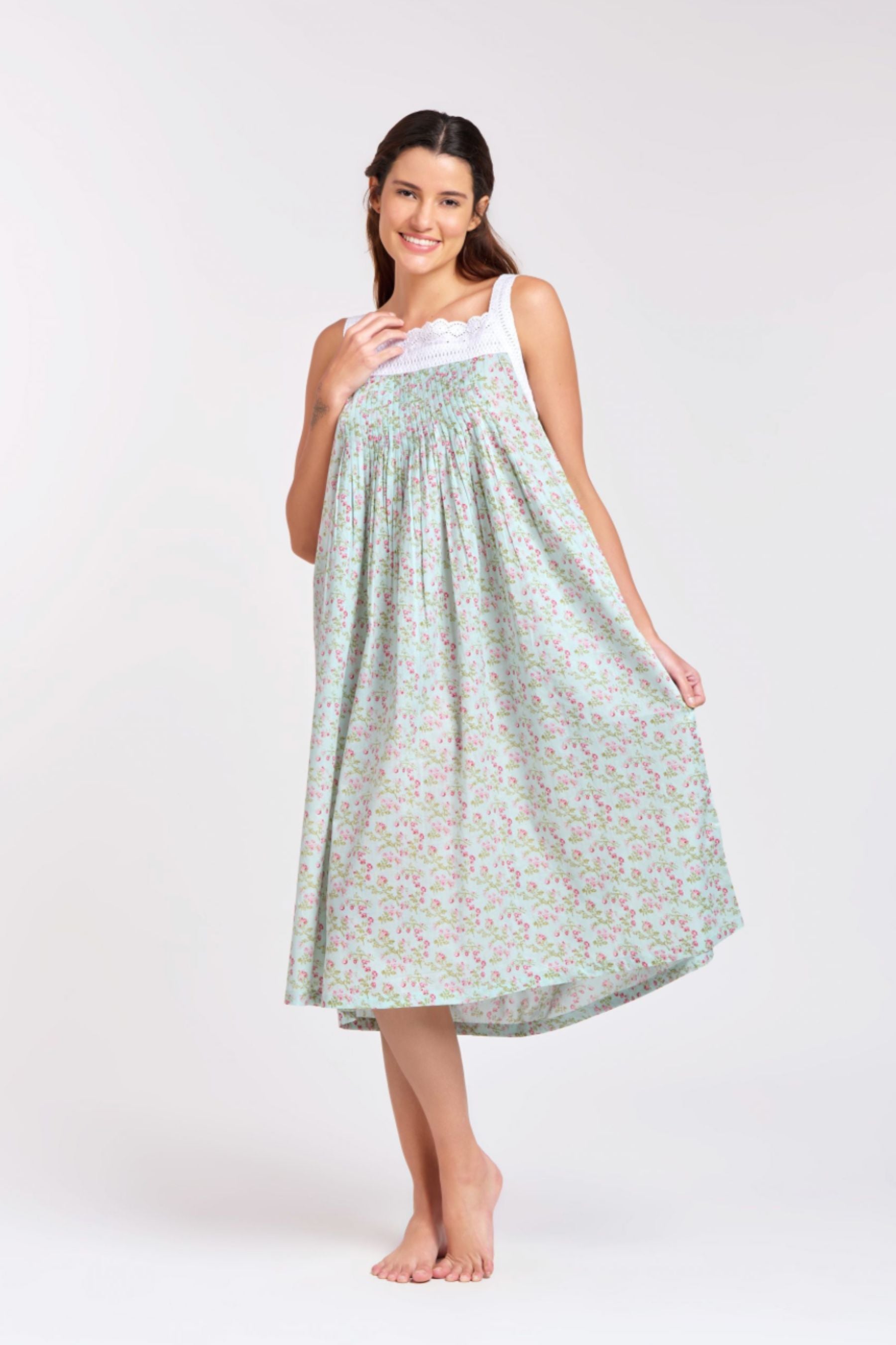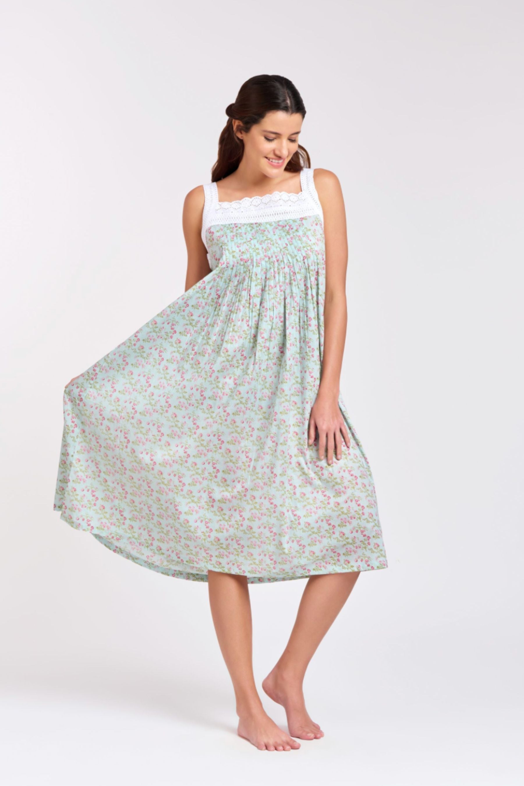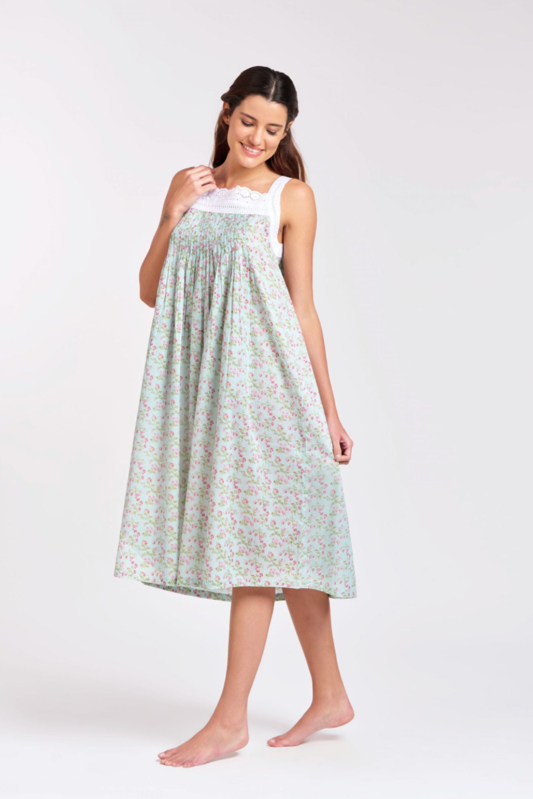 Pin Tucked Lace Nightie | Blue Pink Floral