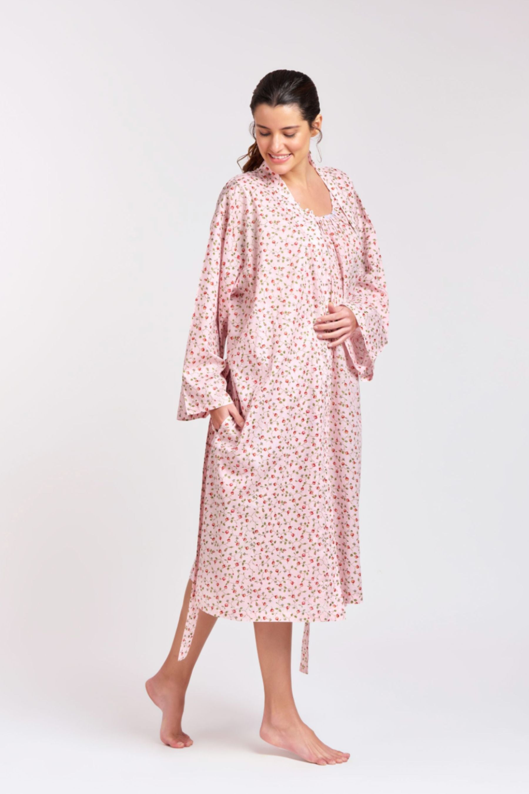 Dressing Gown/Robe | Pink Rose Floral