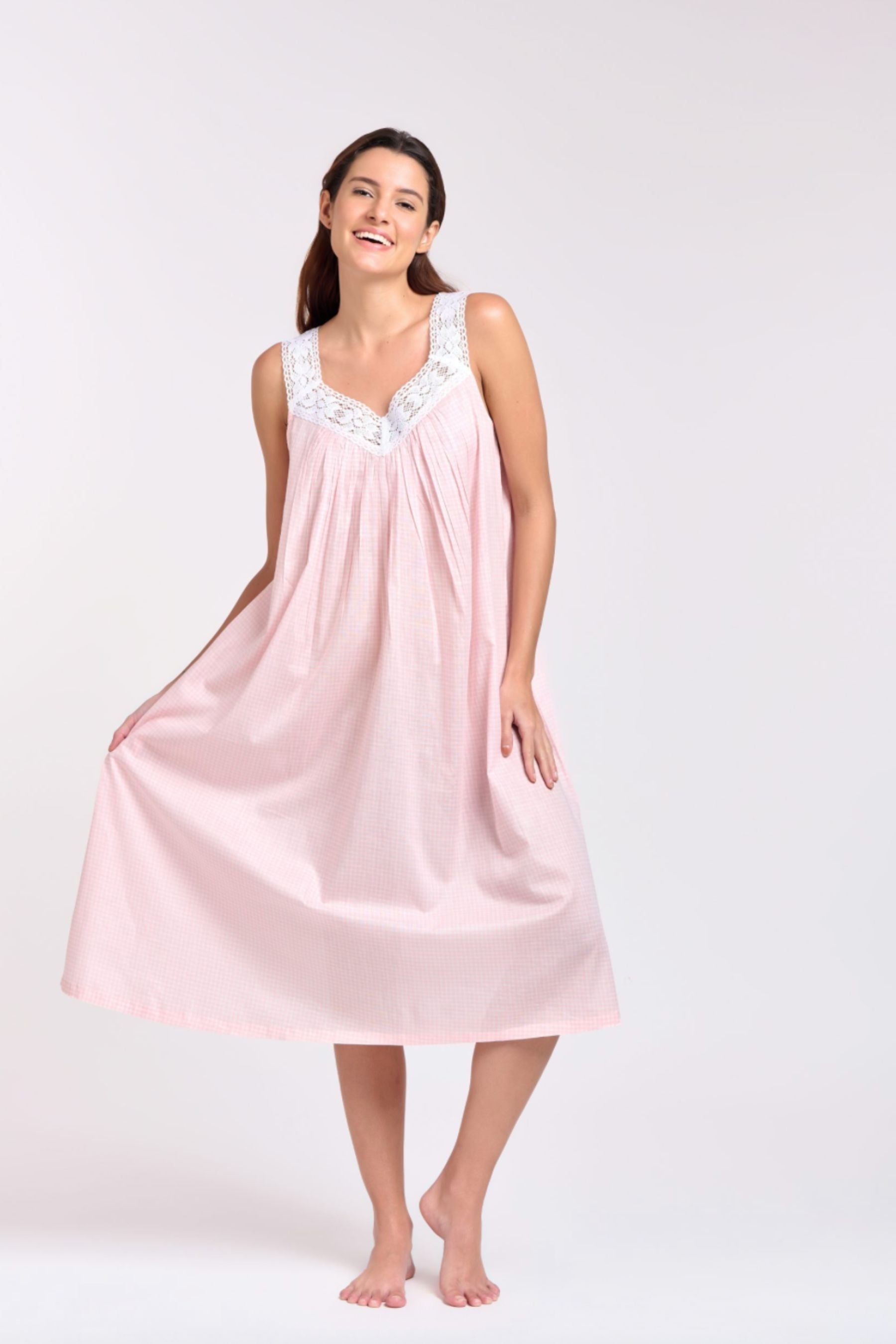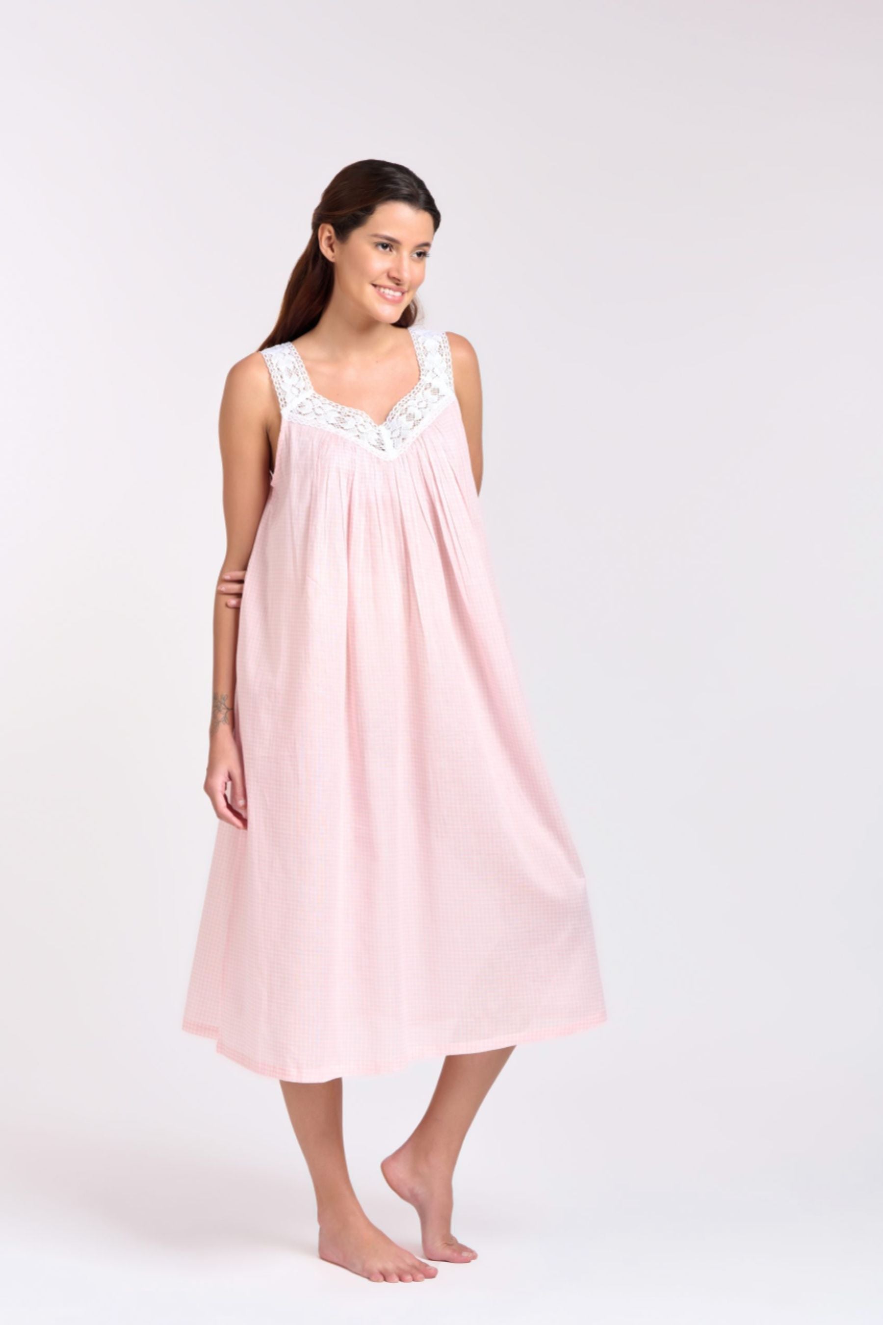 V-Neck Laced Nightie | Pink Gingham