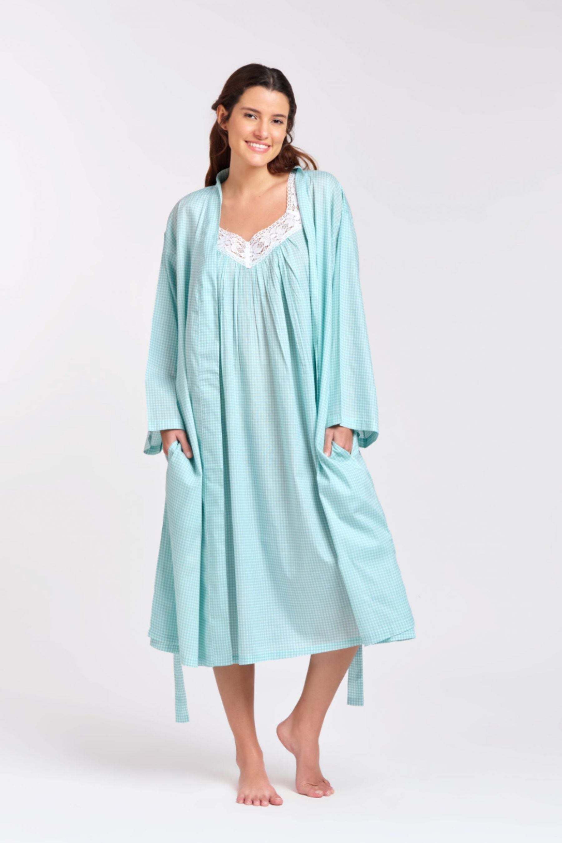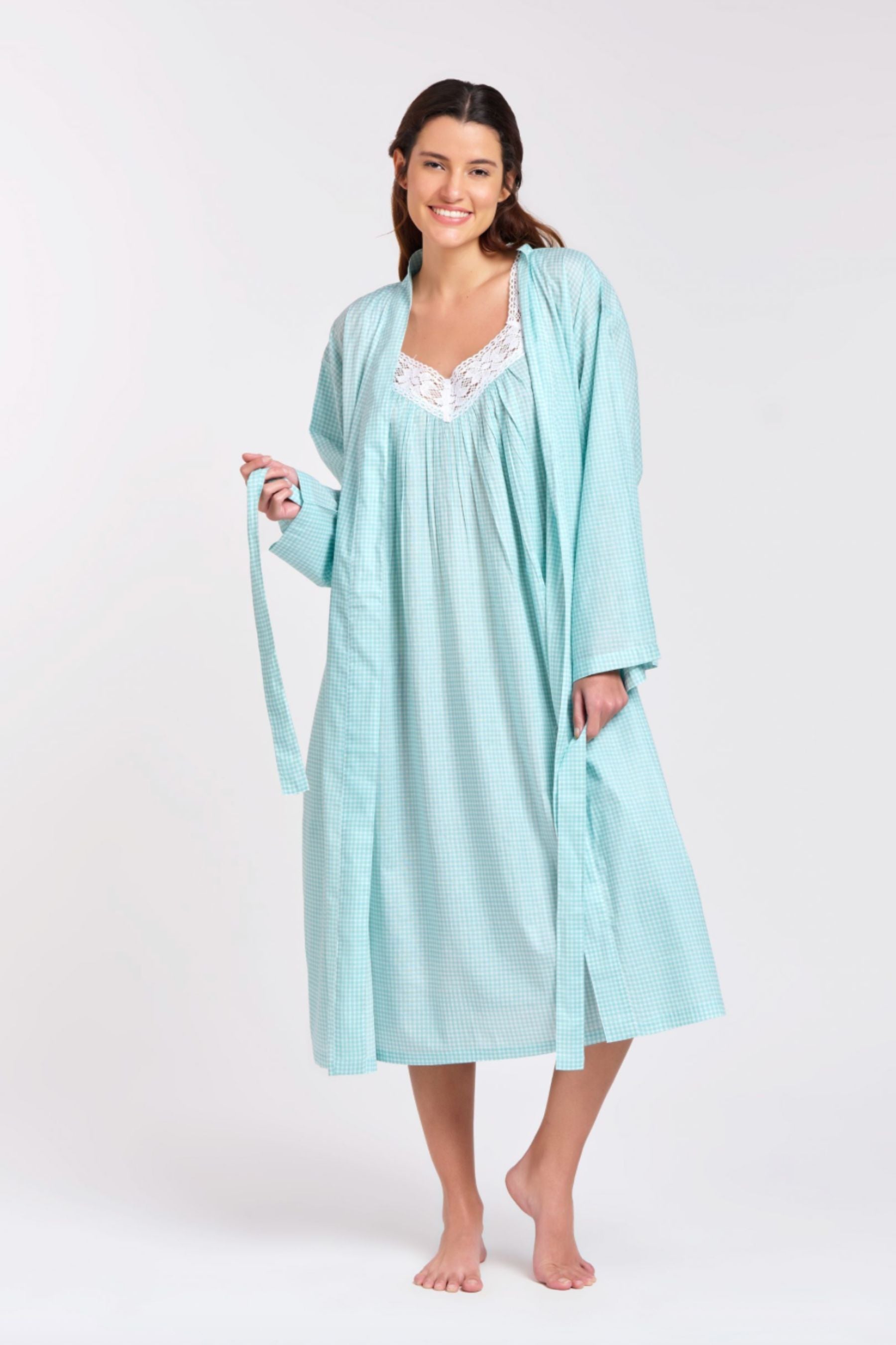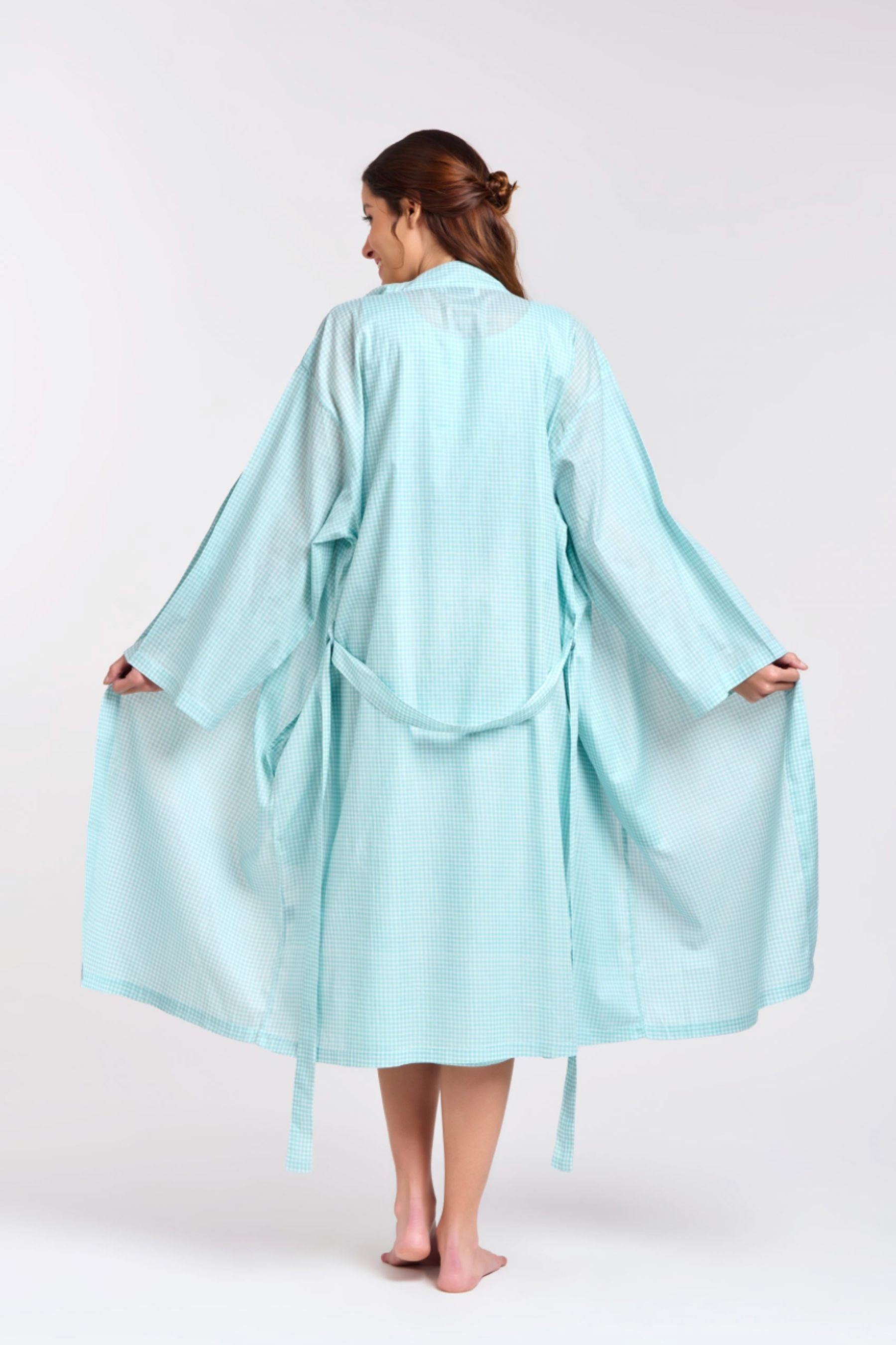 Dressing Gown/Robe | Aqua Gingham