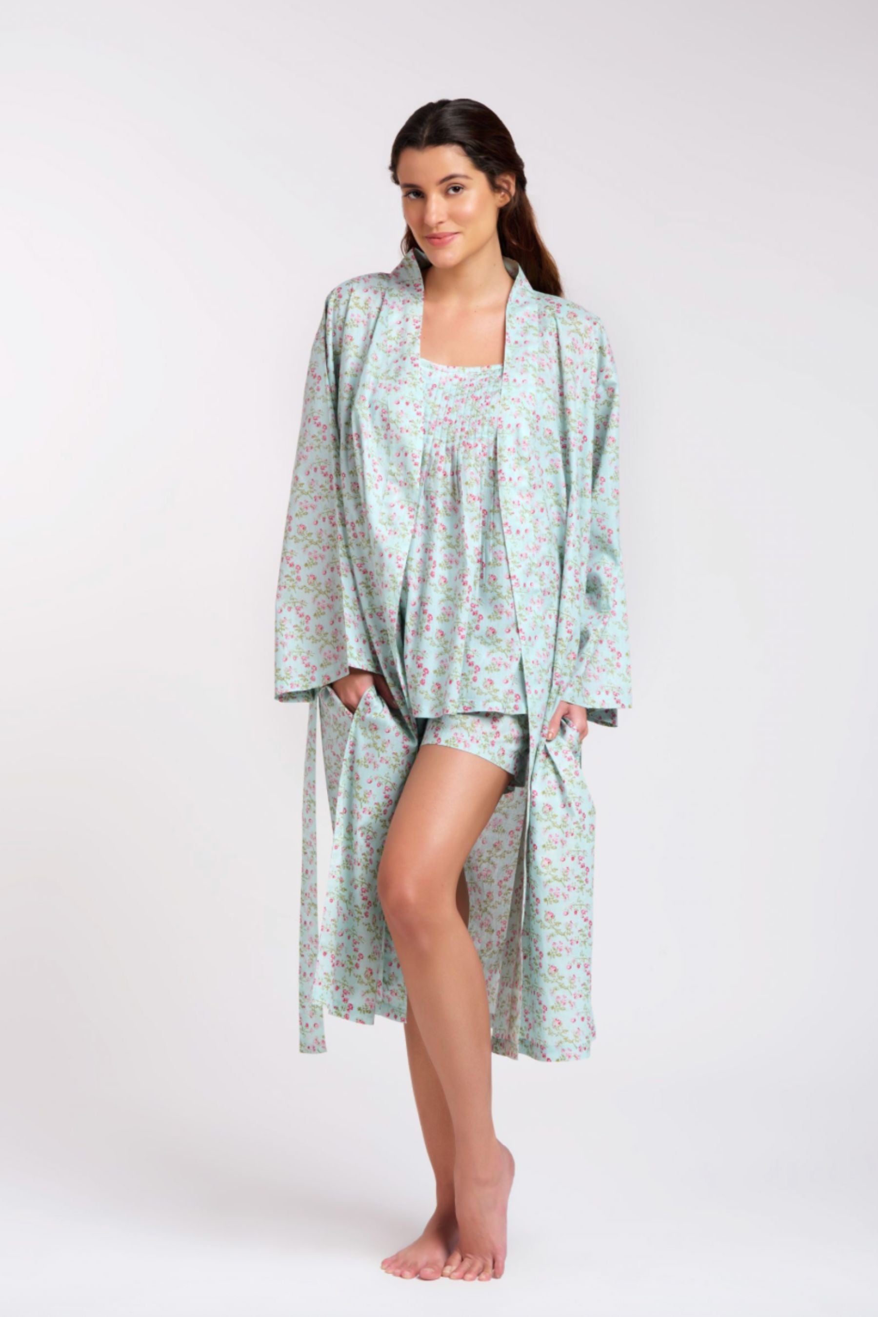 Dressing Gown/Robe | Aqua Floral