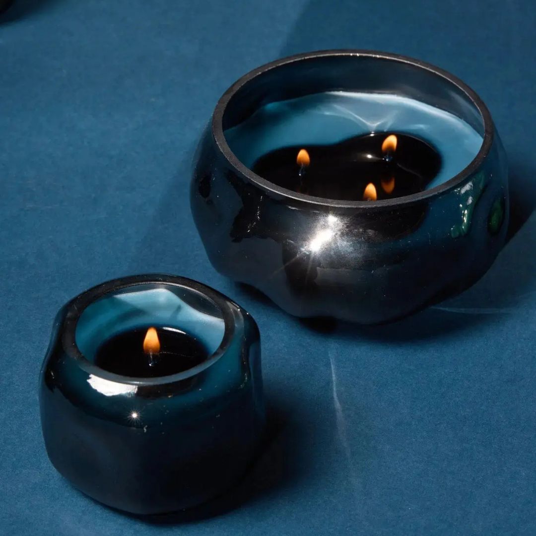 Basalt Navy Glass 10oz. Candle | Rosewater Santal