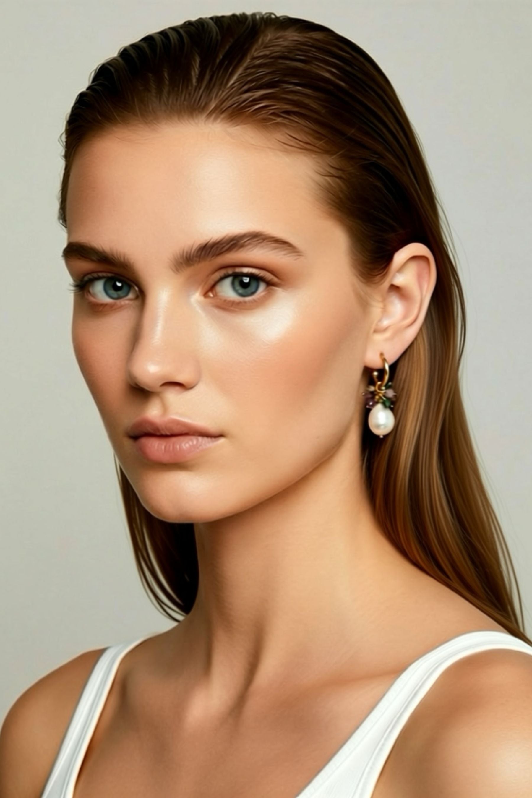 Nicola Earring | Green Amethyst/Pearl