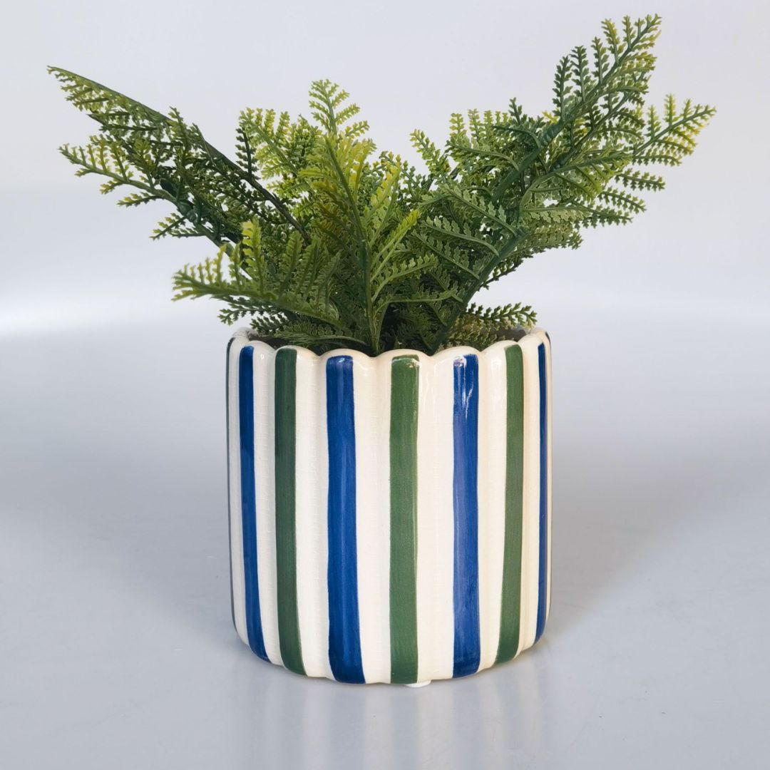Maxine Stripe Planter | Blue & Green