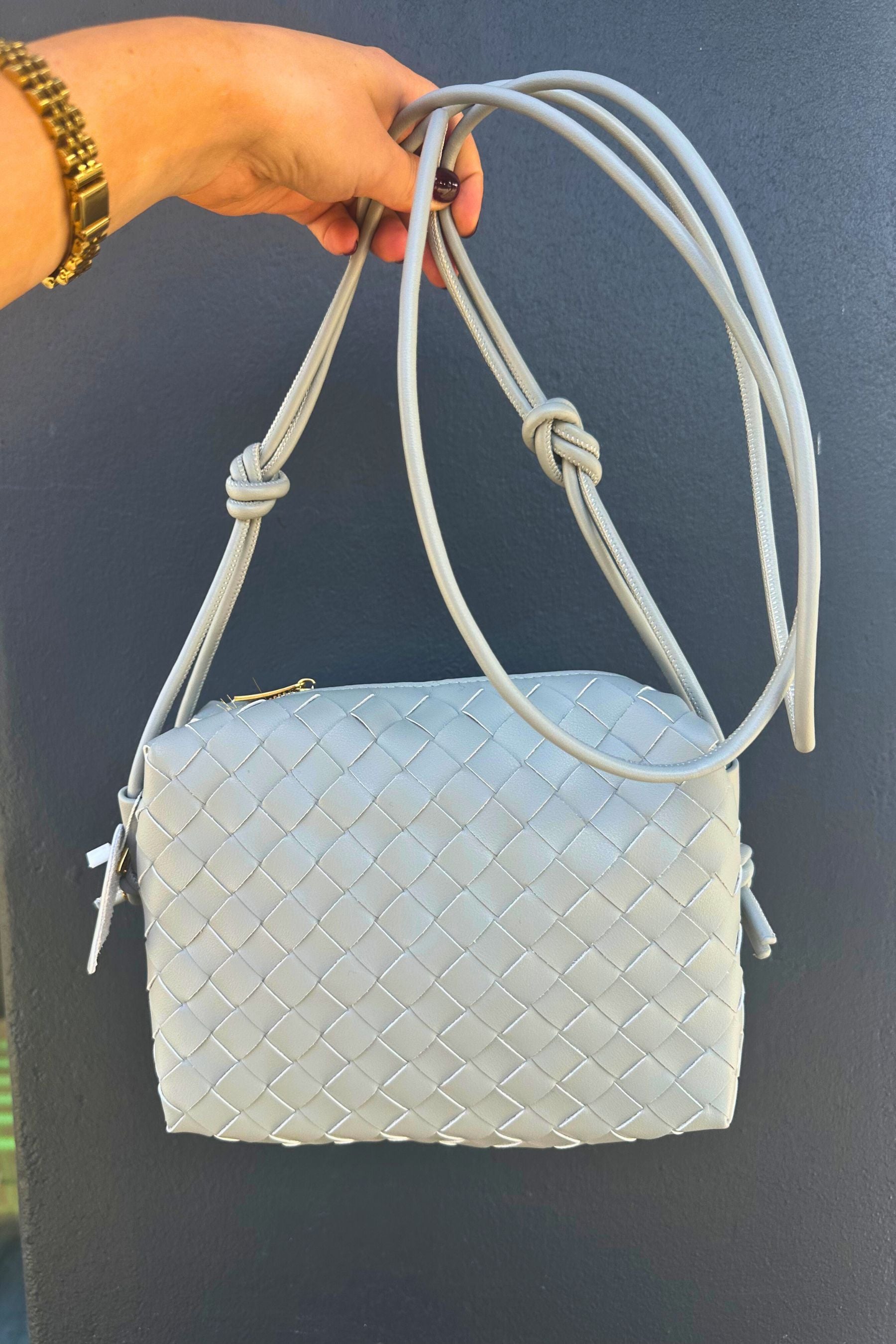 Shiny Weave Crossbody Bag | Navy