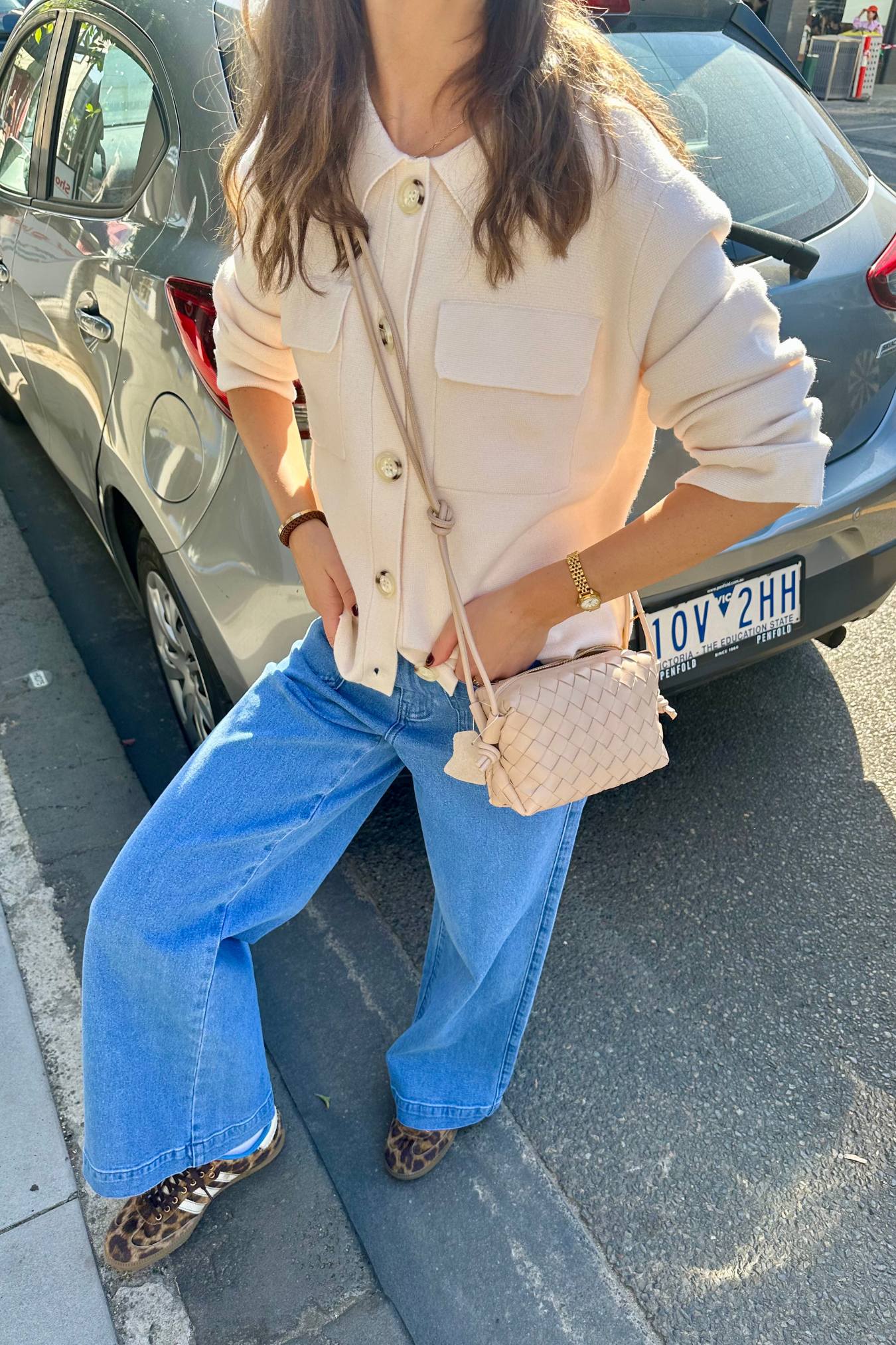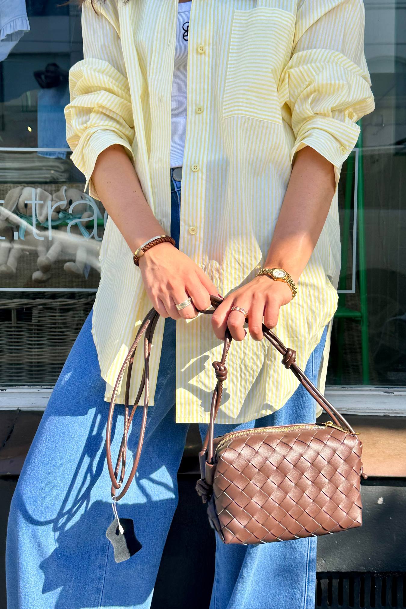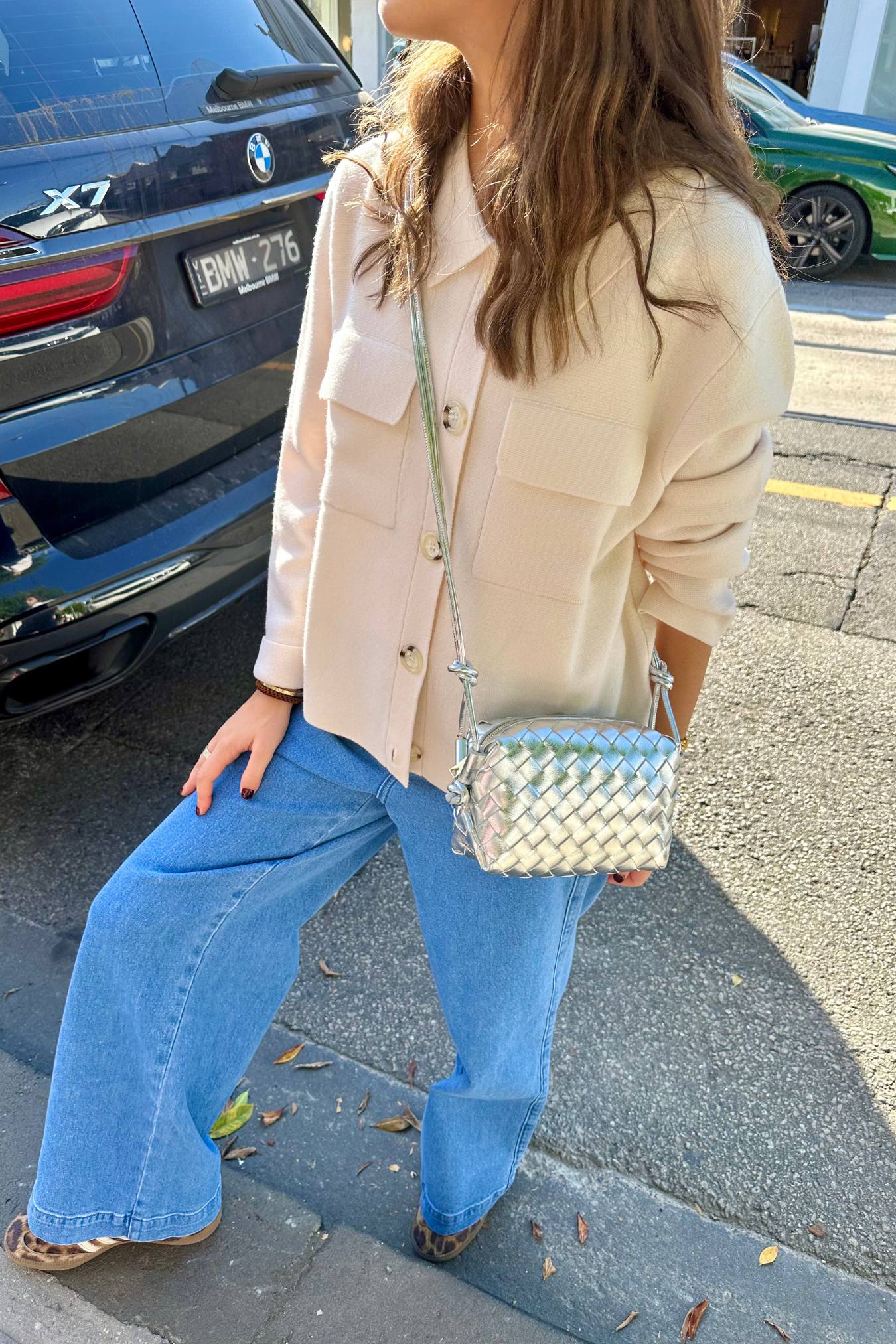 Shiny Weave Crossbody Bag | Milk