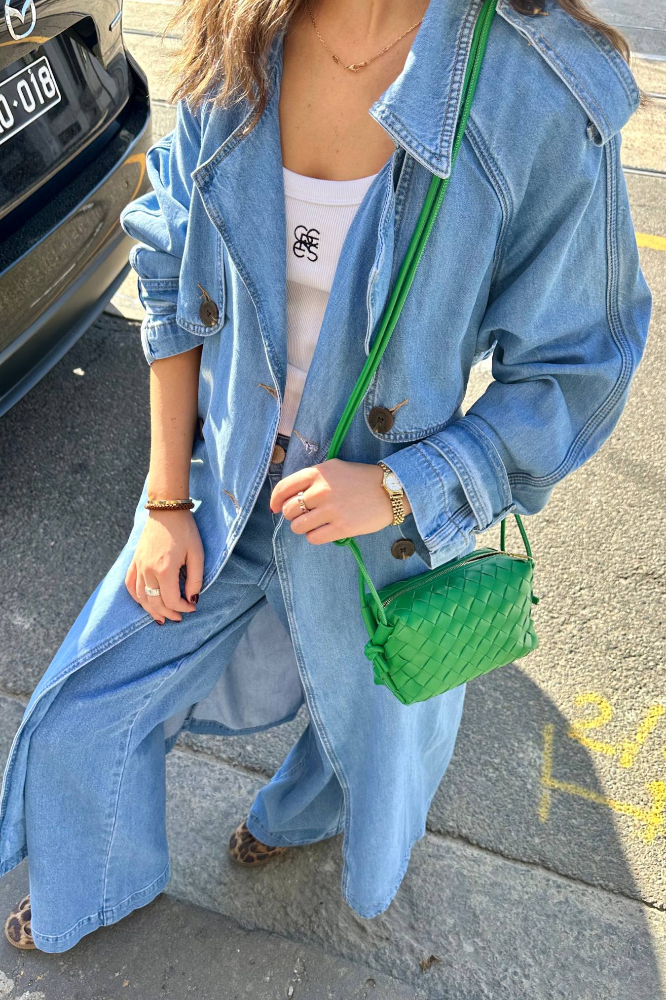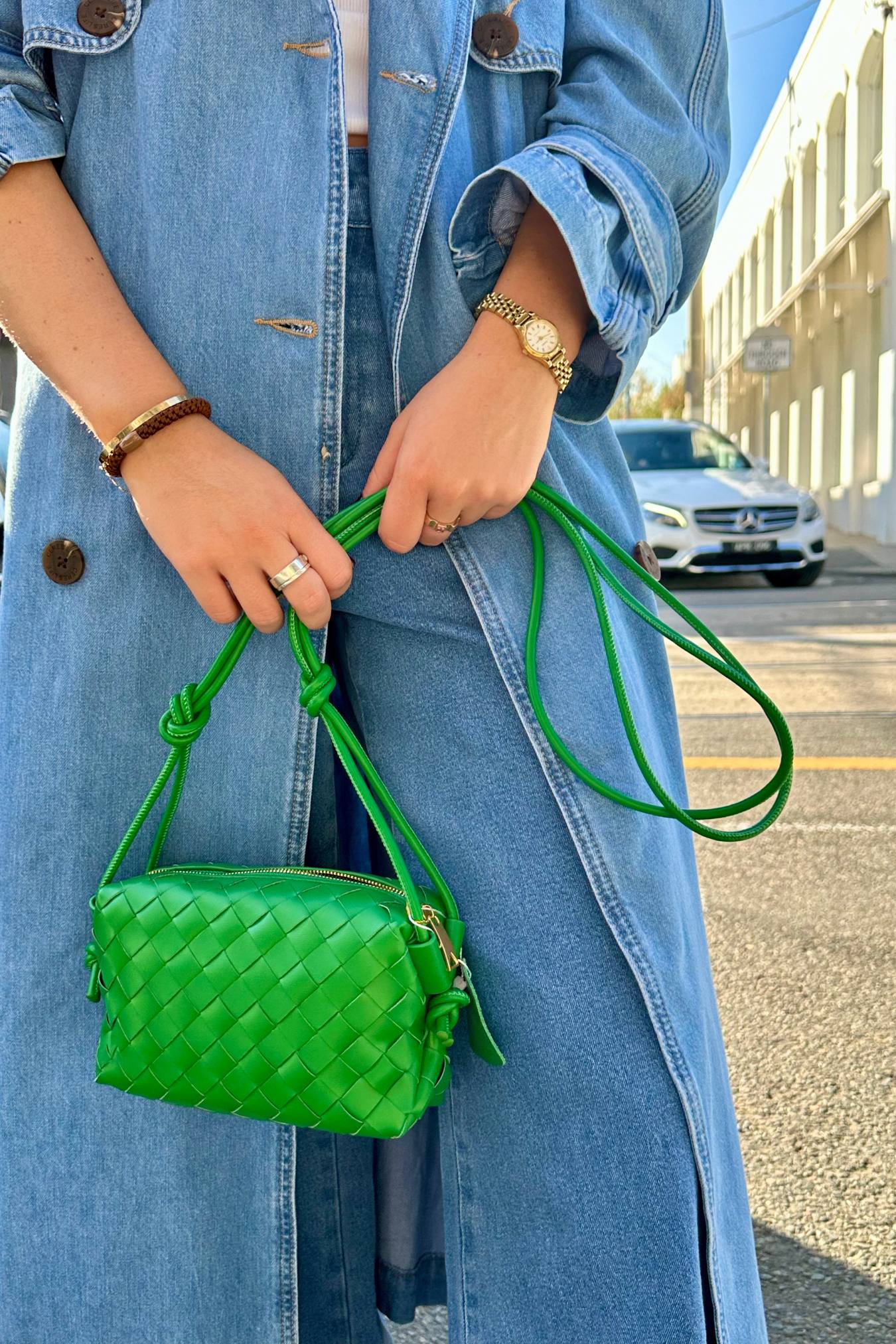 Shiny Weave Crossbody Bag | Green
