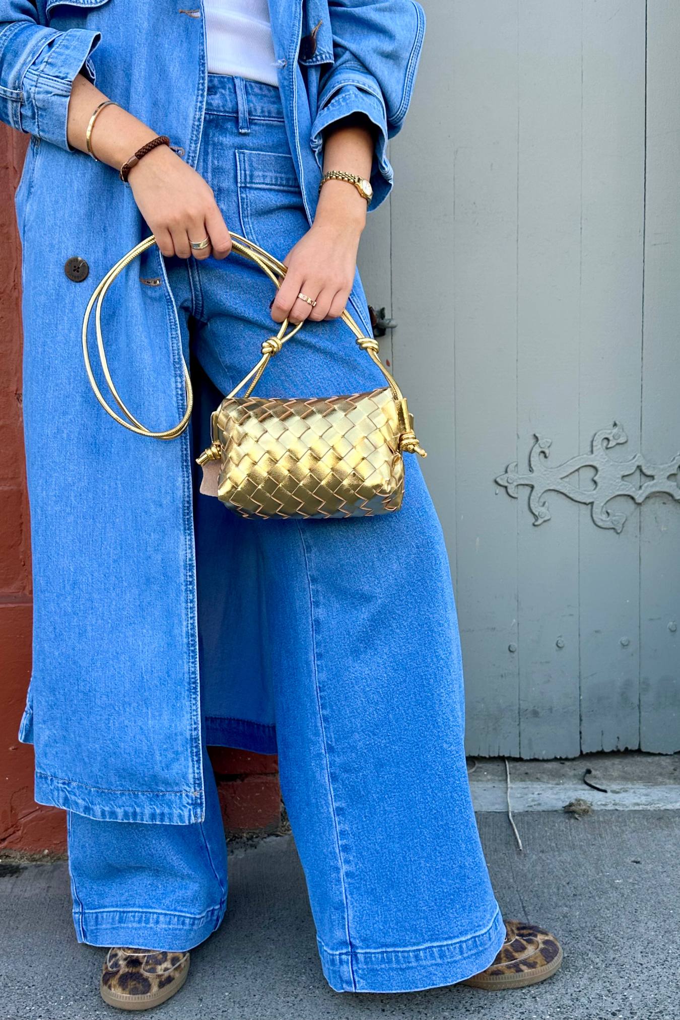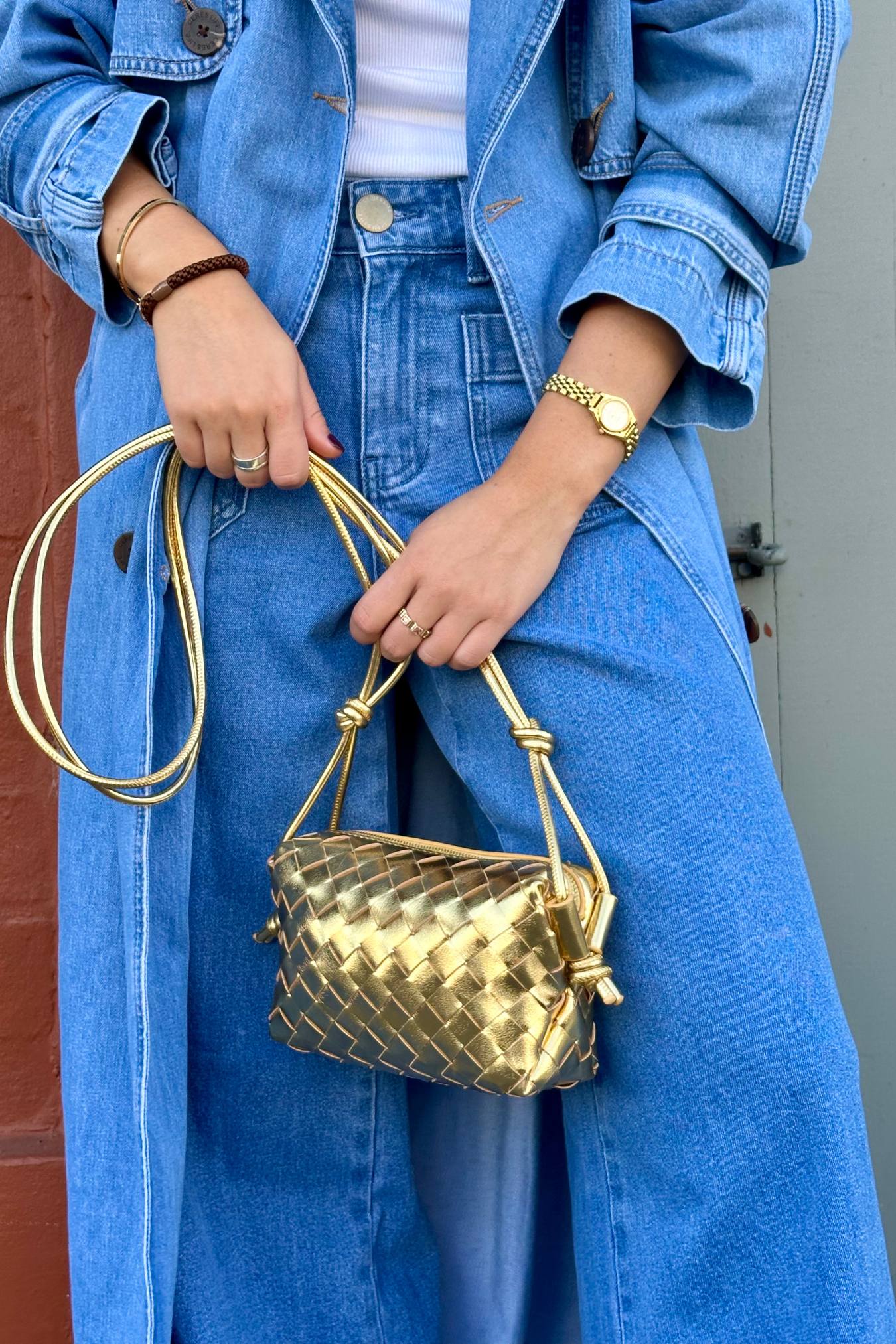Shiny Weave Crossbody Bag | Gold