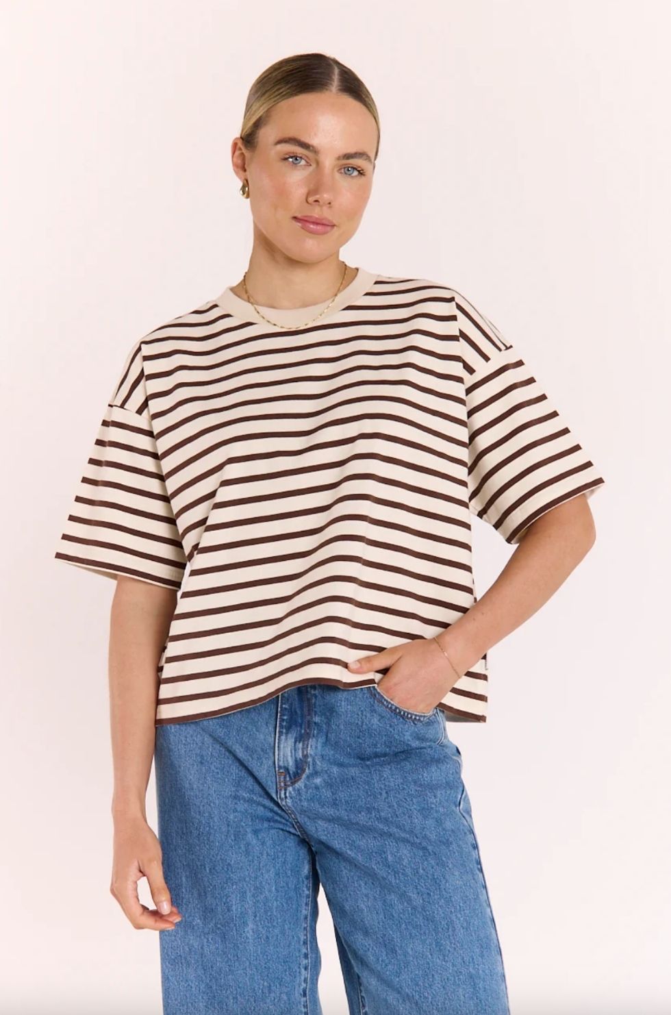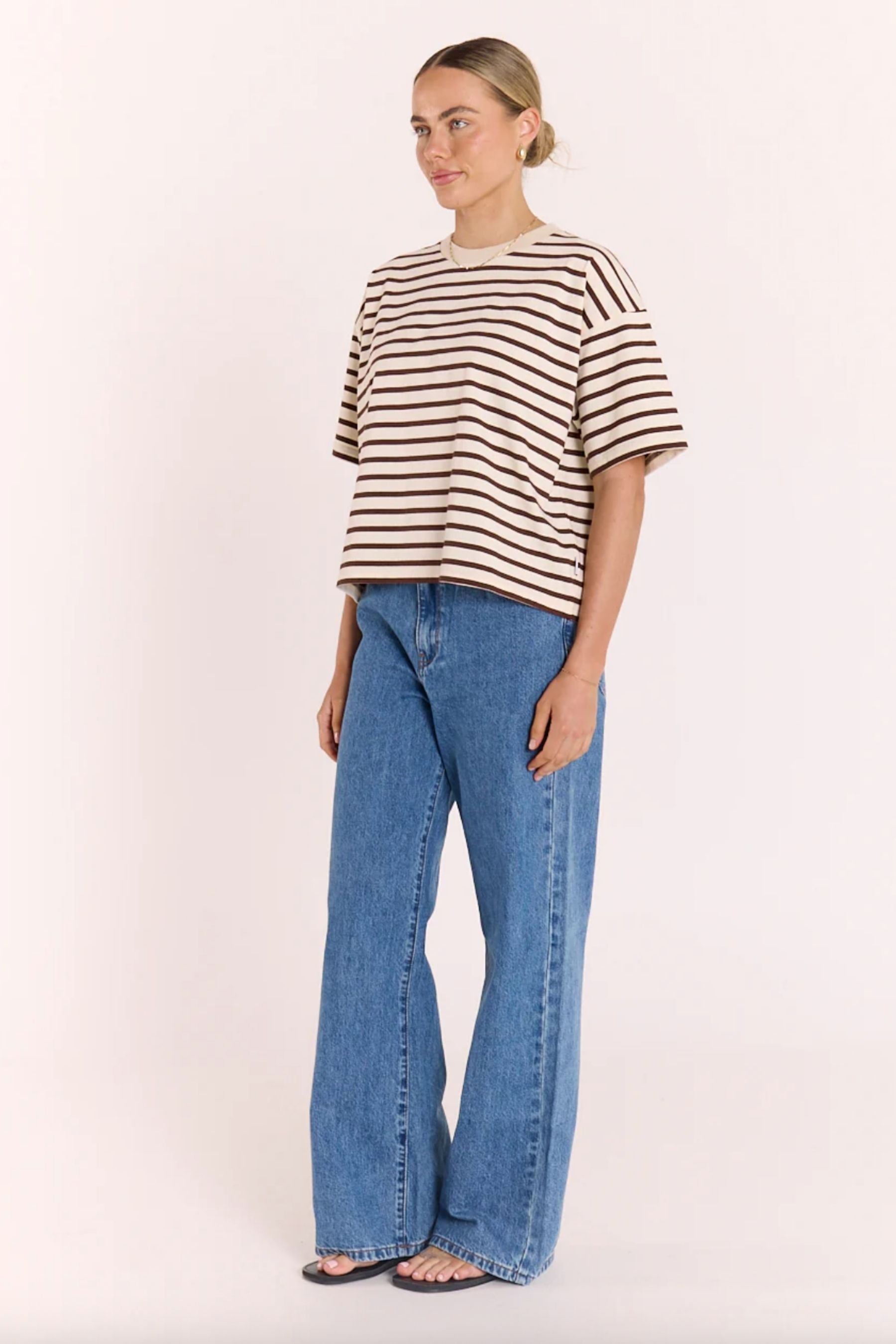 Carter Boxy Tee | Chocolate Cream Stripe