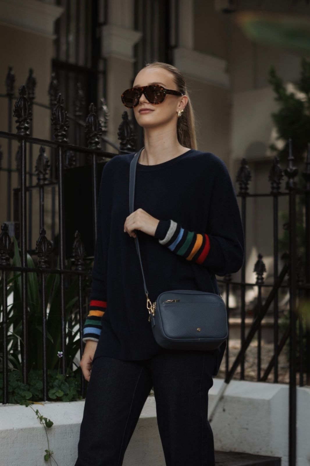 CALL ME Leather Weaved Crossbody Bag | Denim