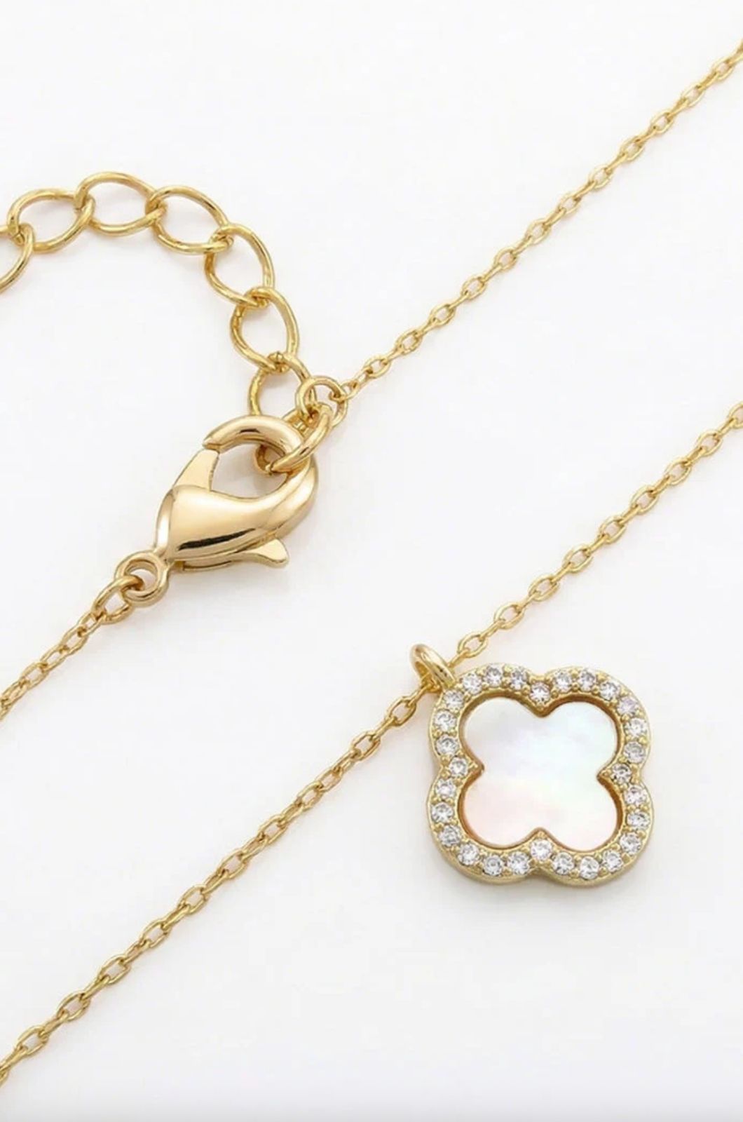 Necklace Gold Small Multi Clover | White