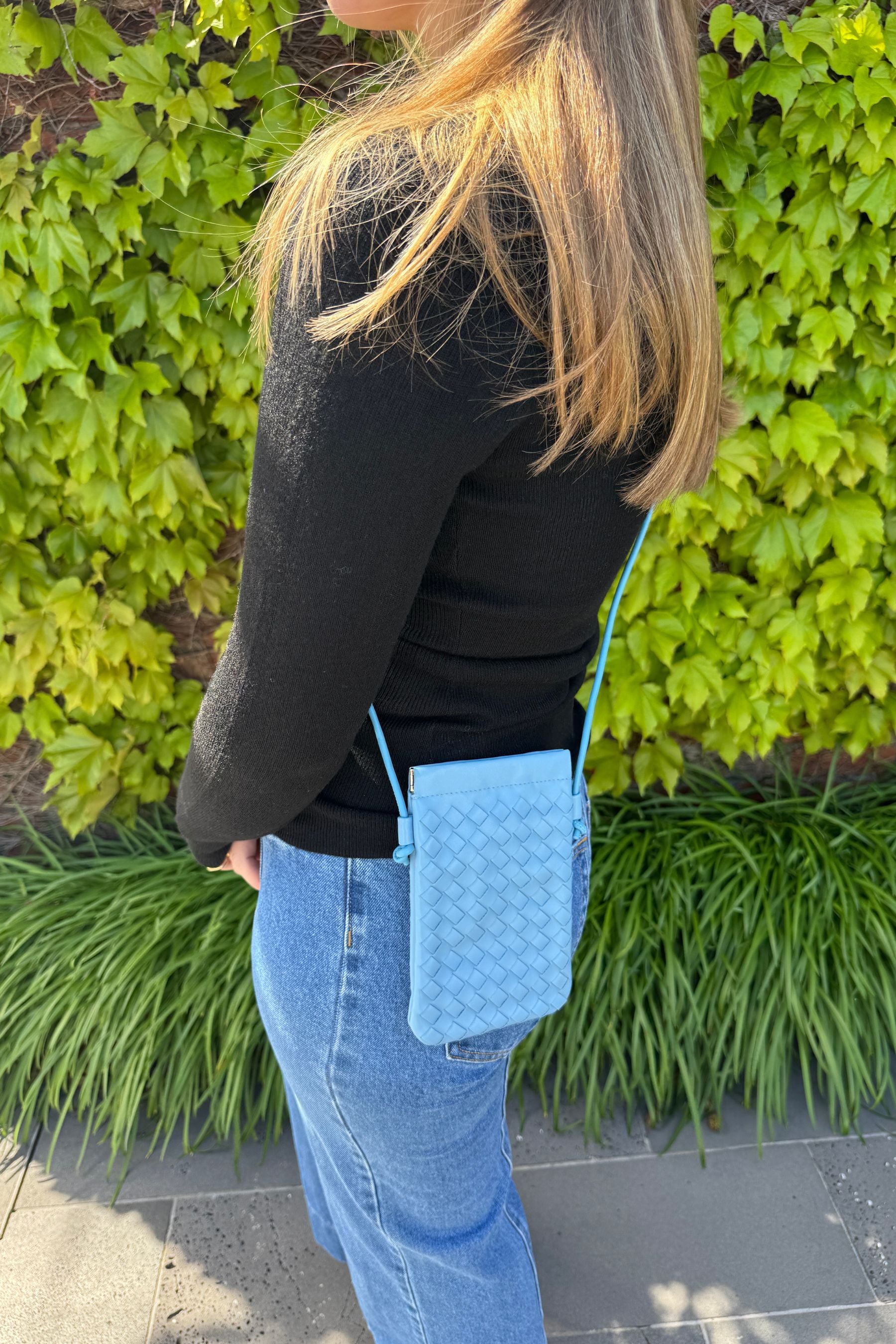 CALL ME Leather Weaved Crossbody Bag | Denim