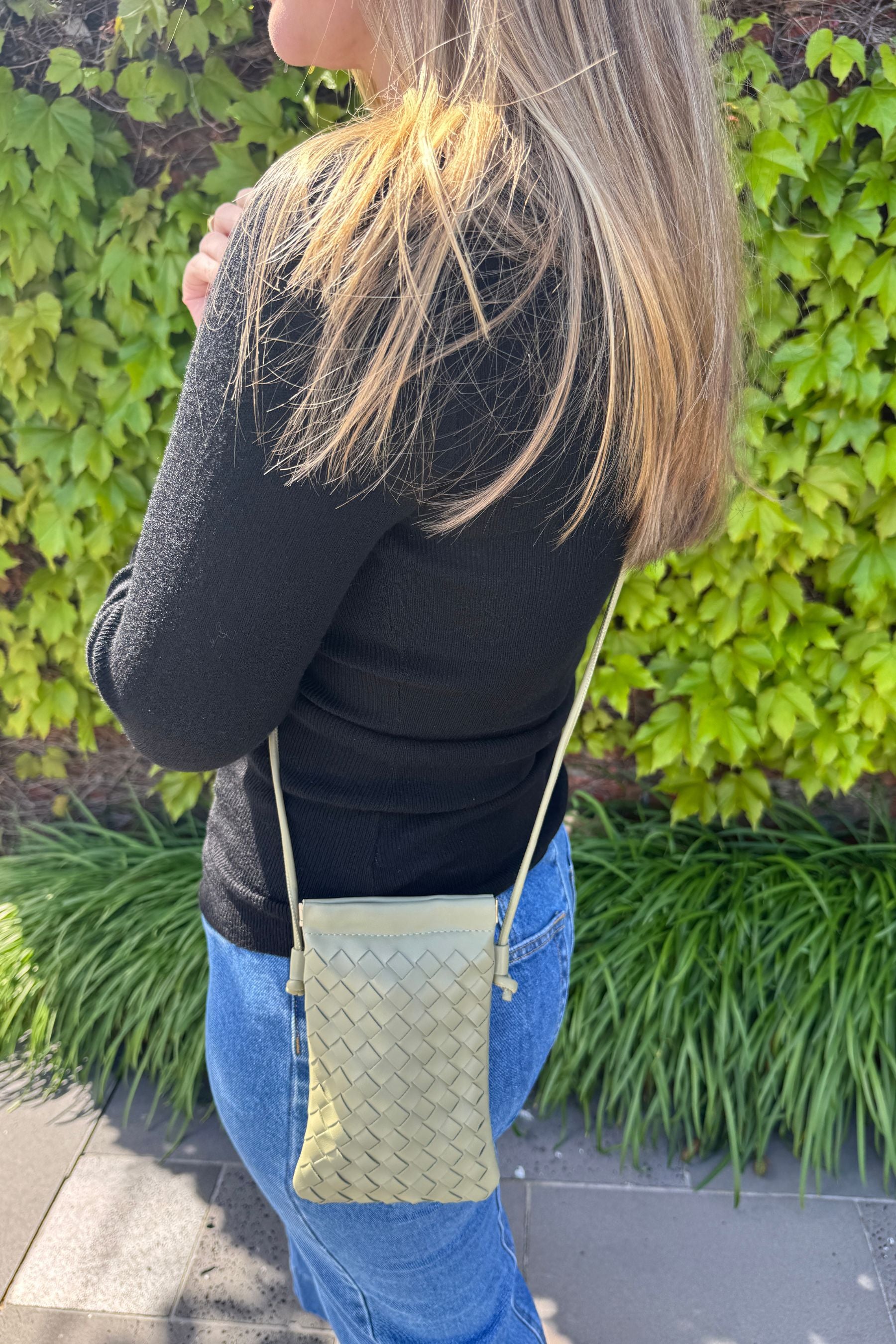 CALL ME Leather Weaved Crossbody Bag | Pistachio