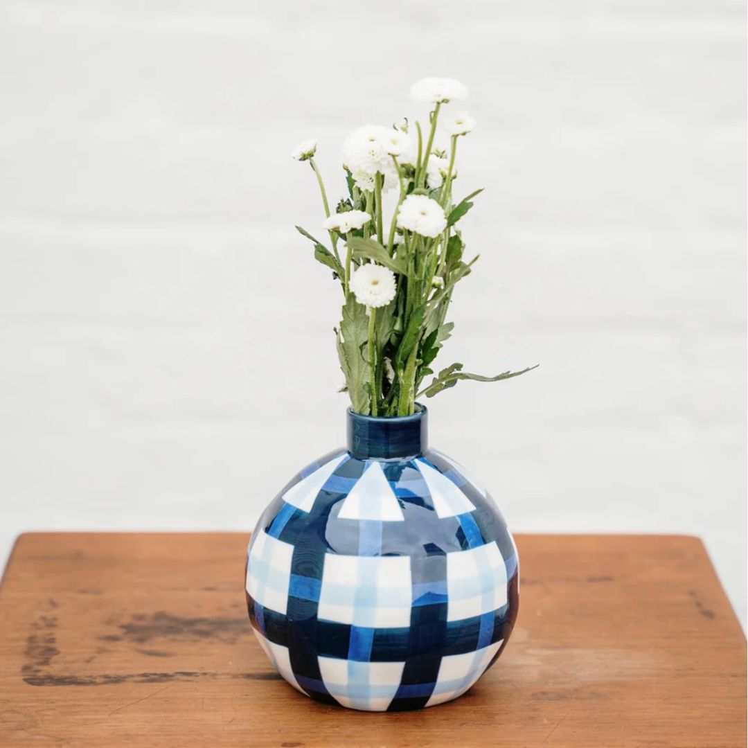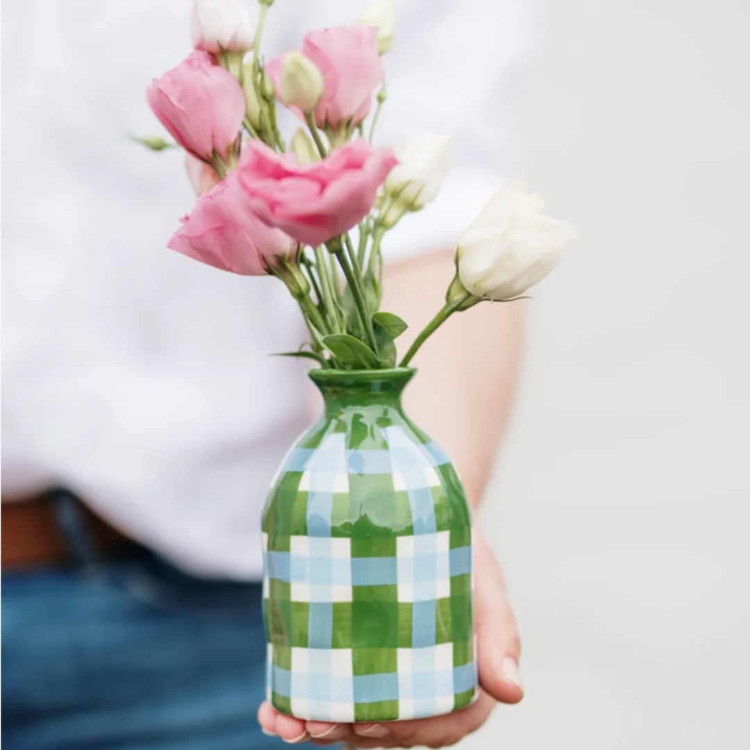 Bud Vase | Emerald & Cornflower Gingham