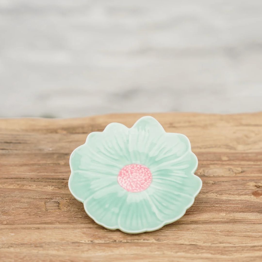 Flower Trinket Dish | Green With Pink Centre