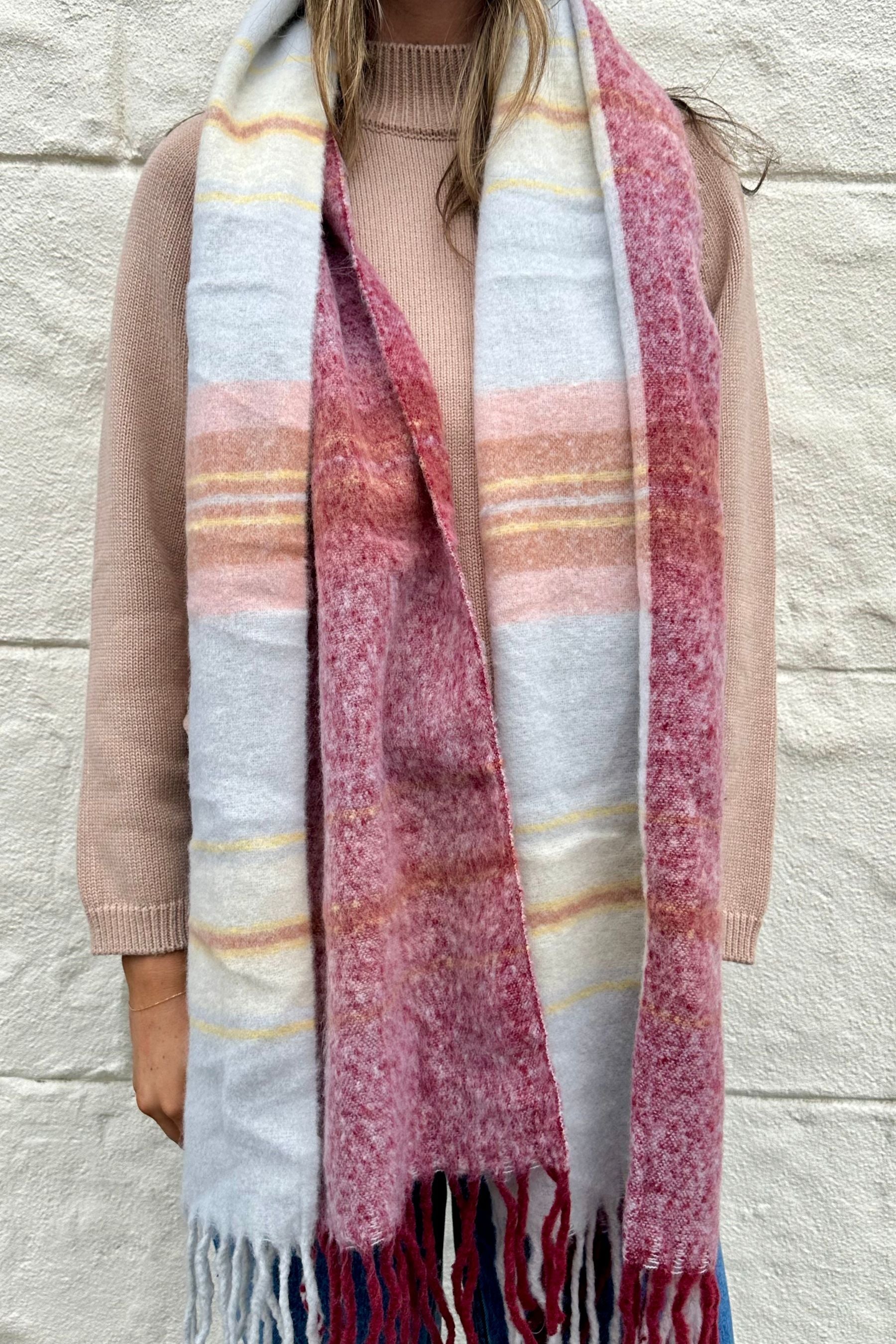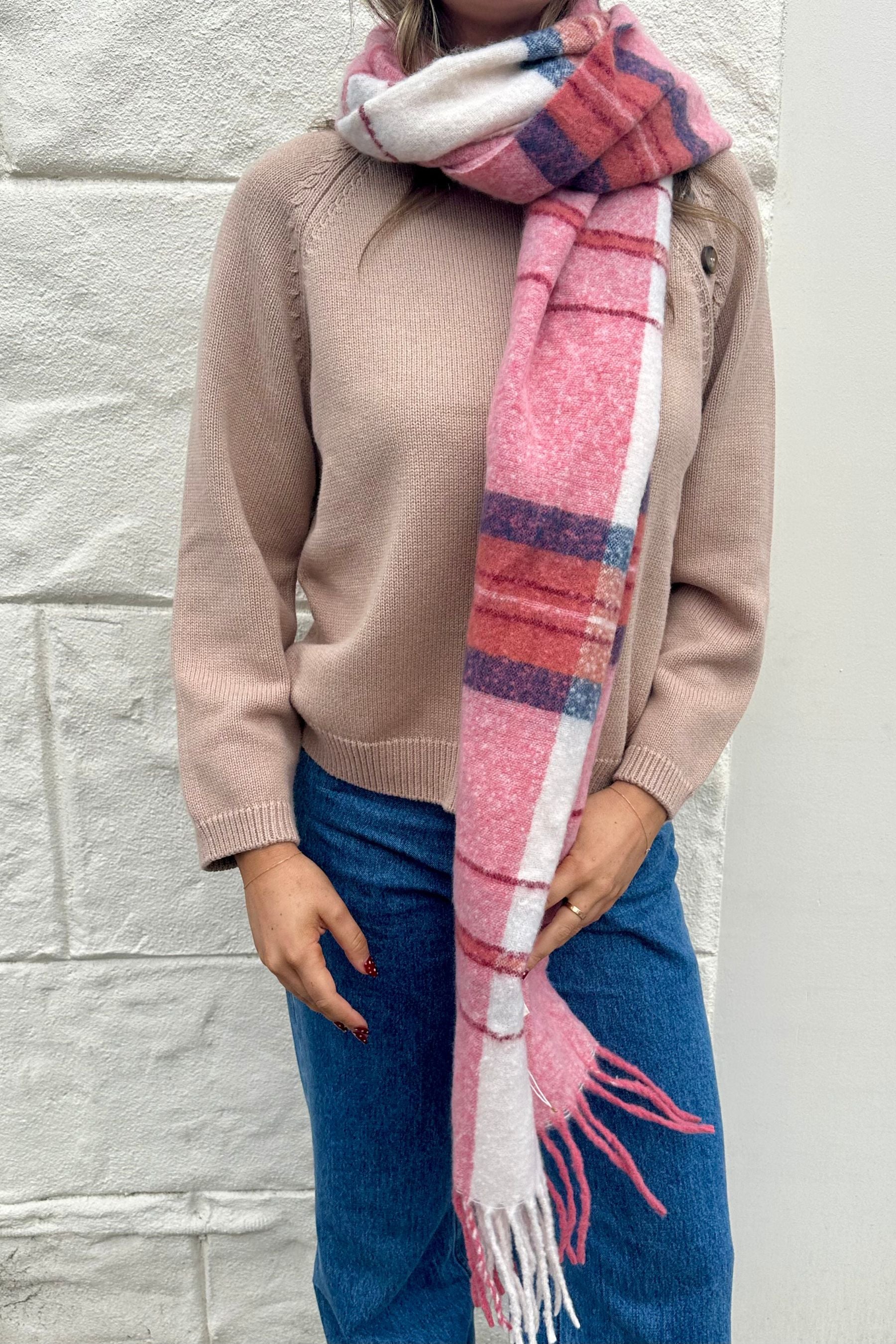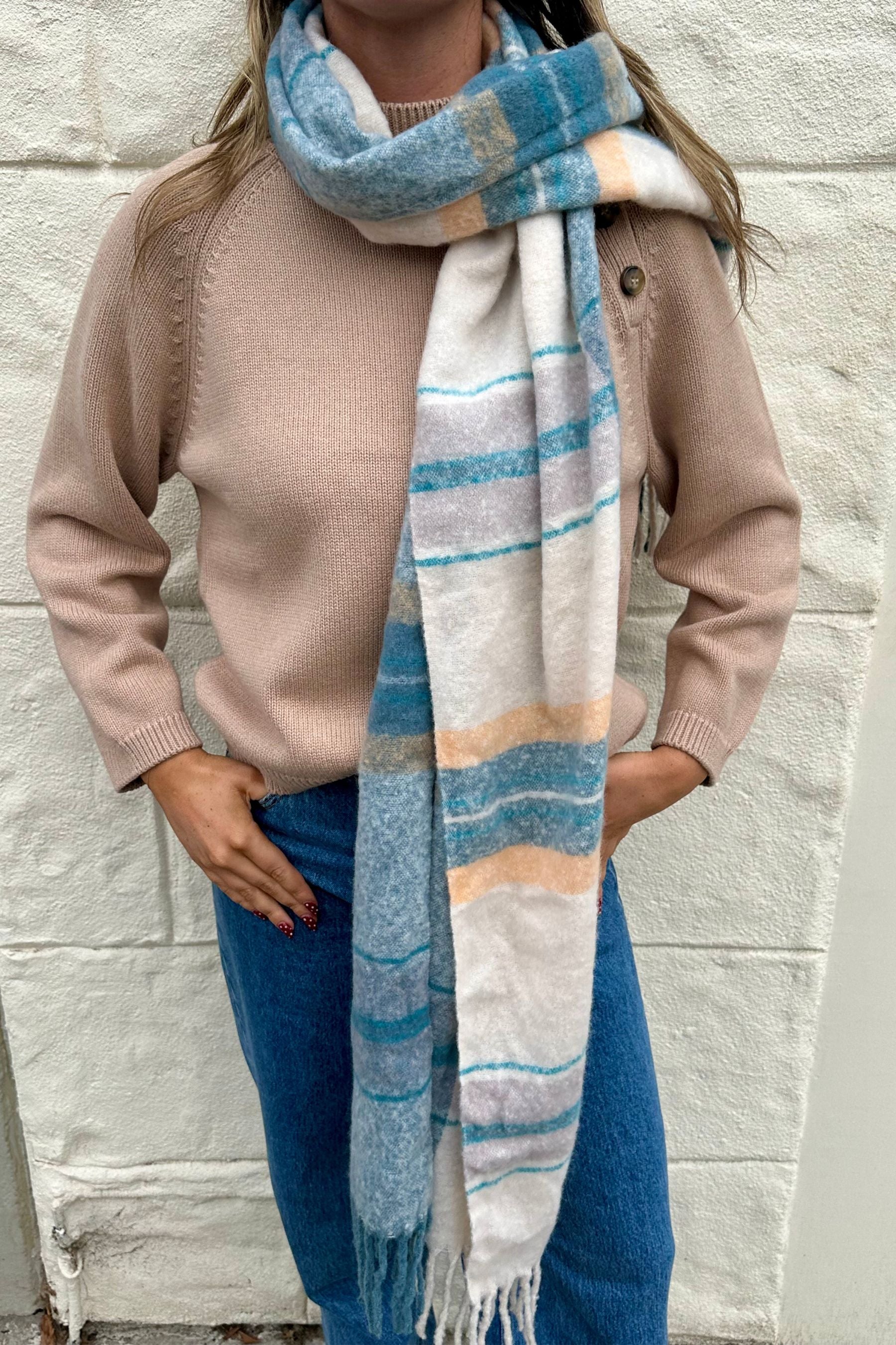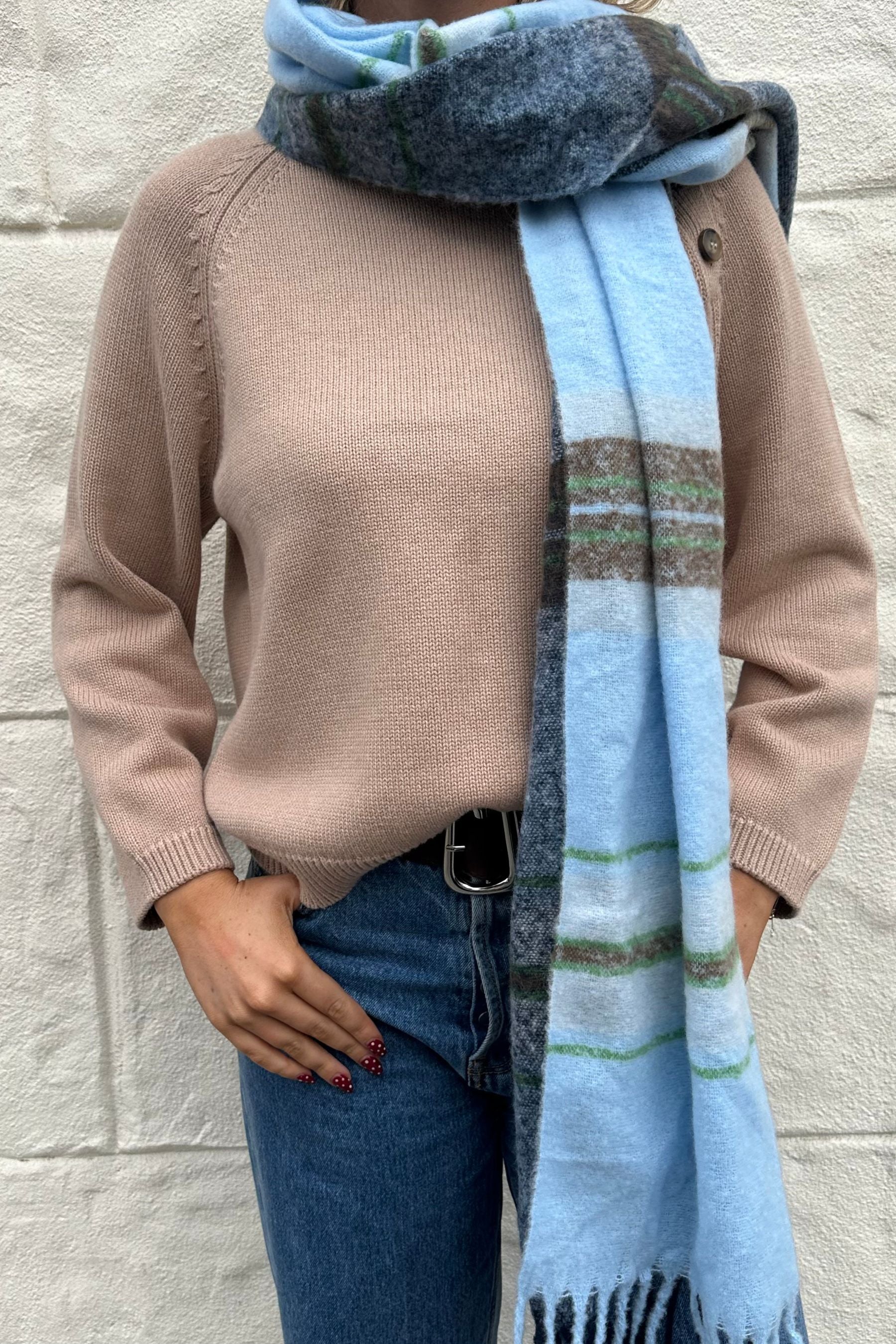 Multicolour Plaid Scarf | Blue & Melon