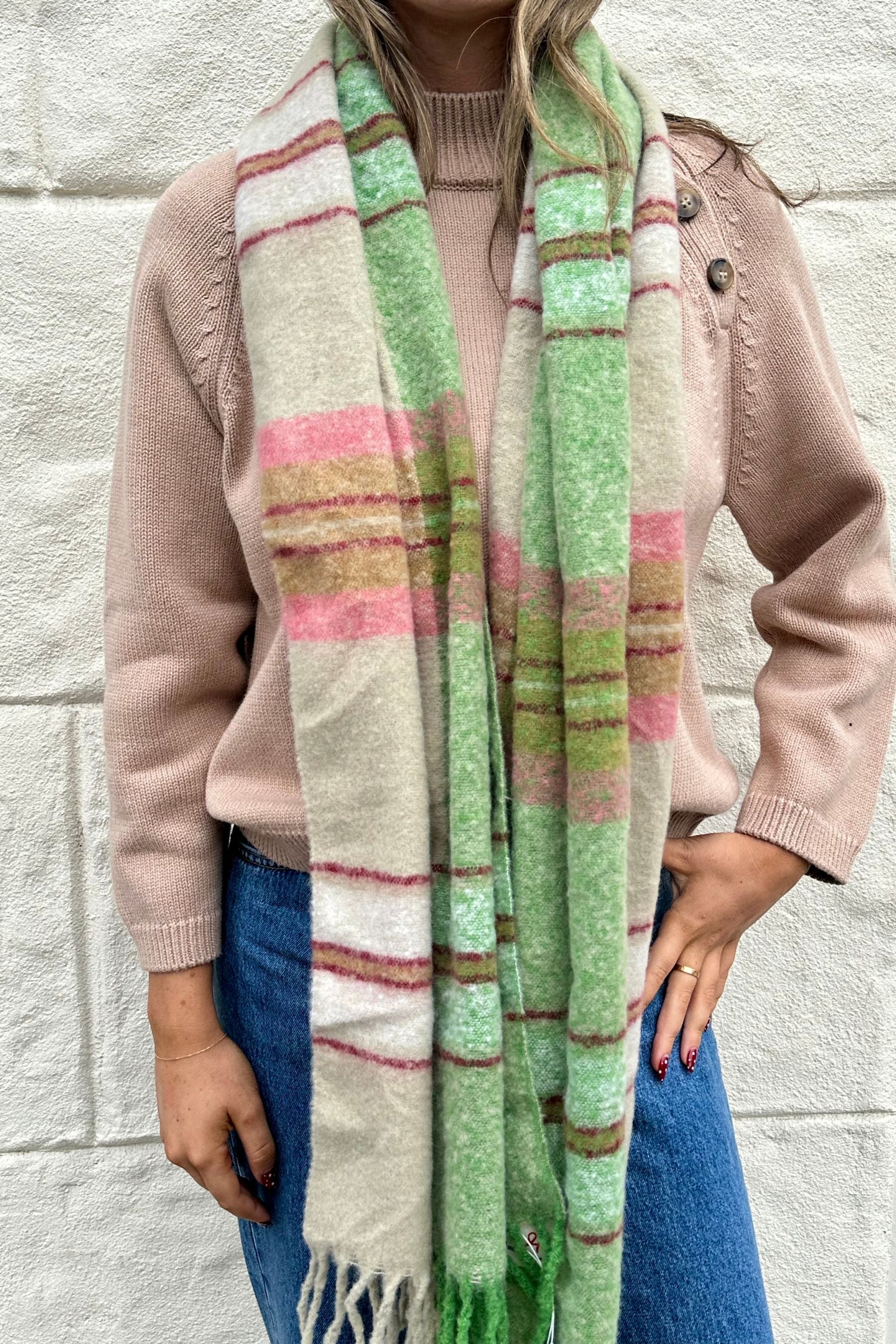 Multicolour Plaid Scarf | Beige & Green