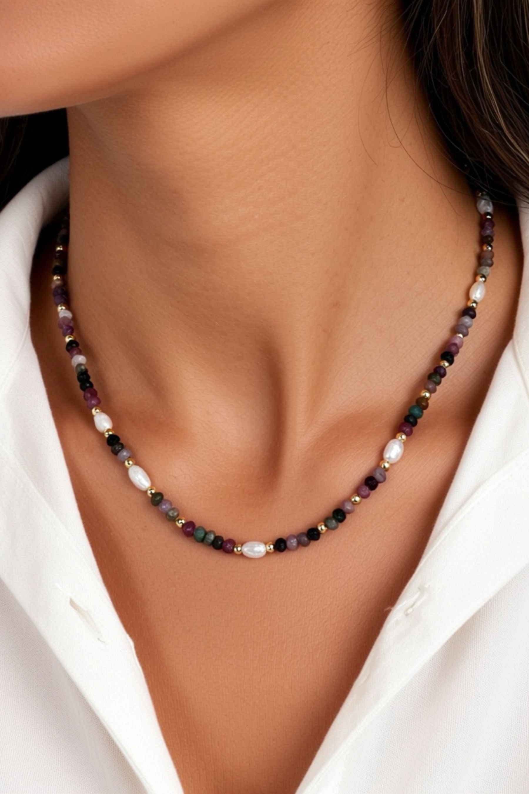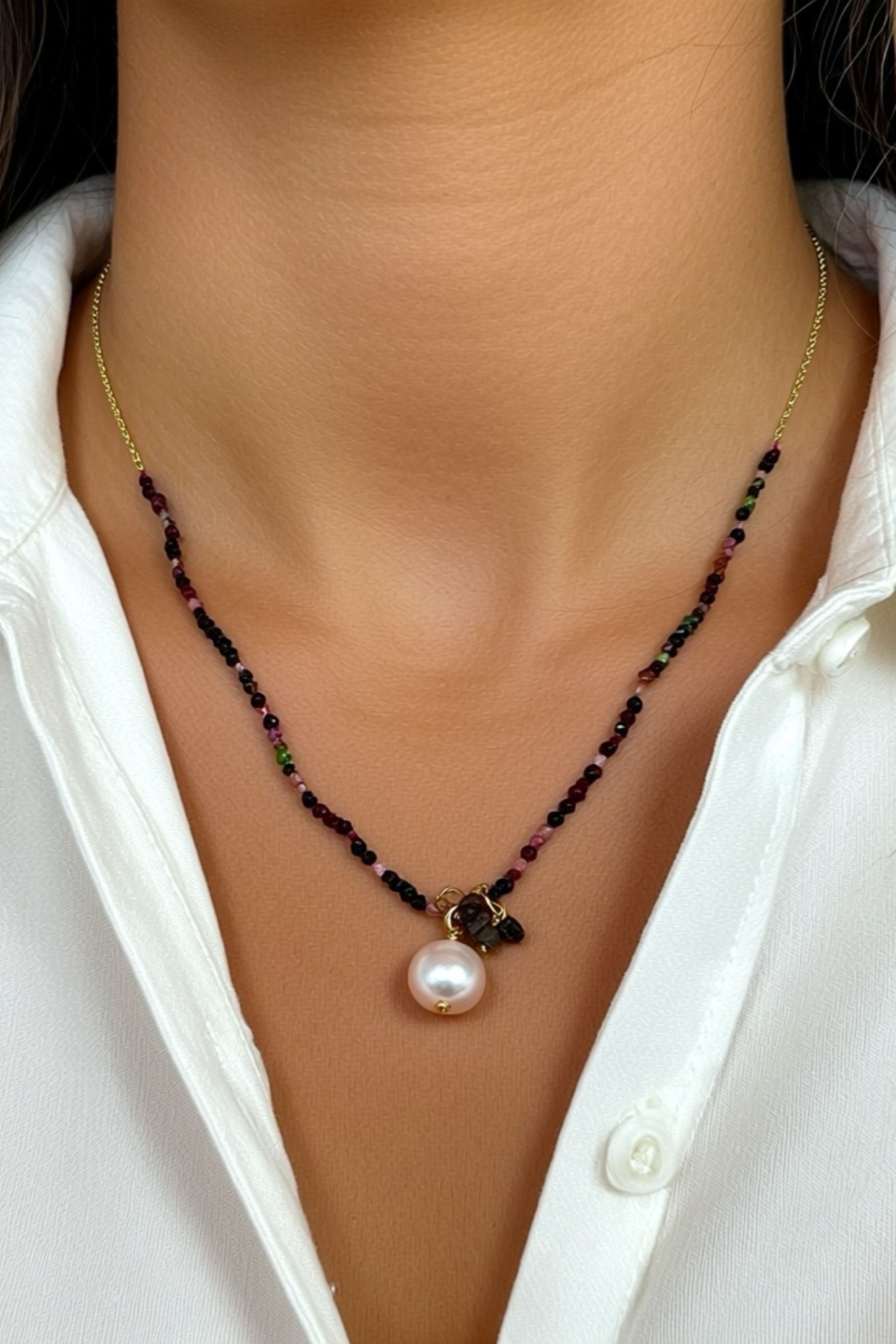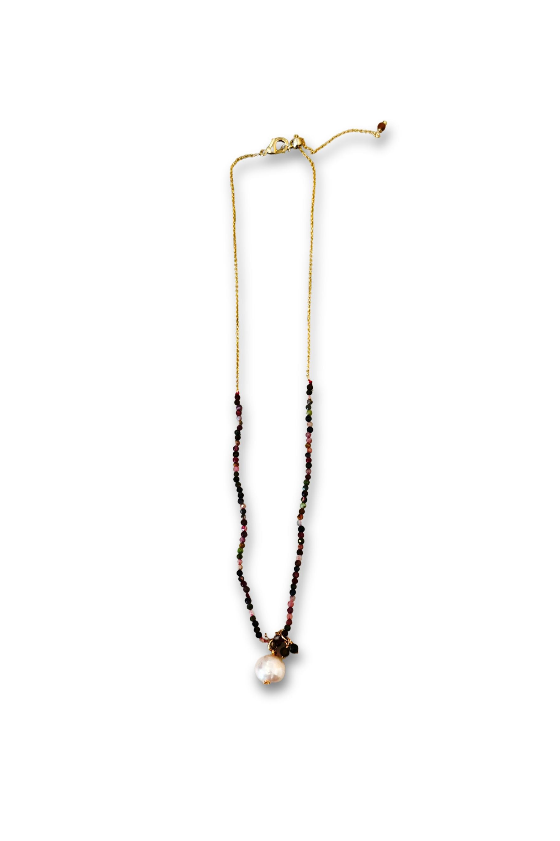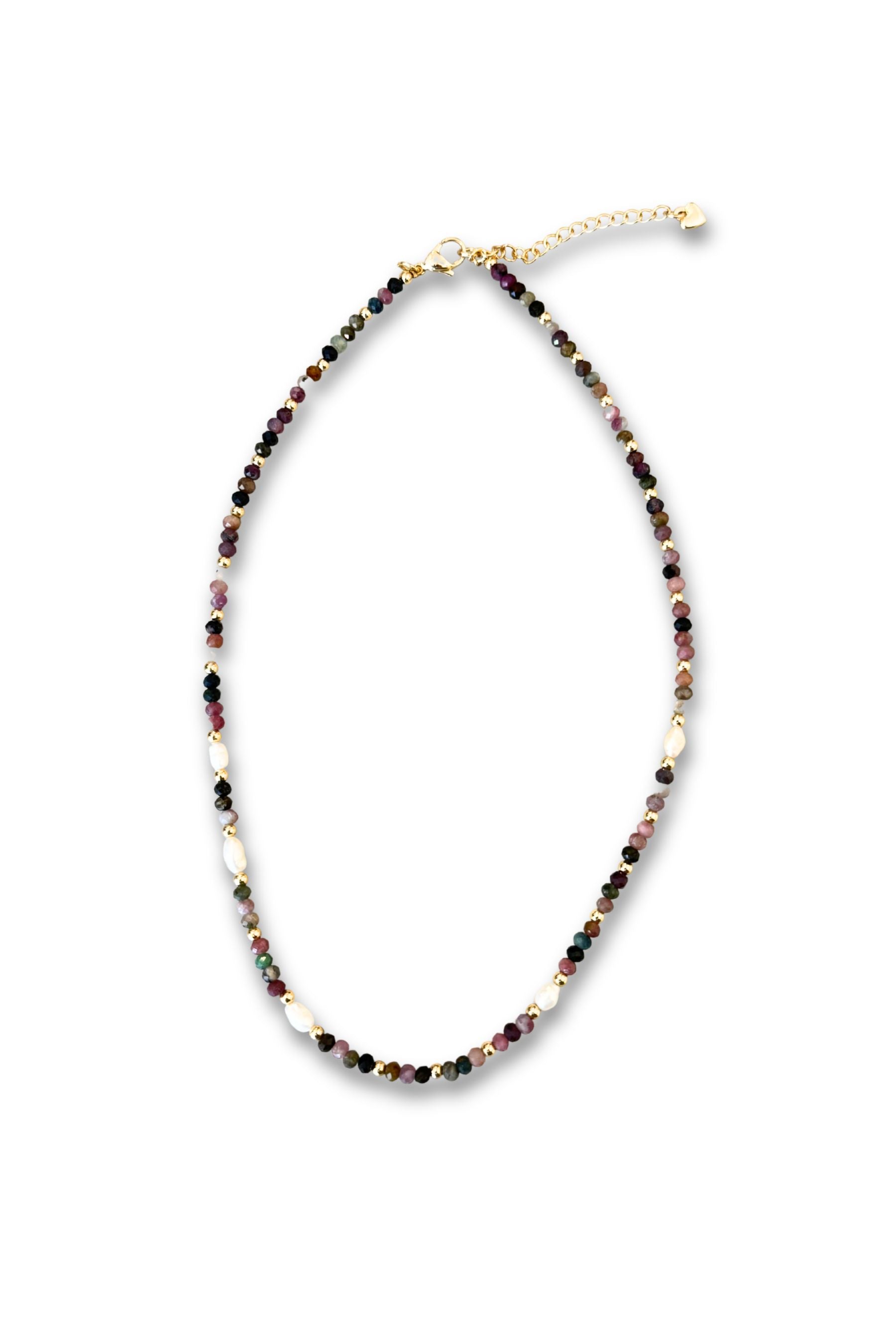 Necklace | Tourmaline, Rice Pearls & Gold Balls