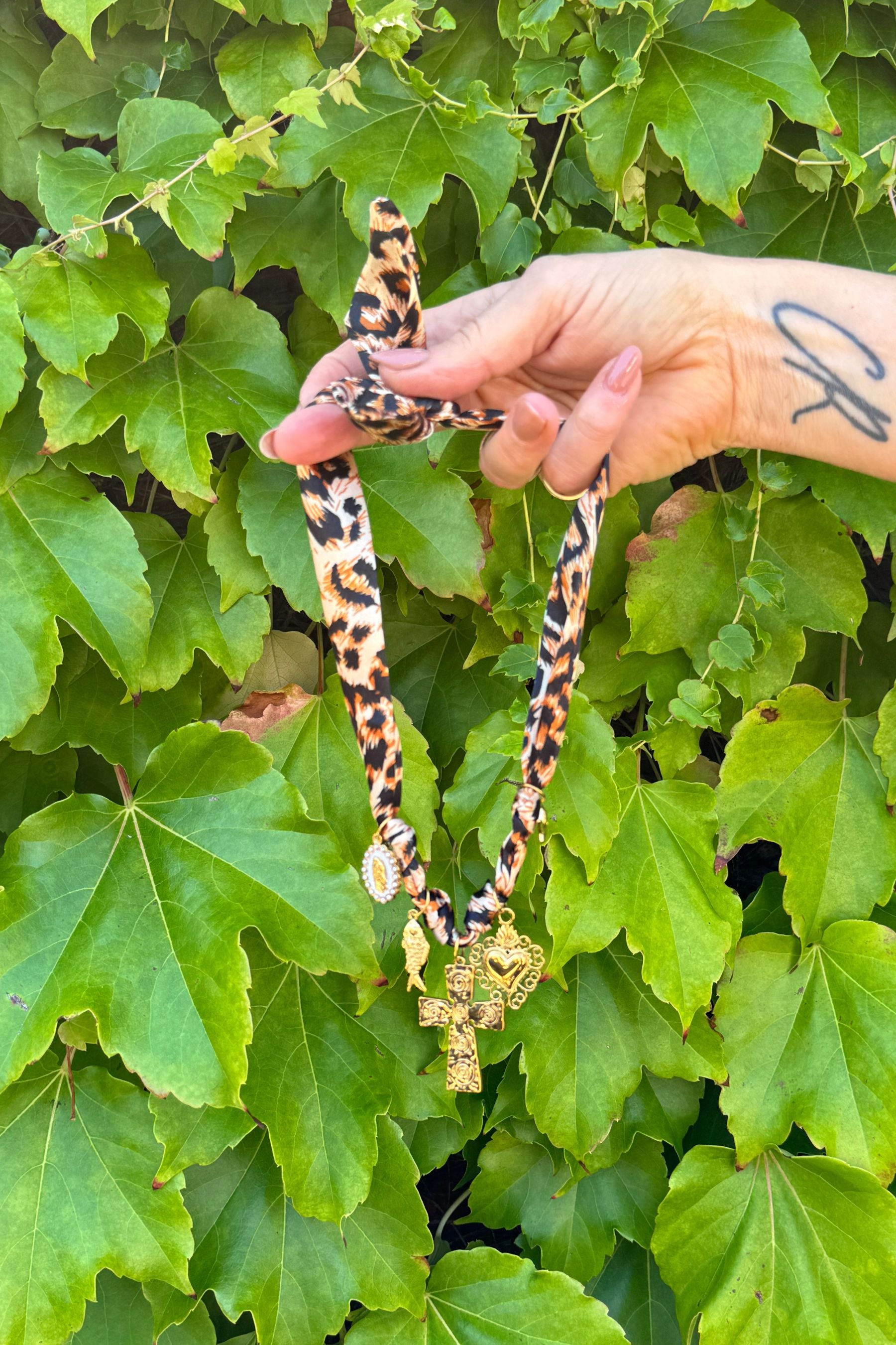 Fabric Charm Necklace | Leopard