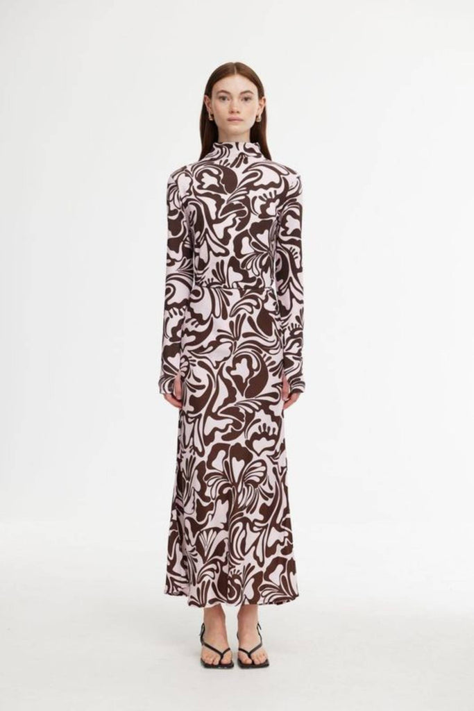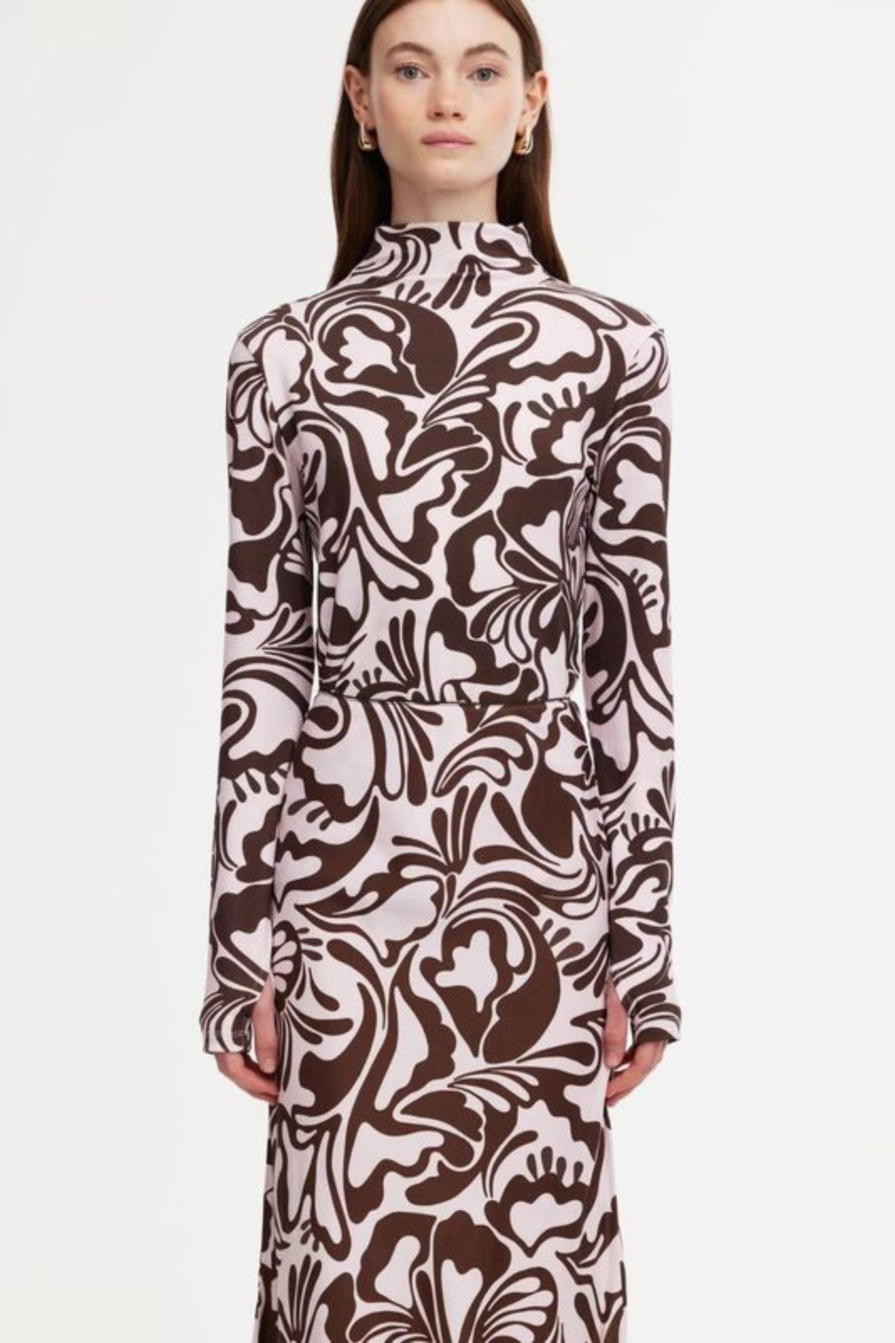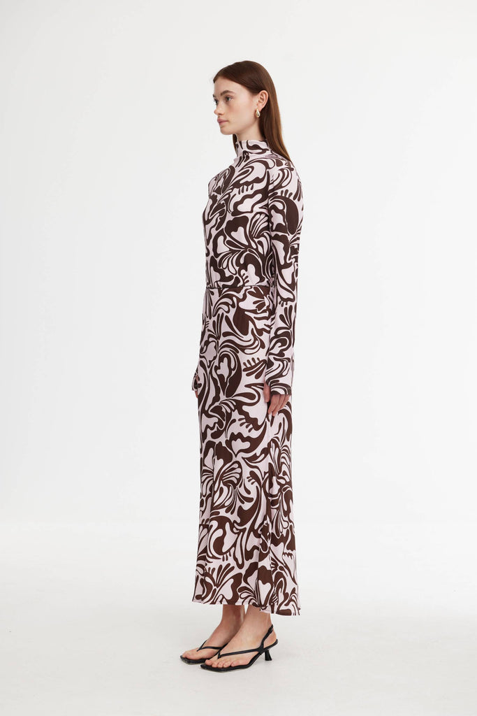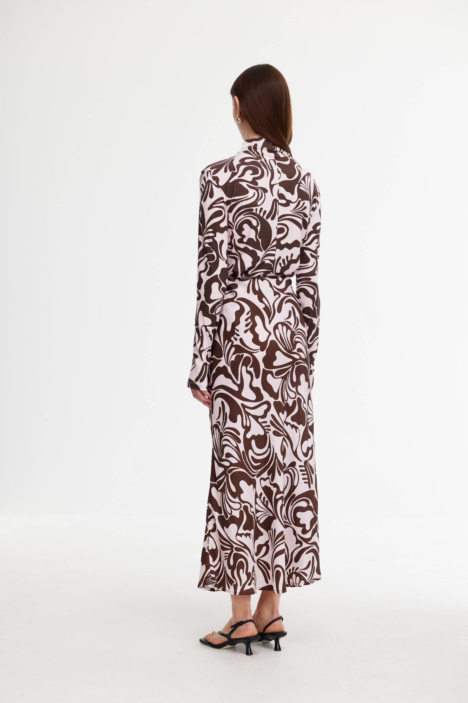 Our exclusive Marble print is a contemporary design, featuring a dynamic blend of pink and brown swirls. Made in our silky viscose satin.