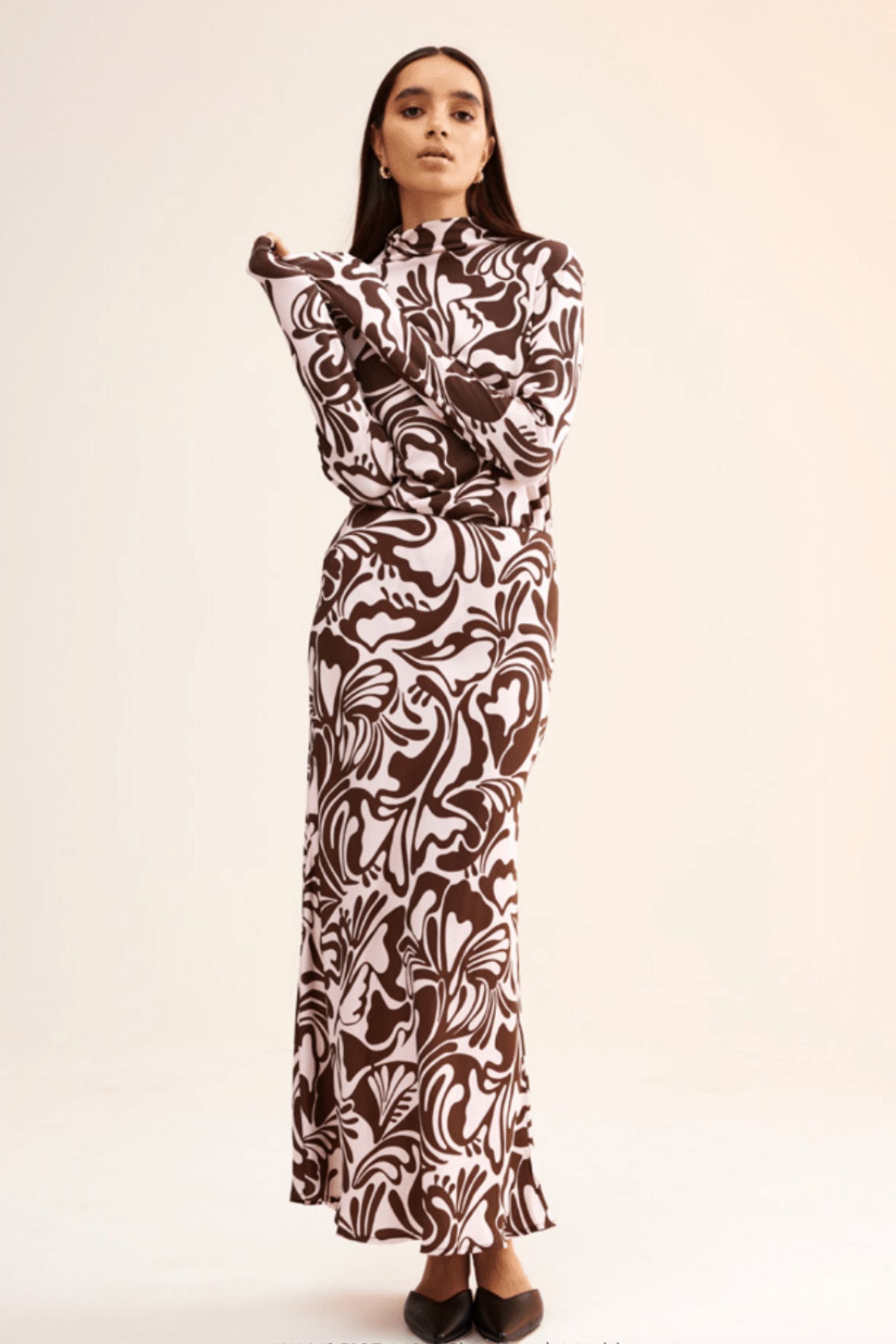 The Leah skirt is a flattering bias cut maxi skirt. It has a beautiful drape and an elasticated waistband for ease of wear.
