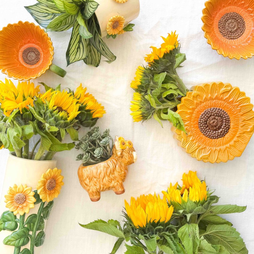 Sunflower Vase Beige & Yellow | 22cm