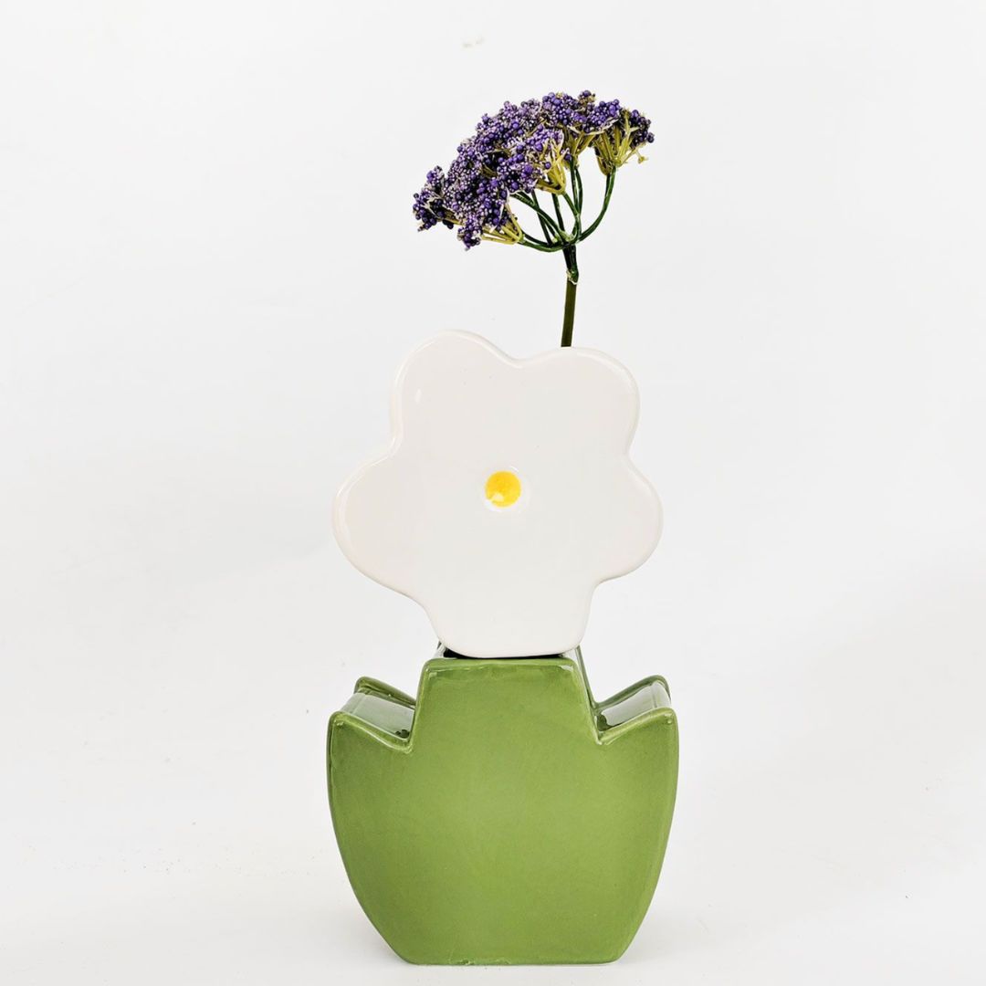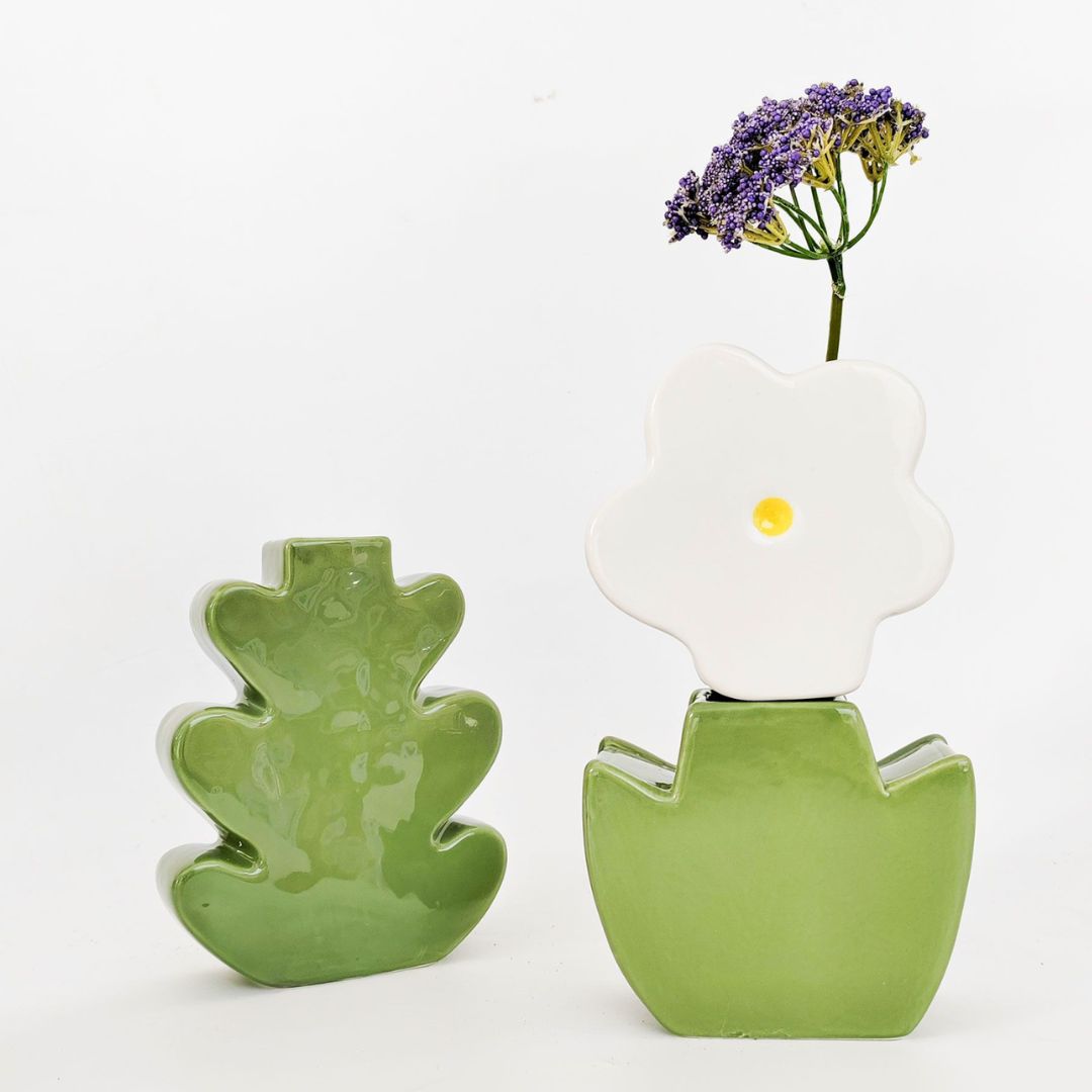 Alice Flower Double Vase | White & Green