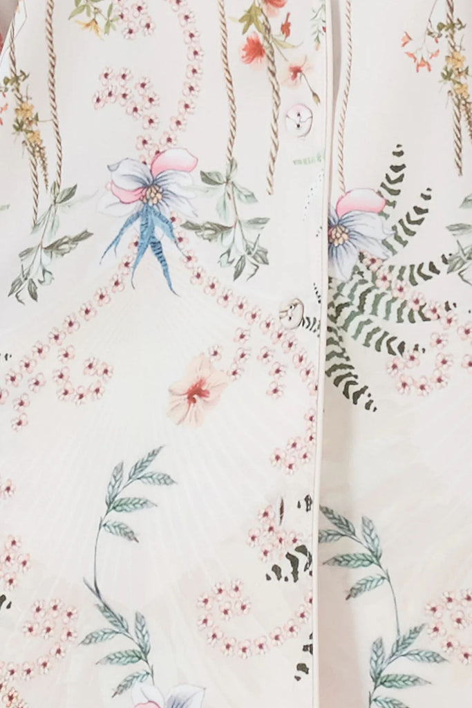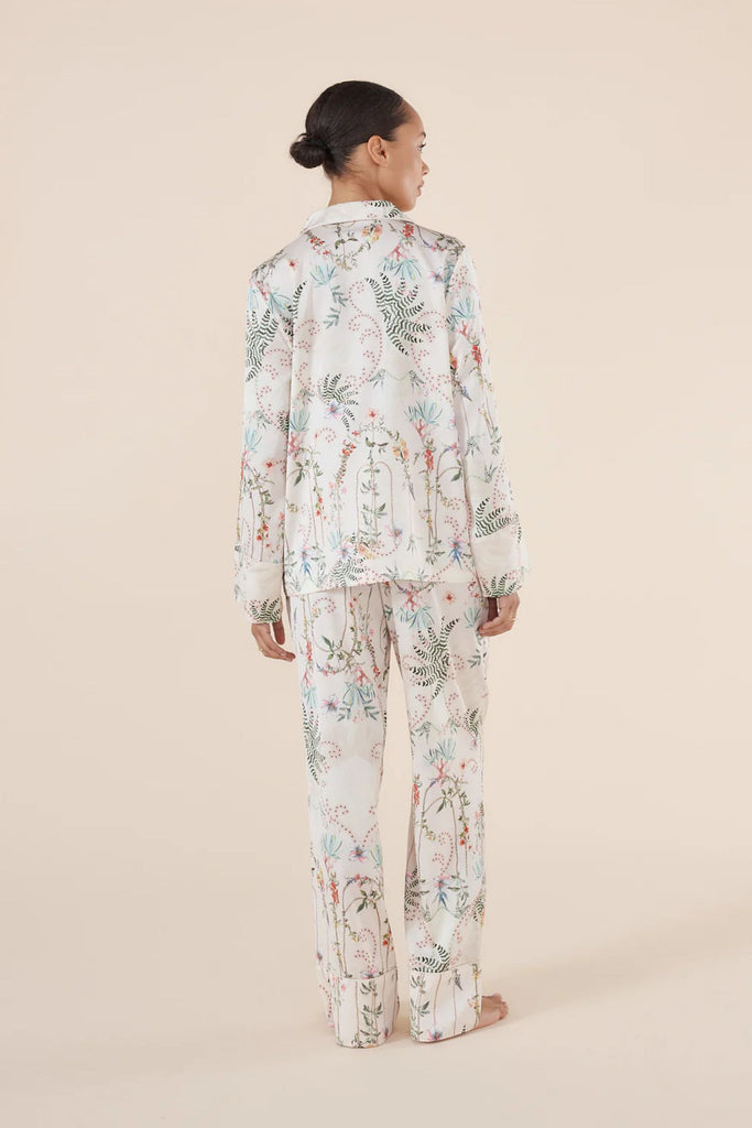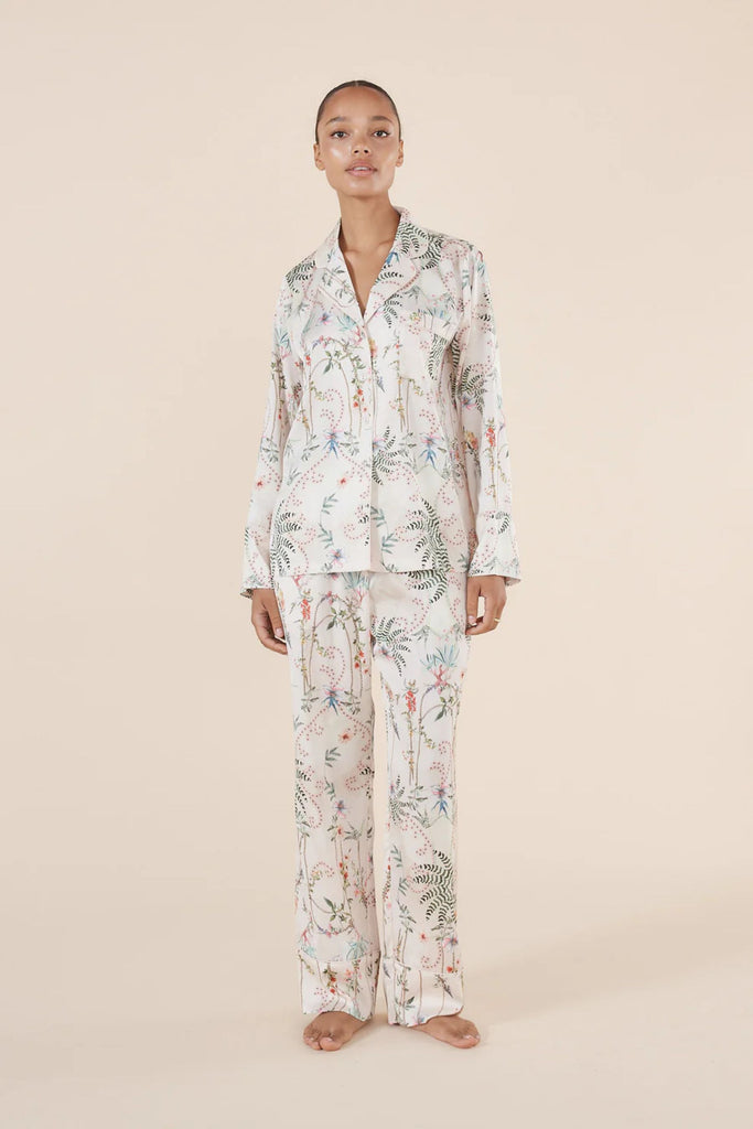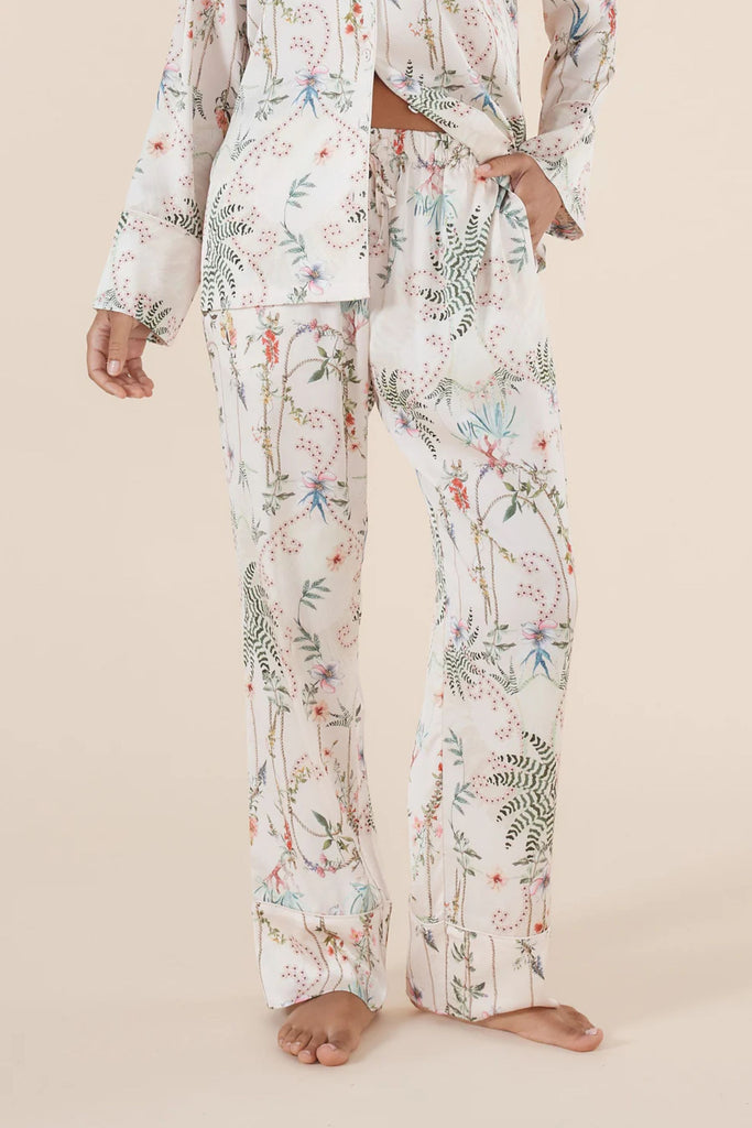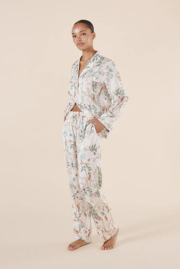 Introducing the Maeve Botanical Print Satin Pyjama Set, a timeless must-have in Gingerlilly’s signature floral print. Crafted from silky satin, this elegant yet effortless set is designed for year-round comfort and luxury. The button-through long-sleeve top features a chest pocket, while the wide-leg trousers are finished with an elasticated waistband and adjustable tie for the perfect relaxed fit. This season’s standout floral print is one to cherish, making this sleepwear essential a piece to love on repeat.