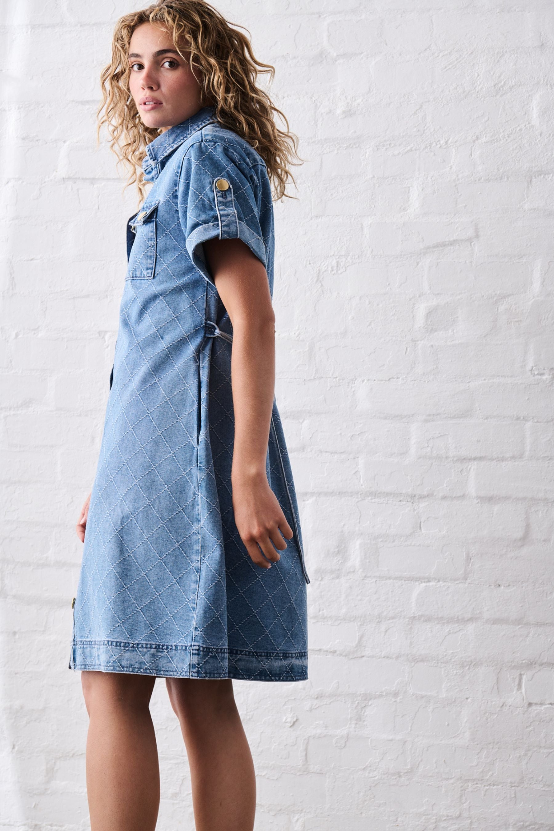 Simone Dress - Check Stitch | 70's Blue