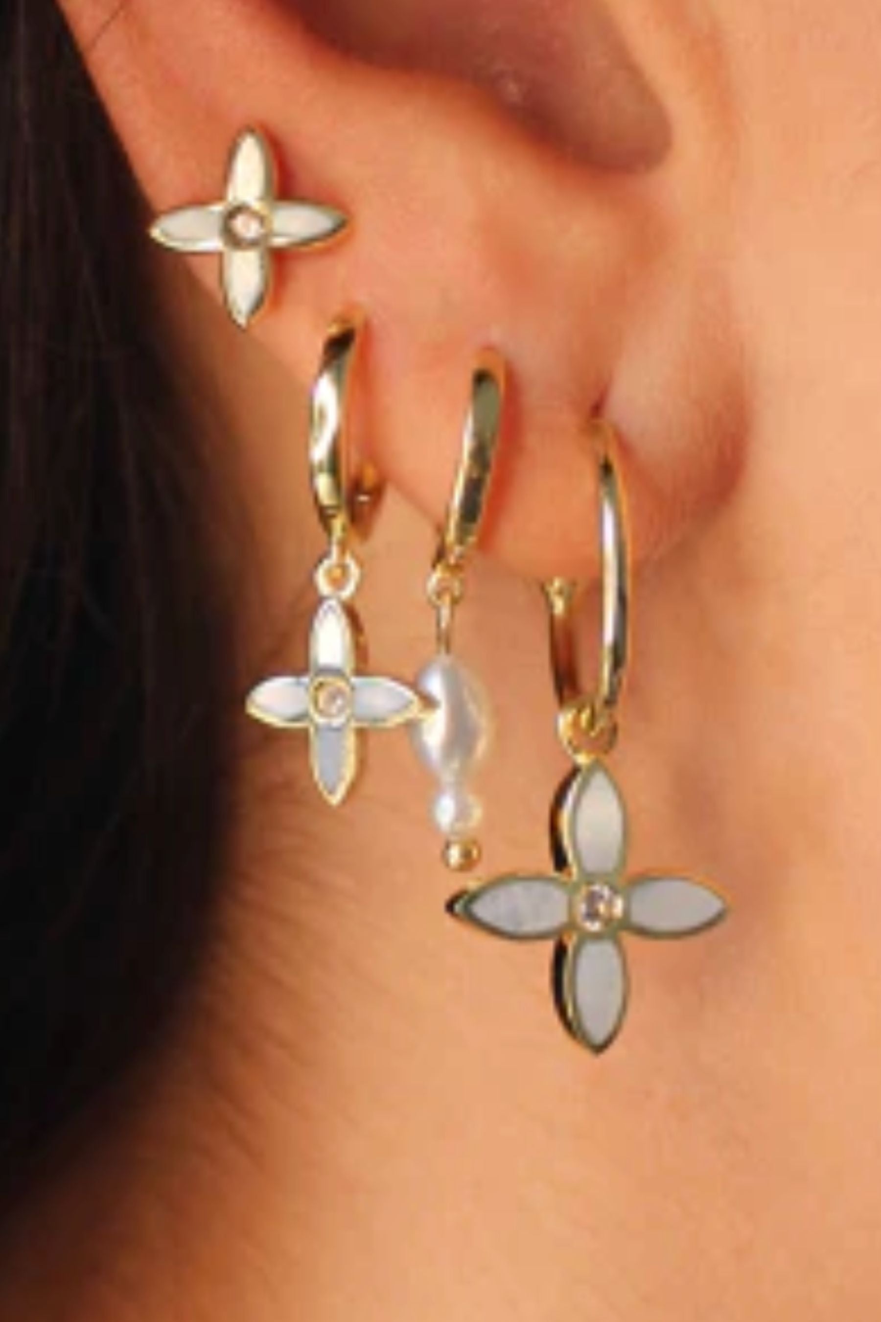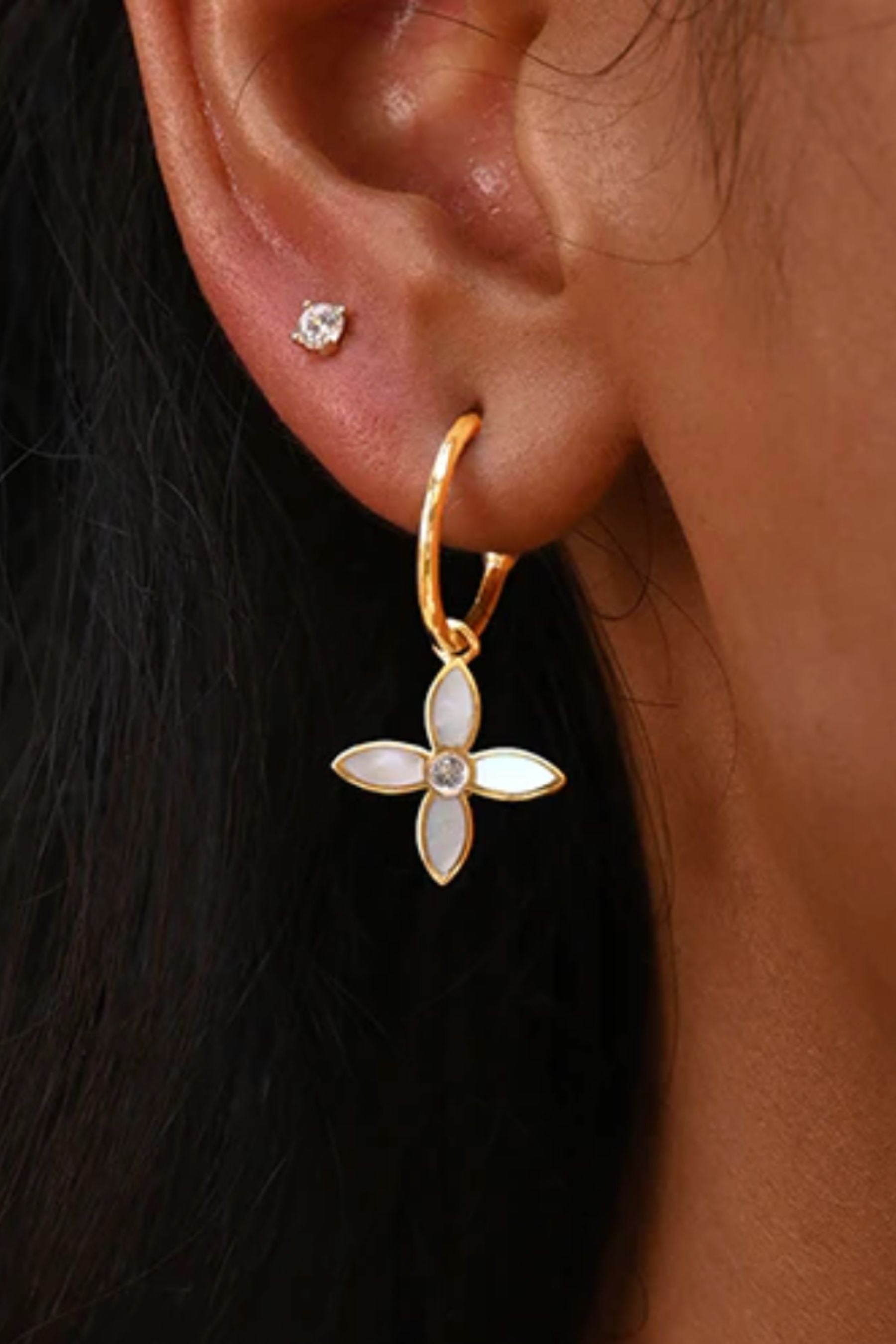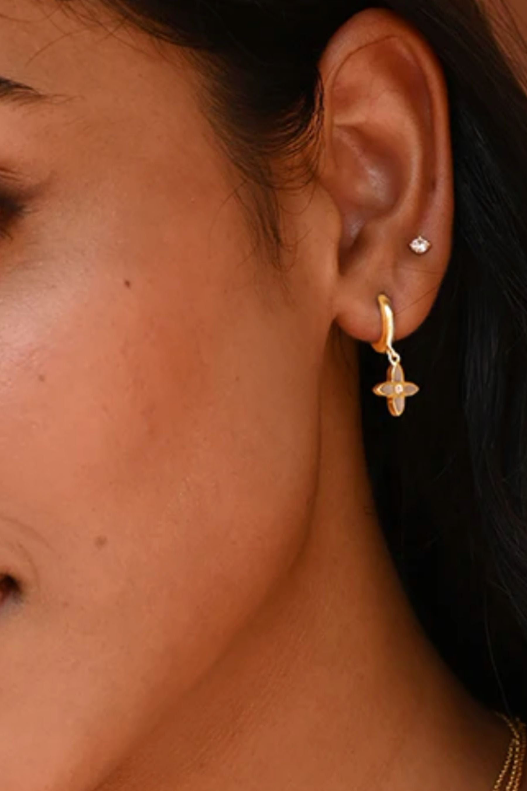 Desert Flower Huggies in 18KT YG Plate