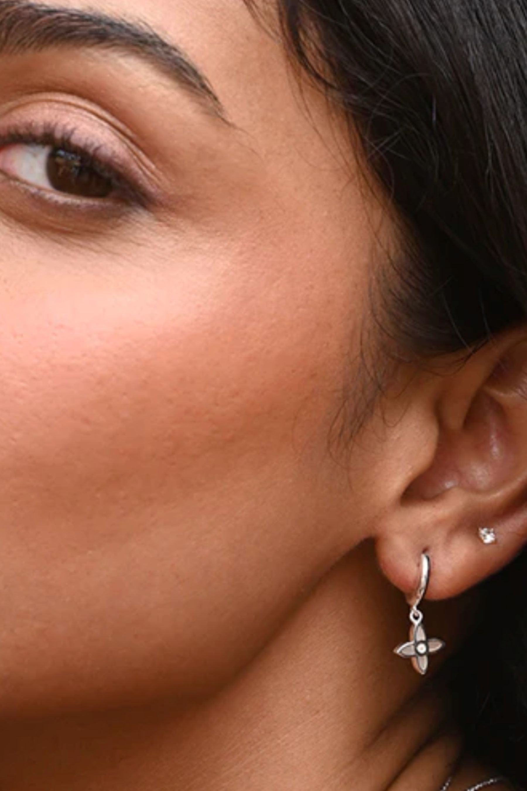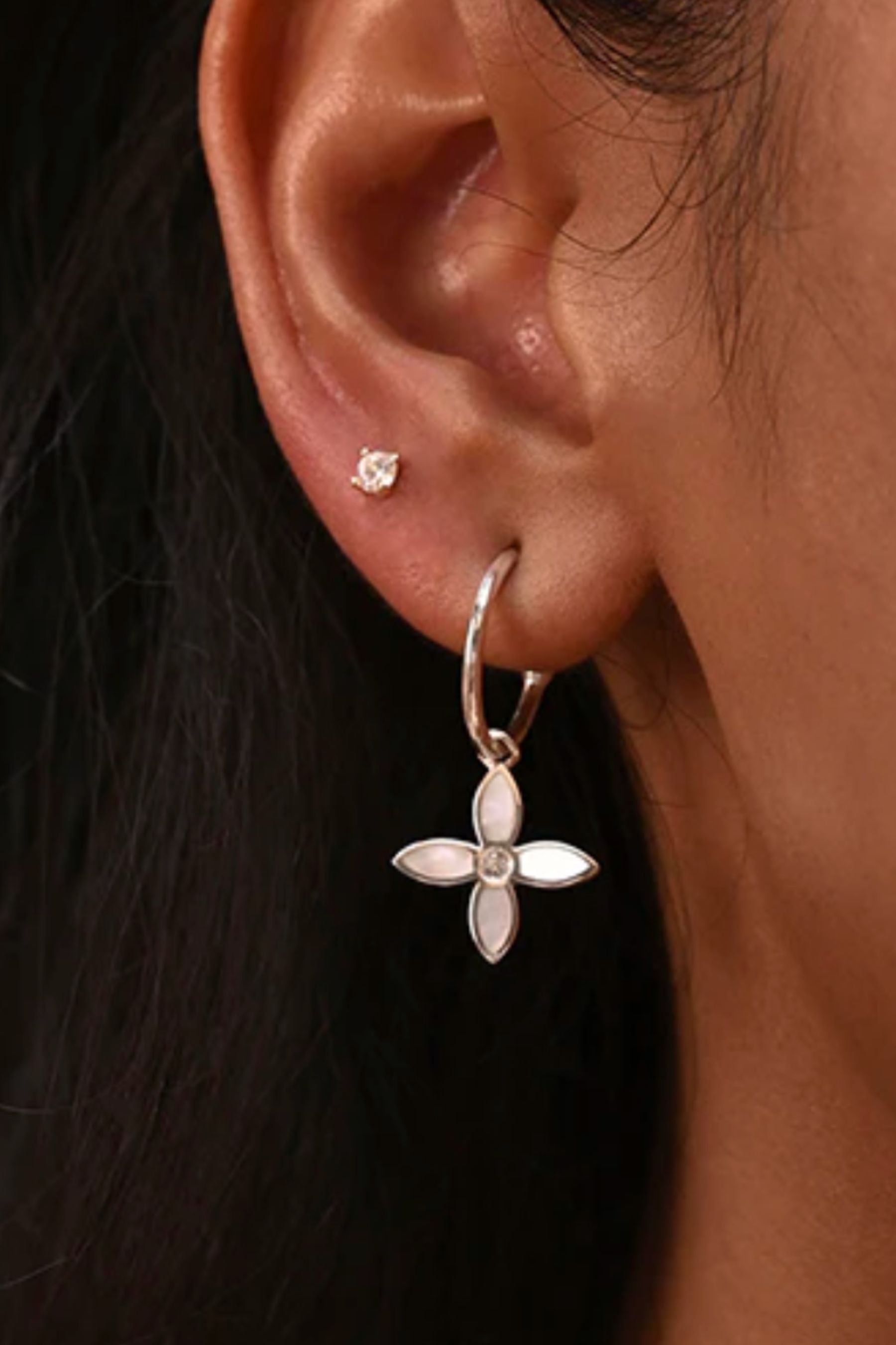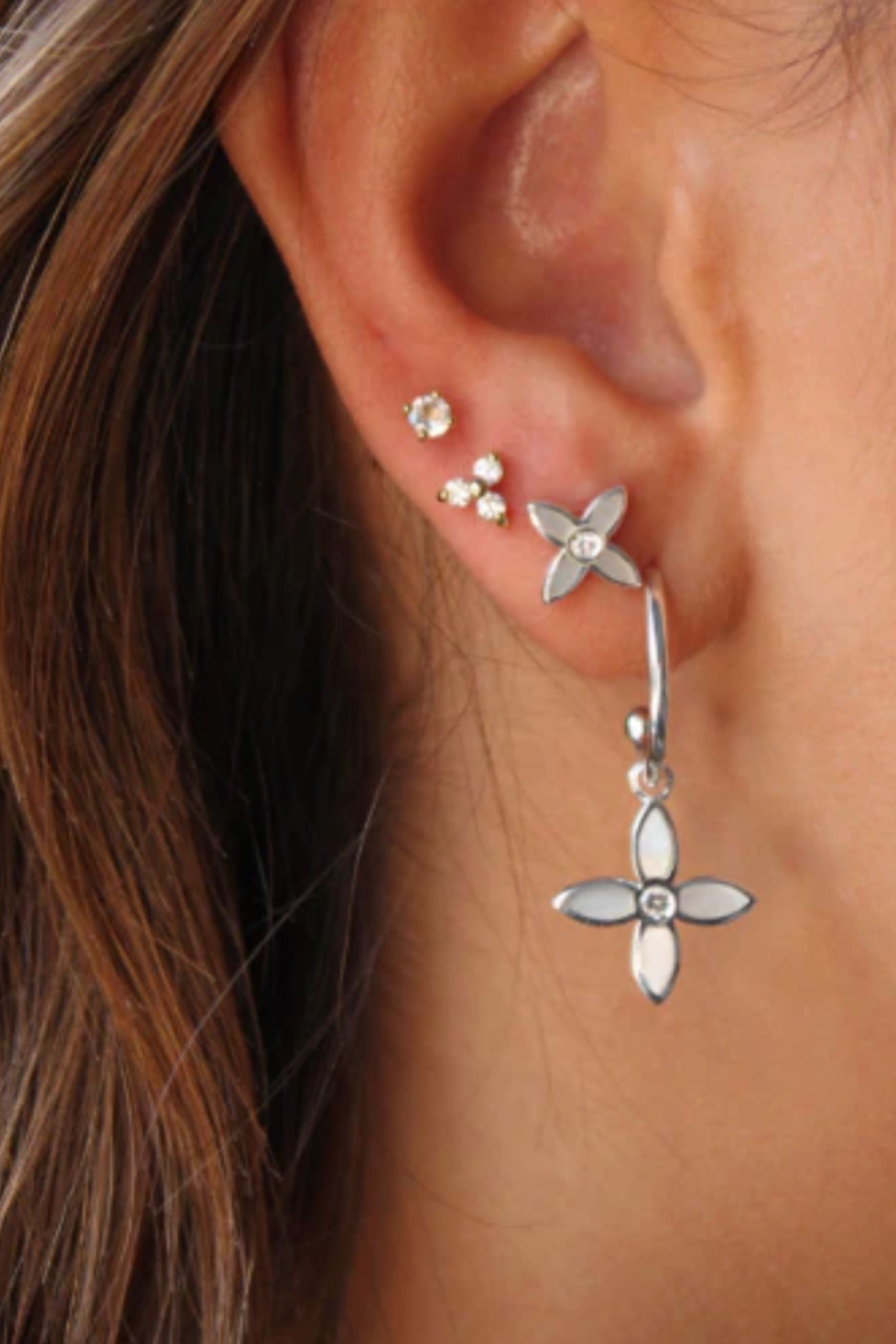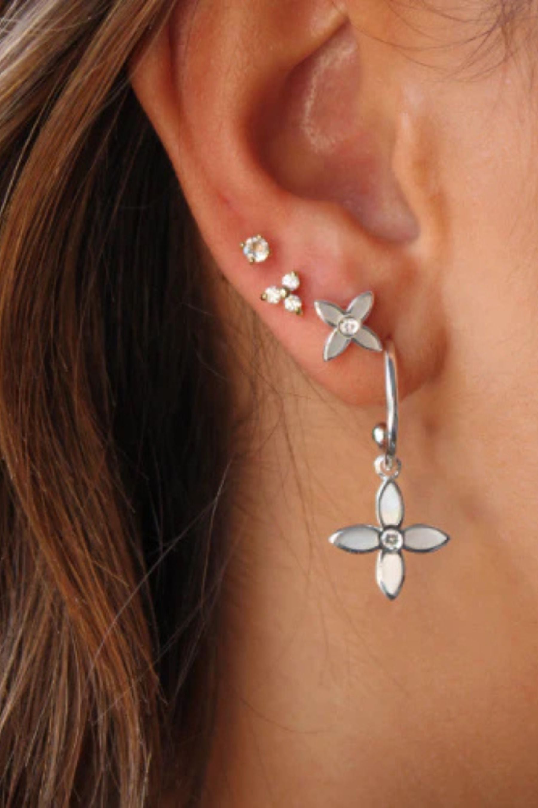 Desert Flower Huggies in Sterling Silver