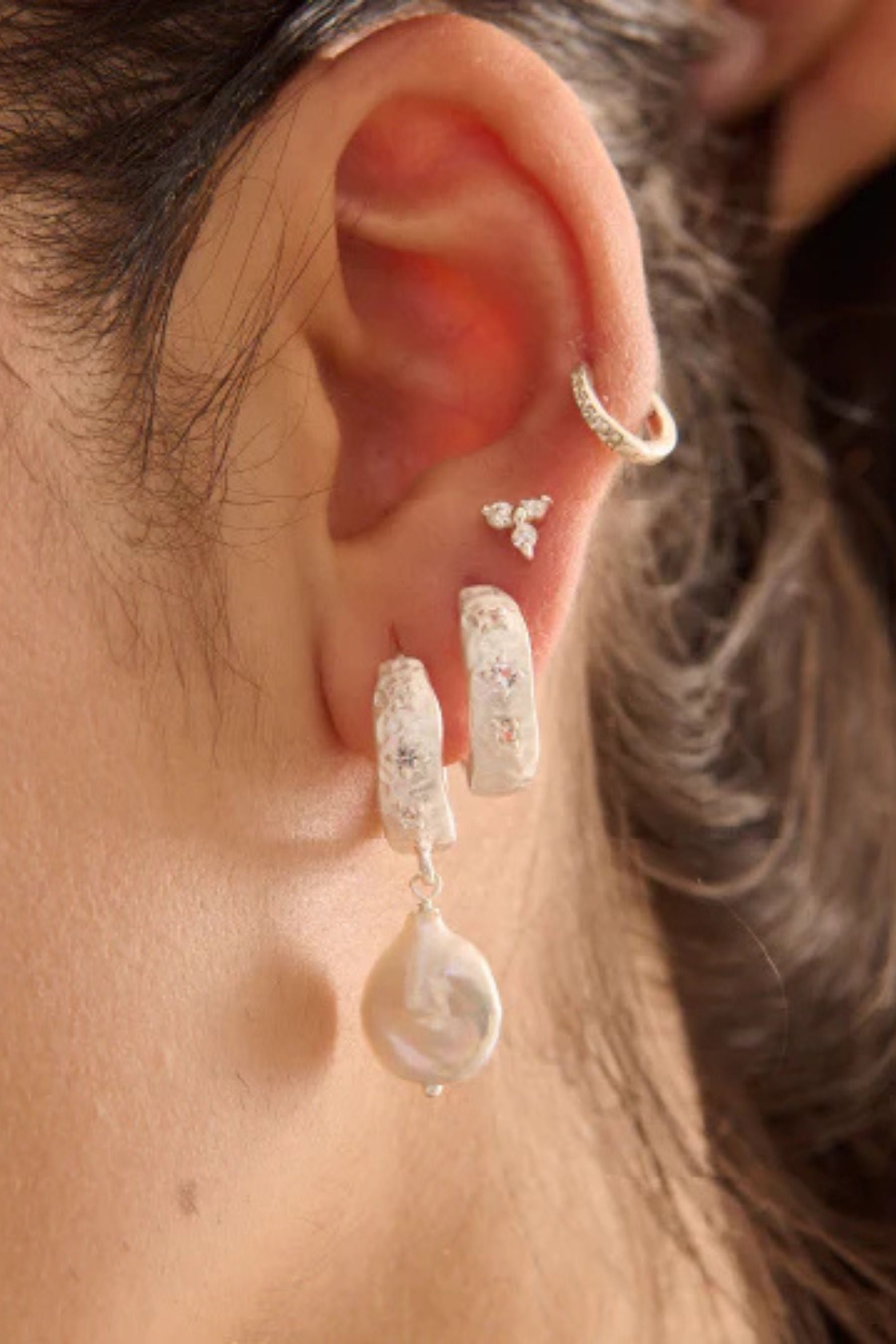 Double Pearl Huggies | Sterling Silver
