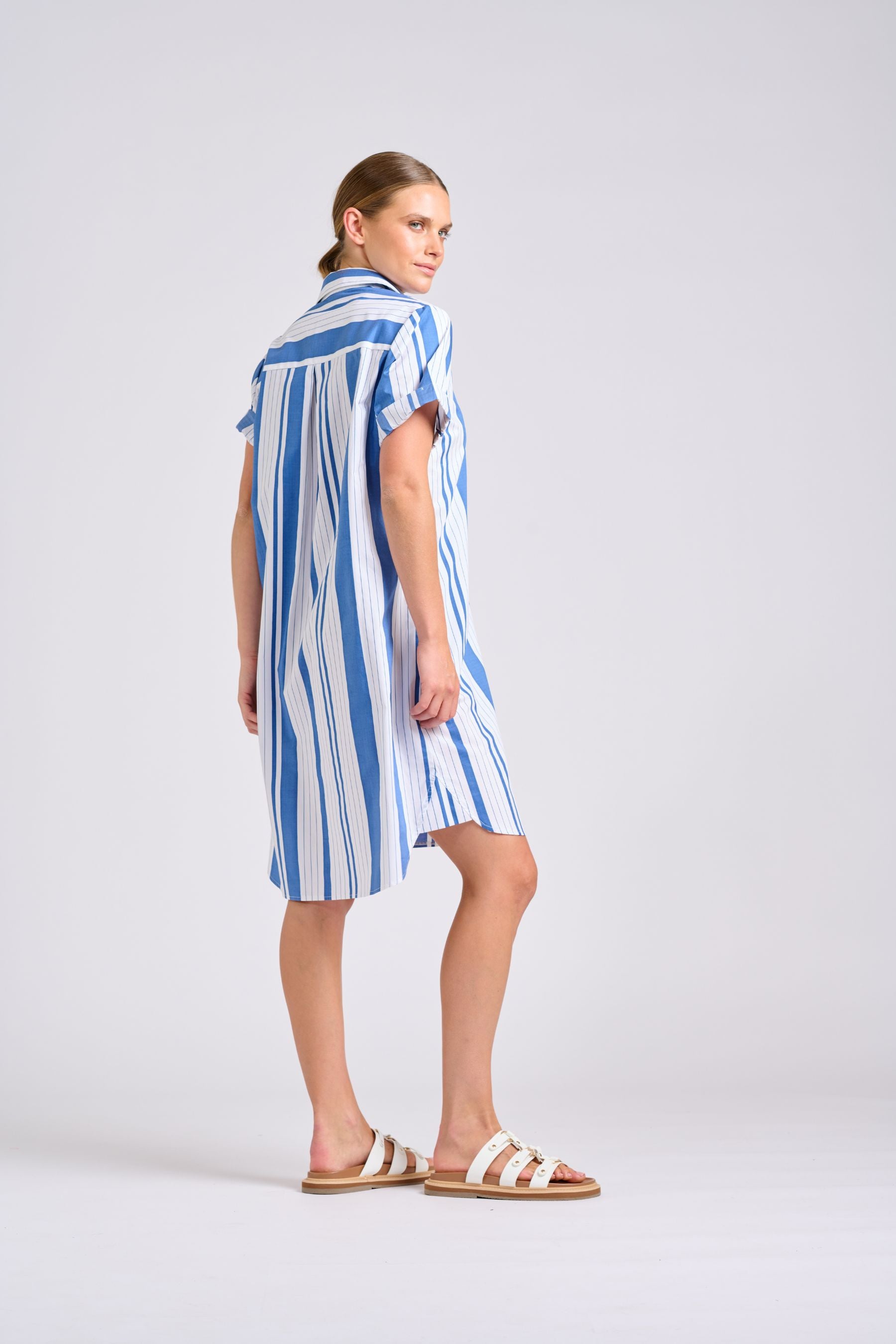 The Annie Short Sleeve Shirt Dress | Mid Blue Stripe