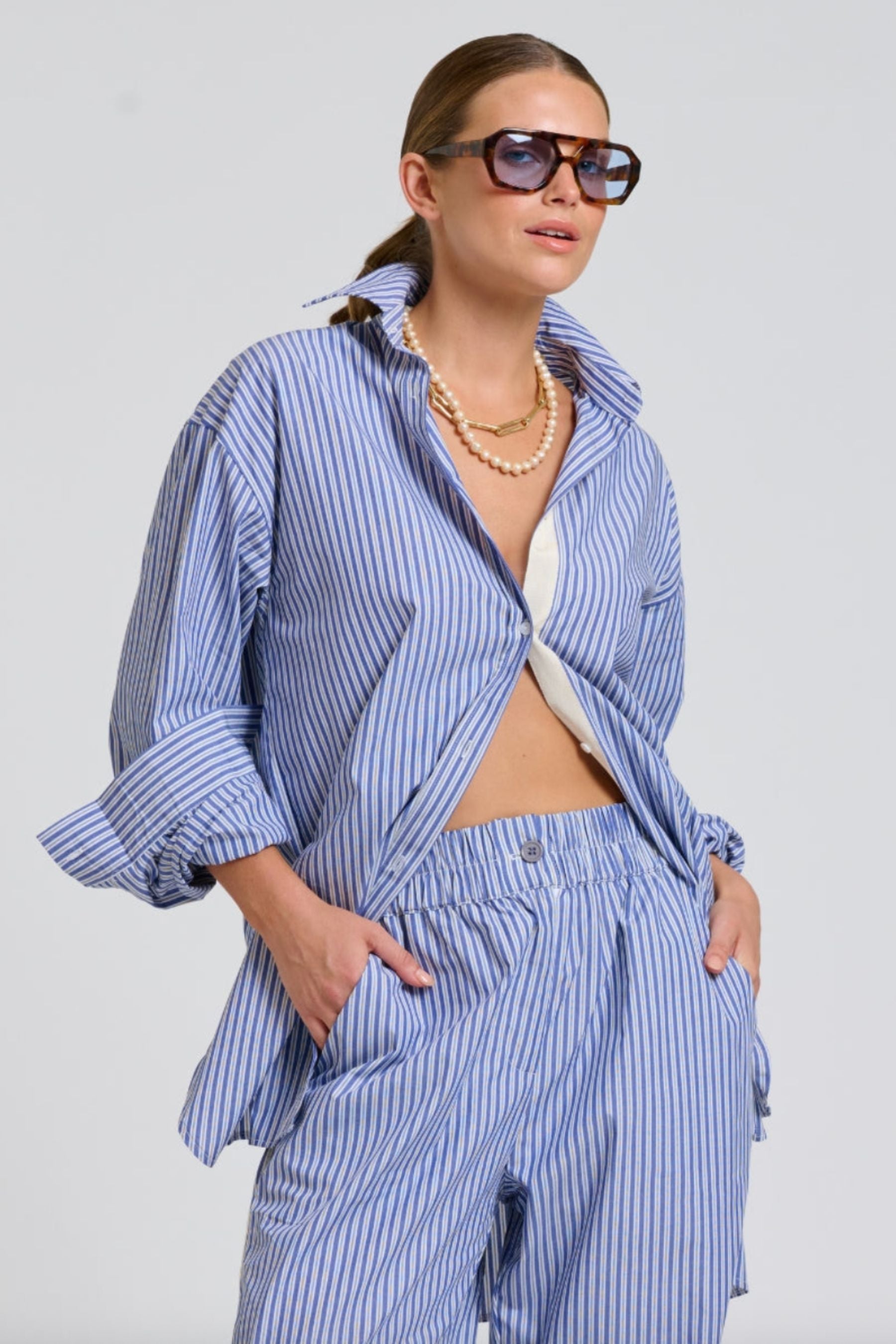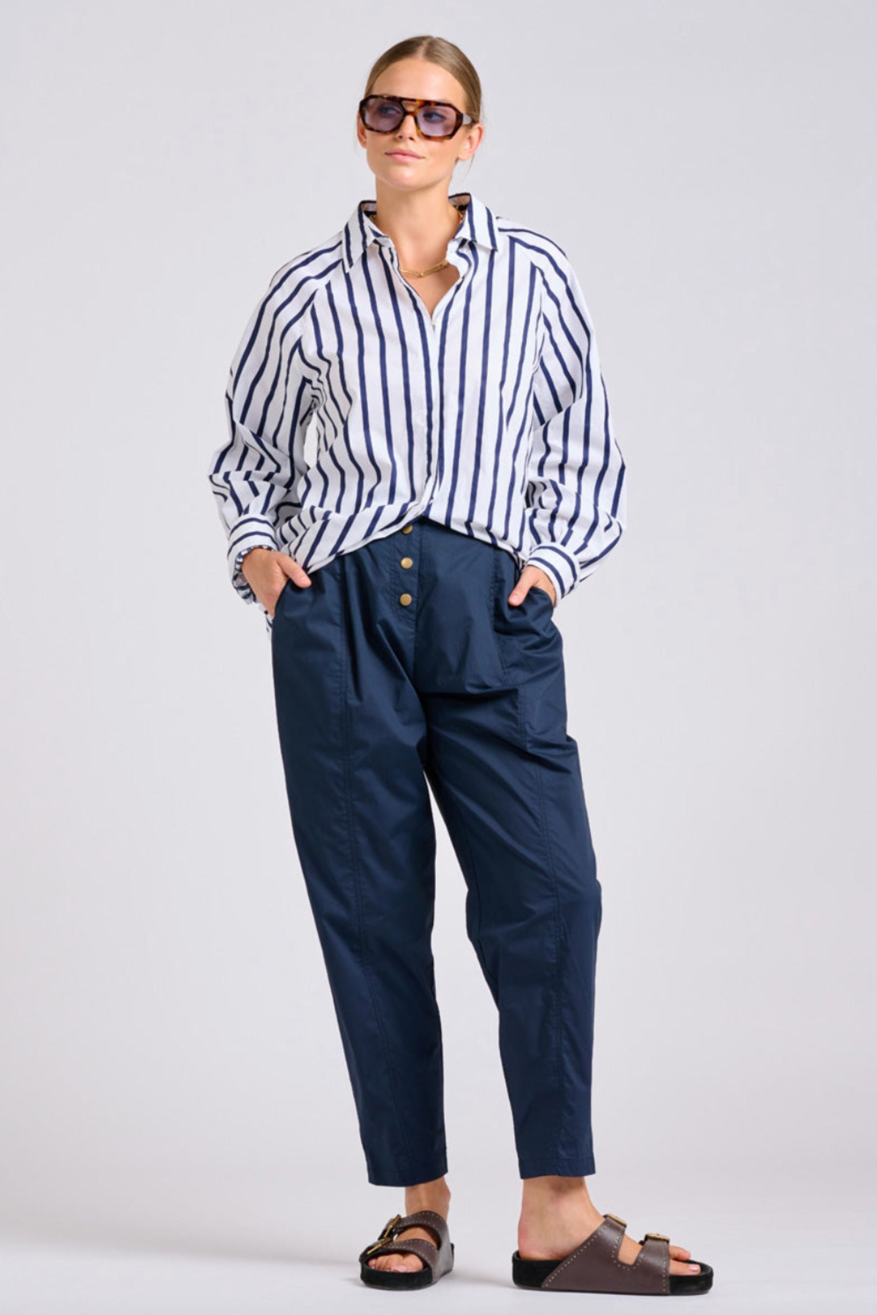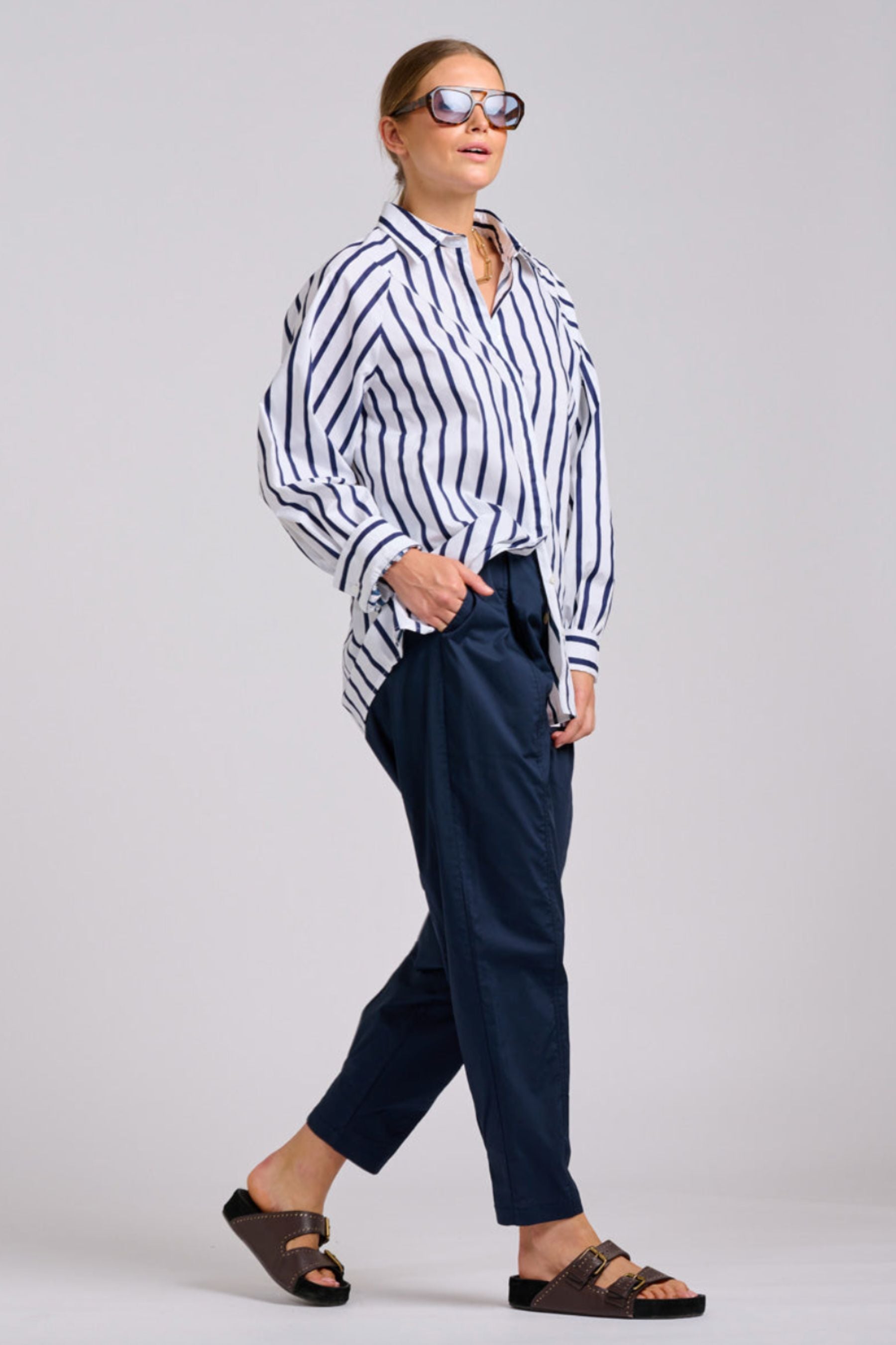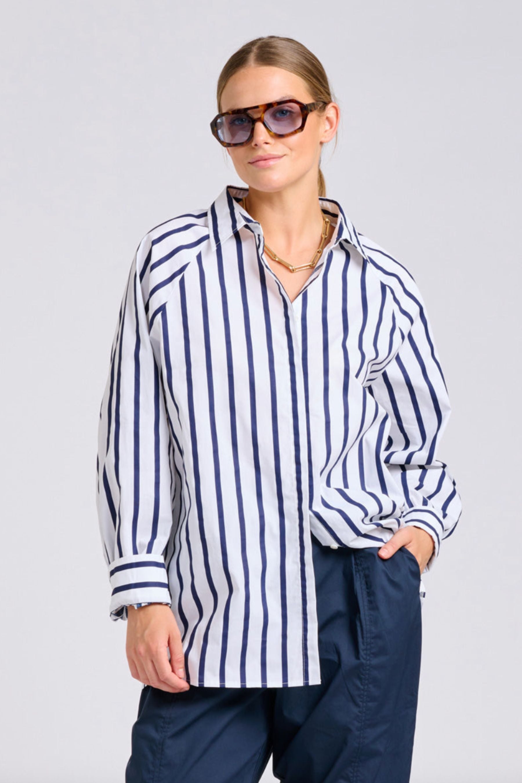 The Gigi Relaxed Shirt | White With Navy Stripe