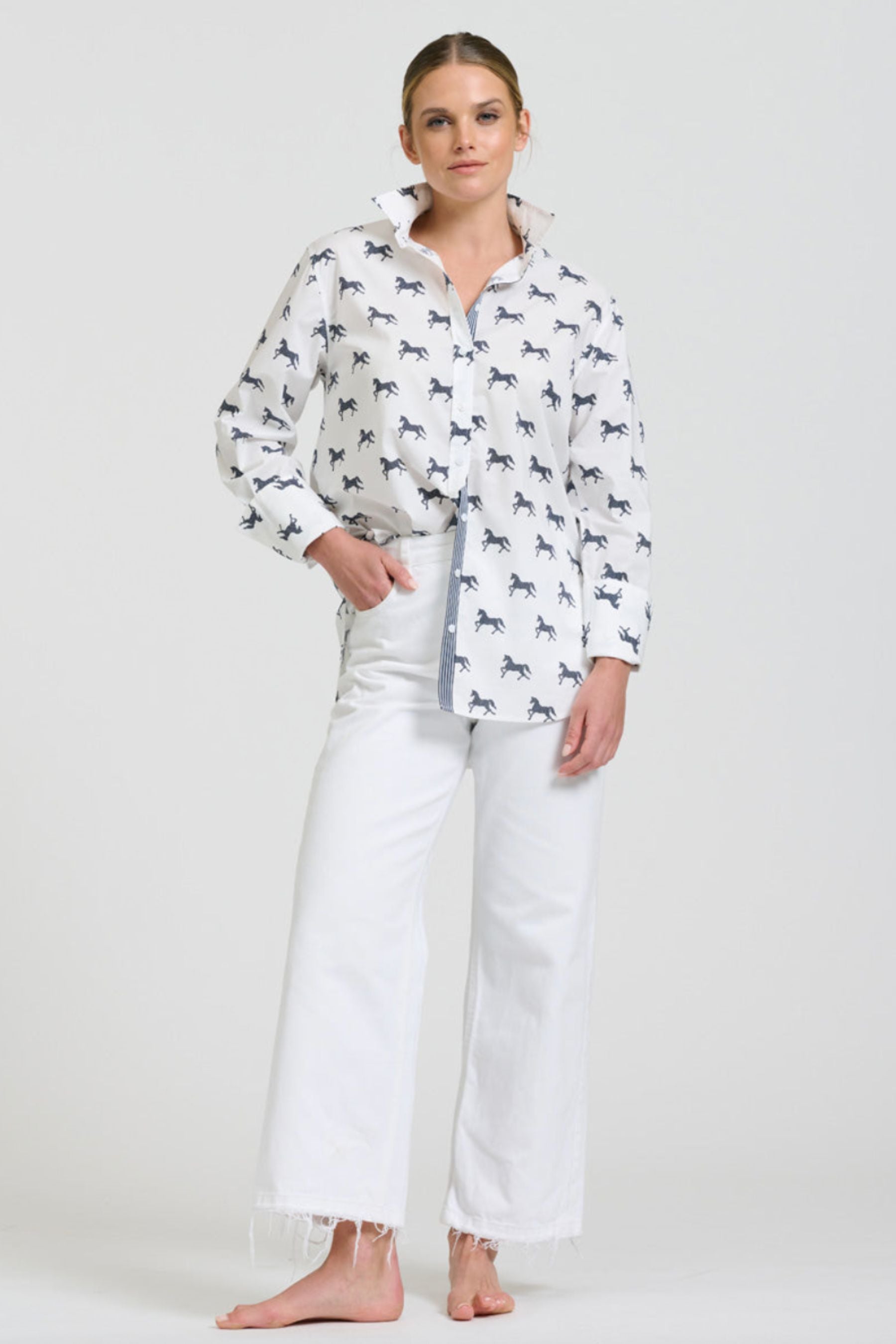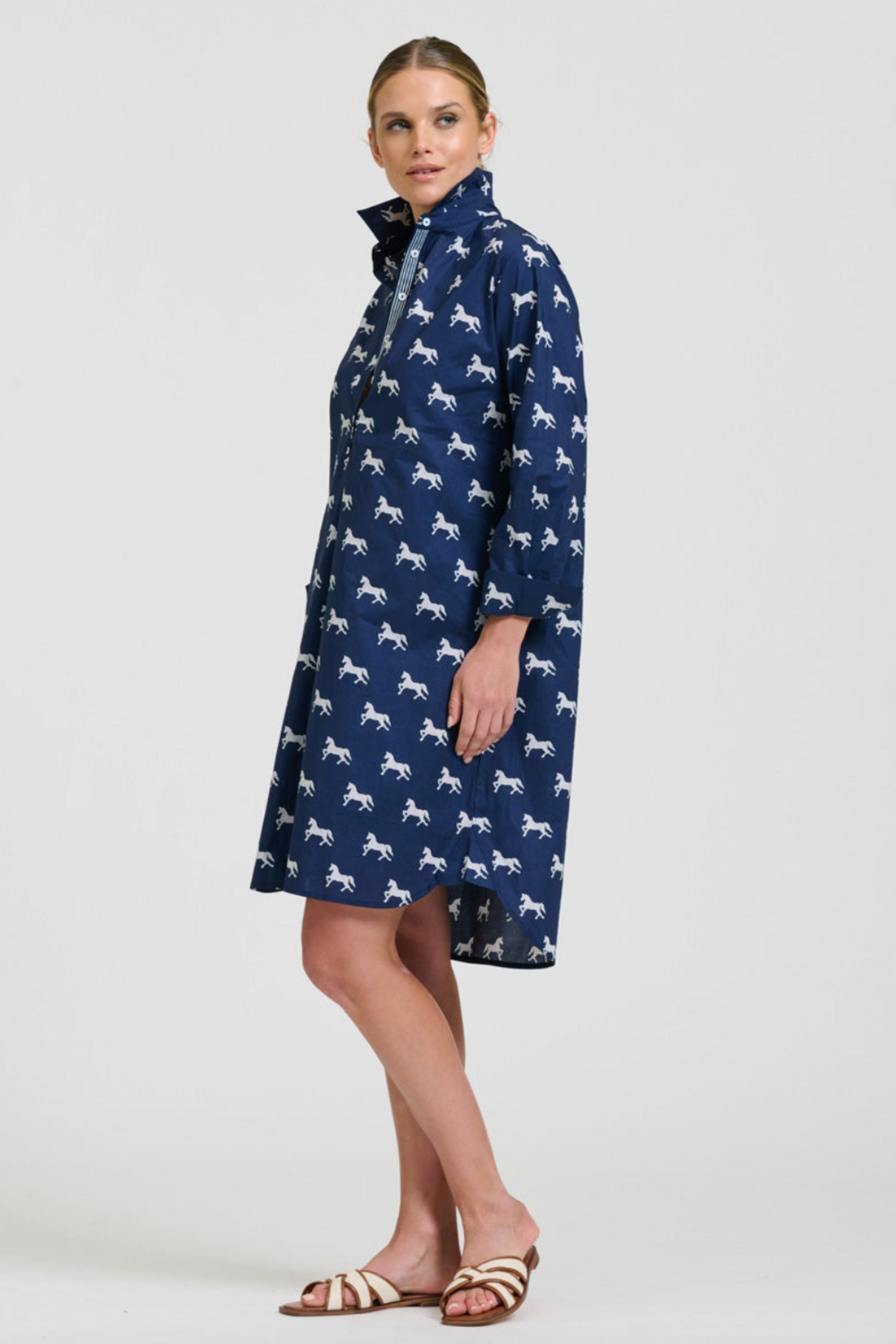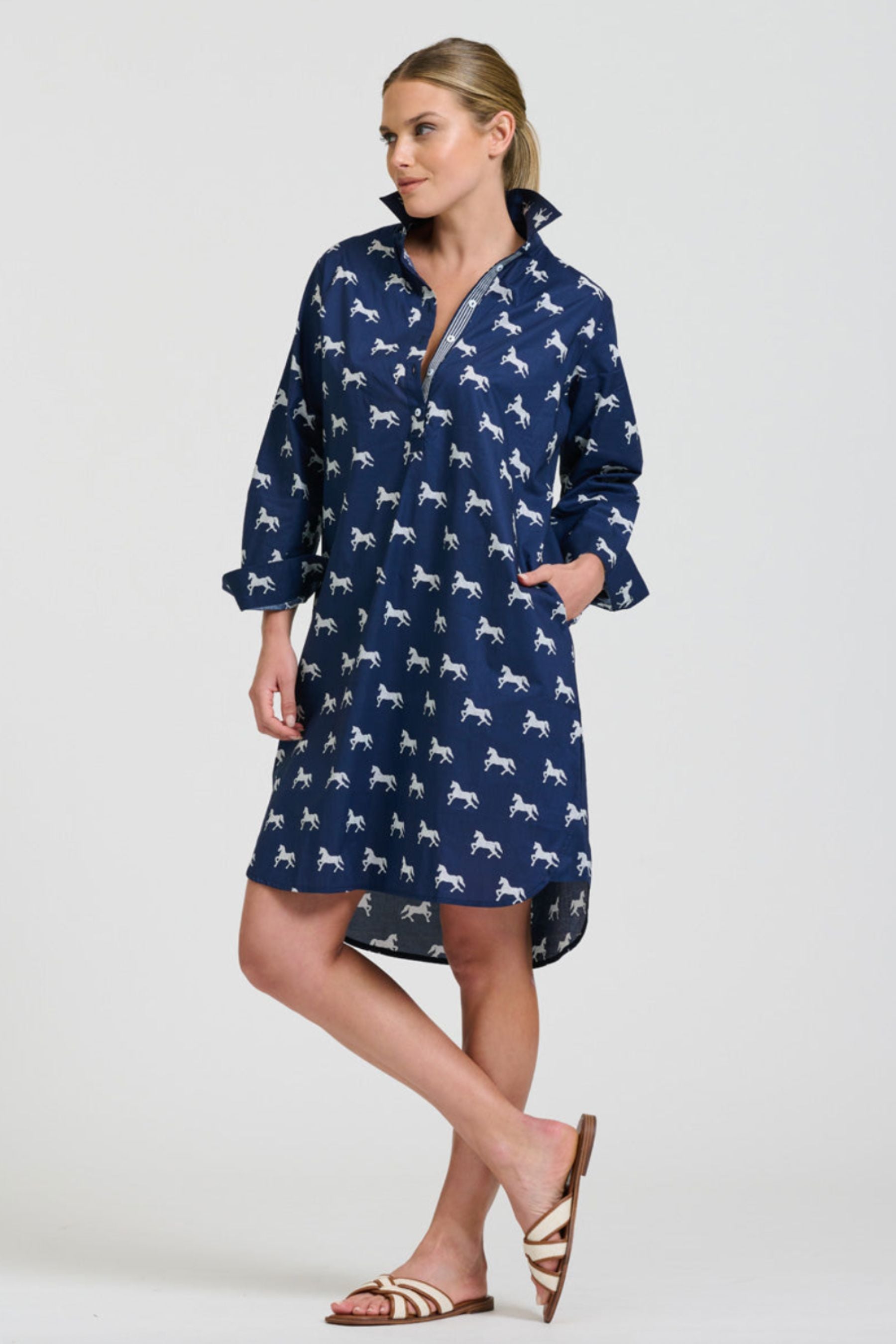 The Popover Shirtdress | Navy With White Pony Prance
