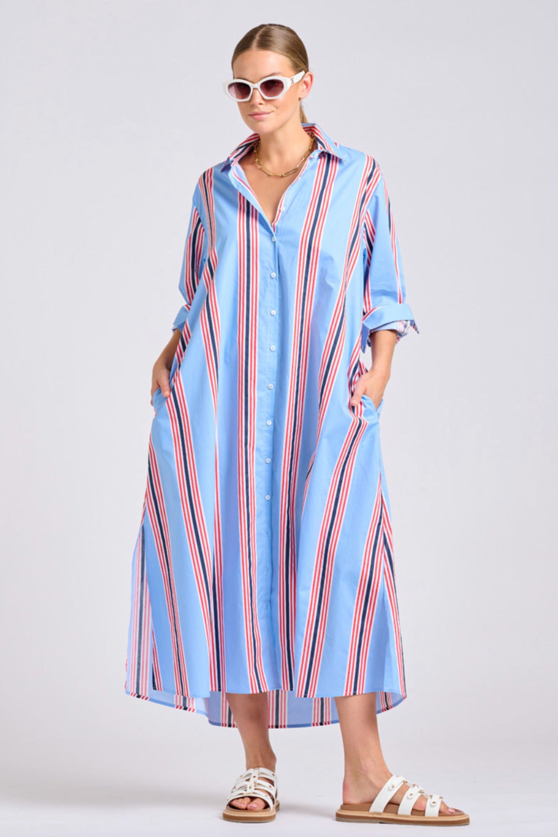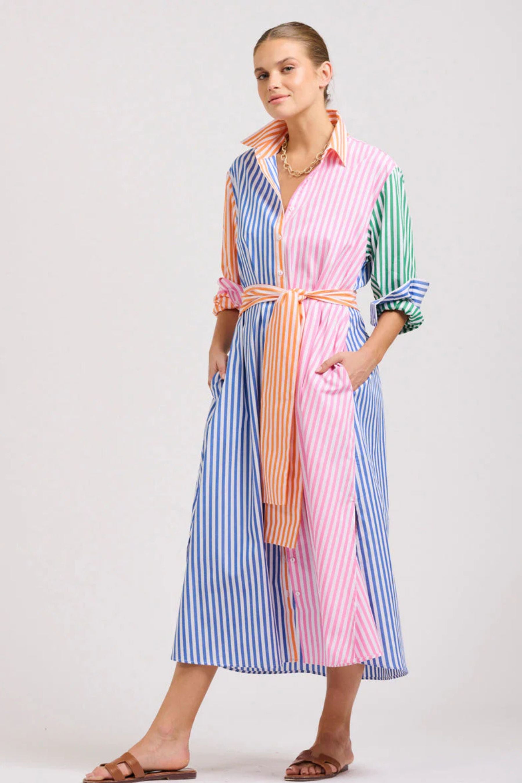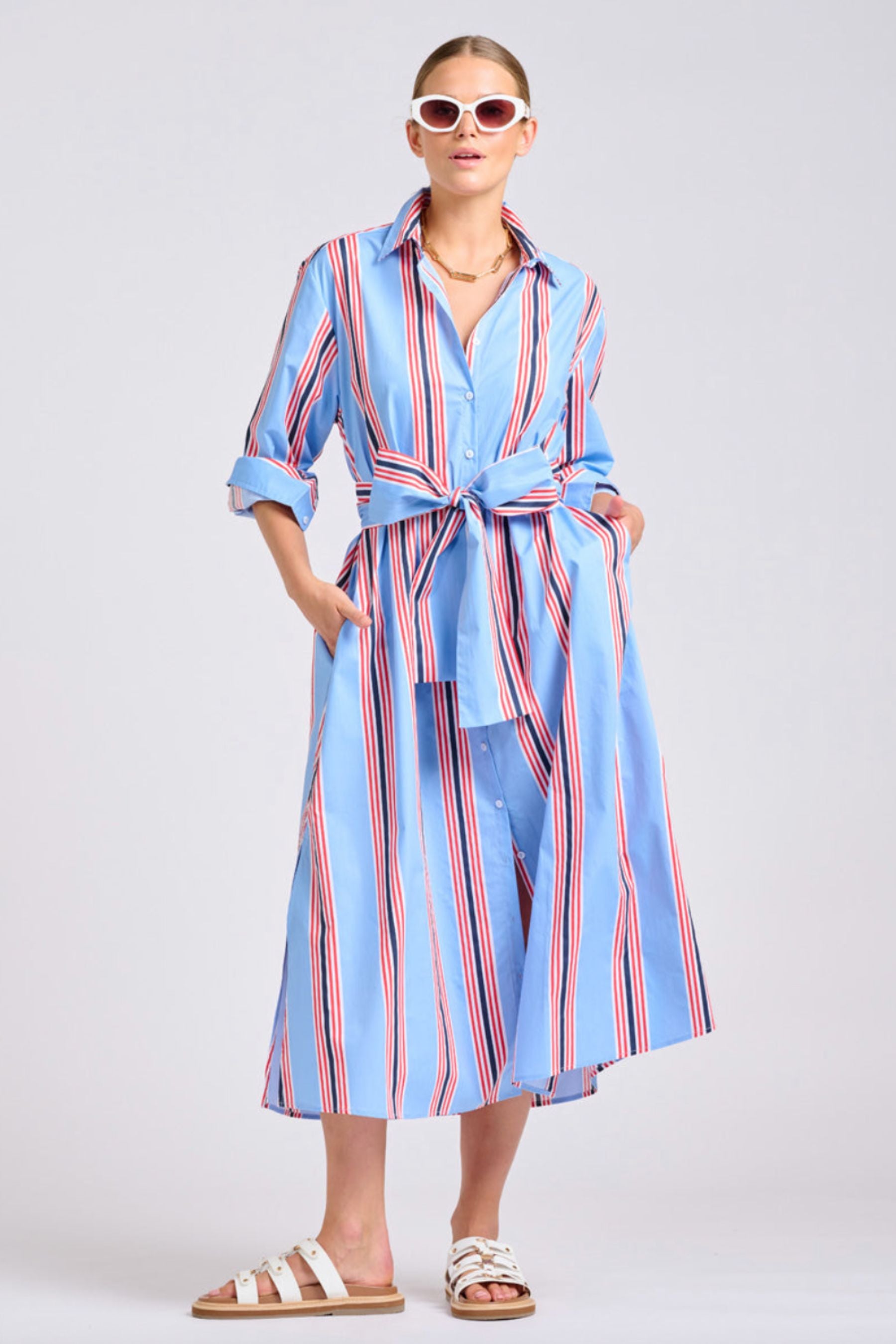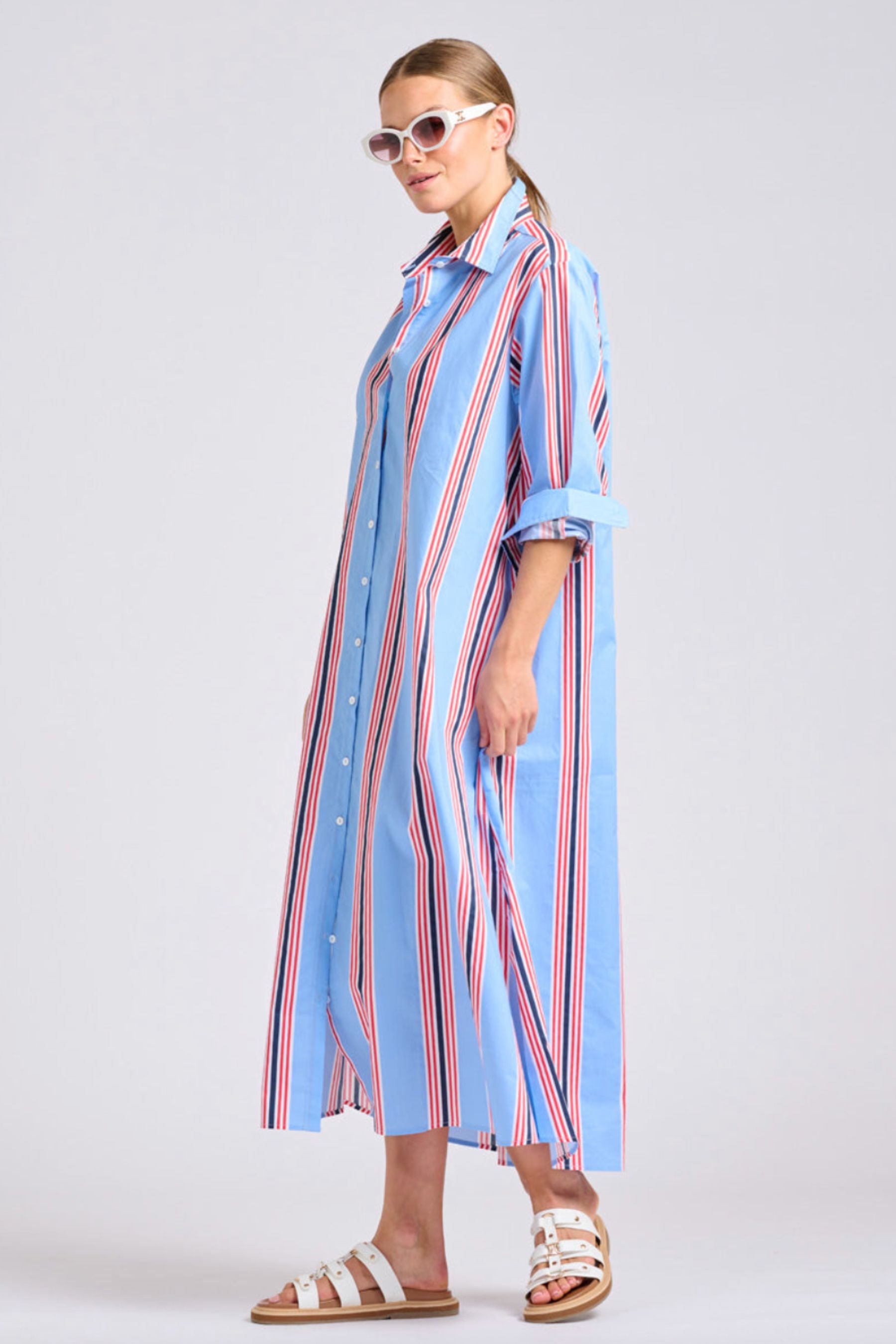 The Luna Long Shirt Dress | Bright Stripe Combo