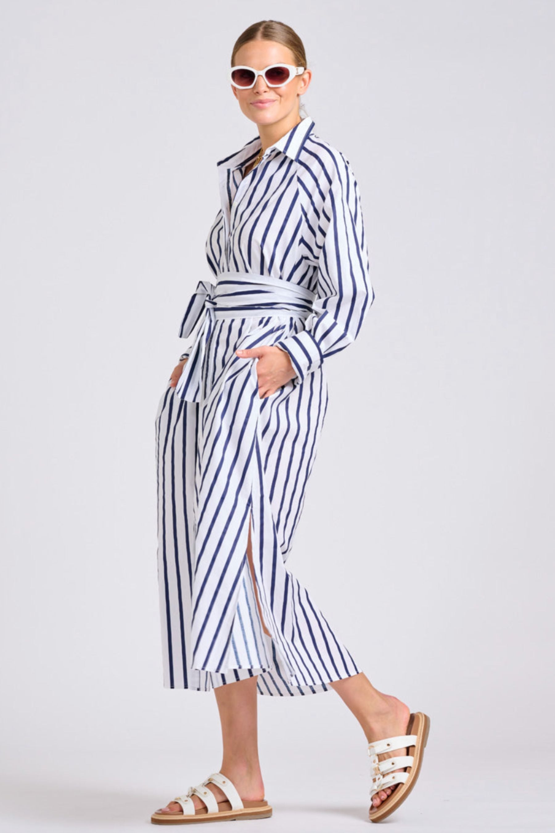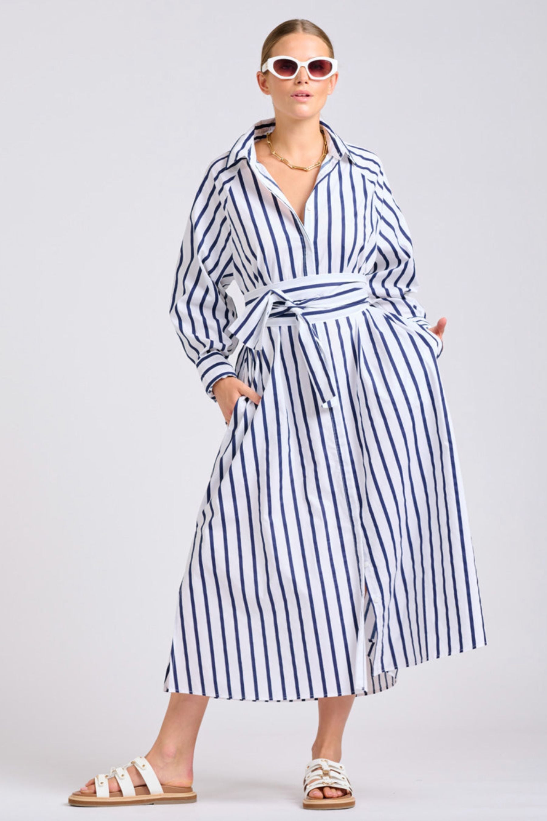 The Freya Shirt Dress | Navy Stripe