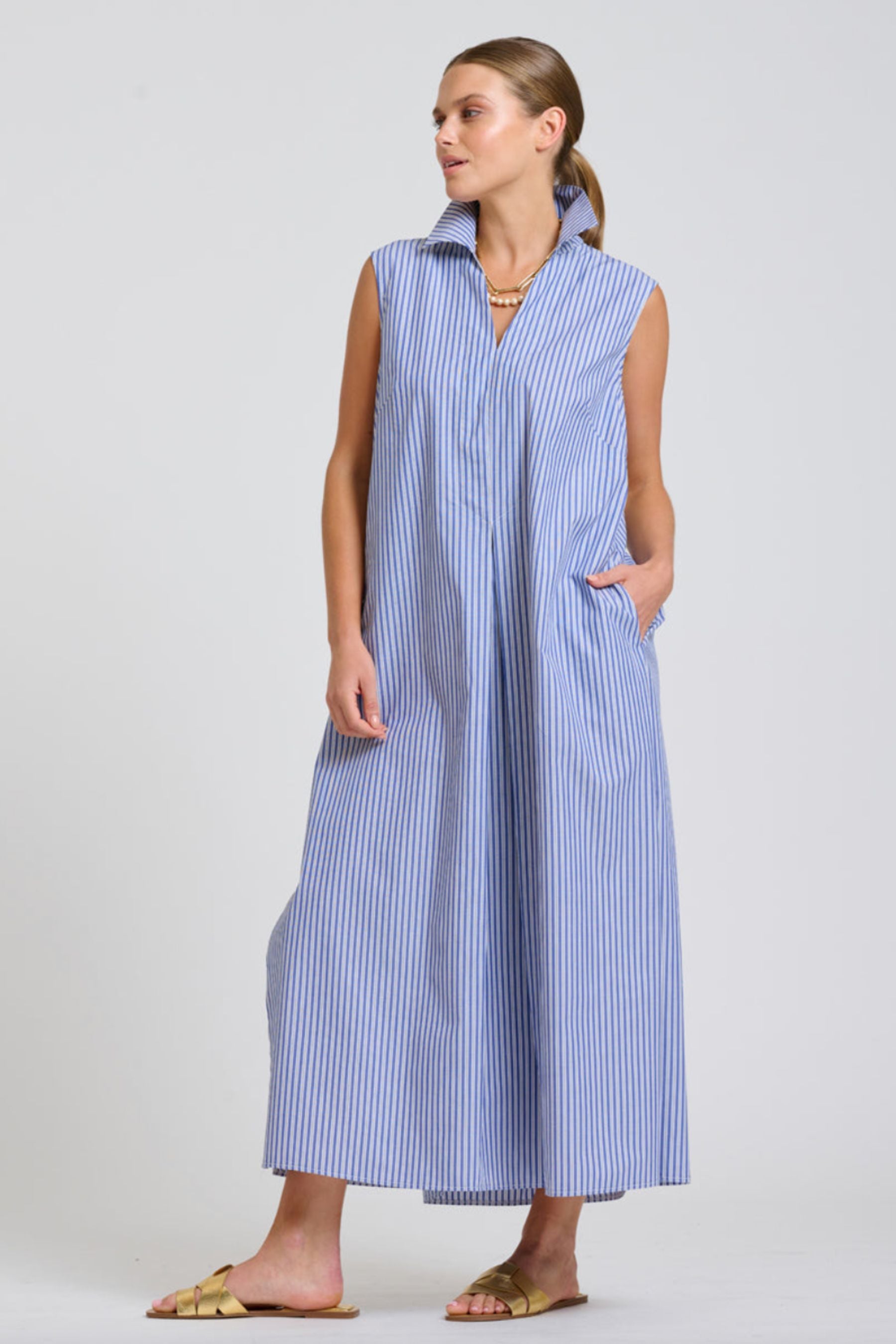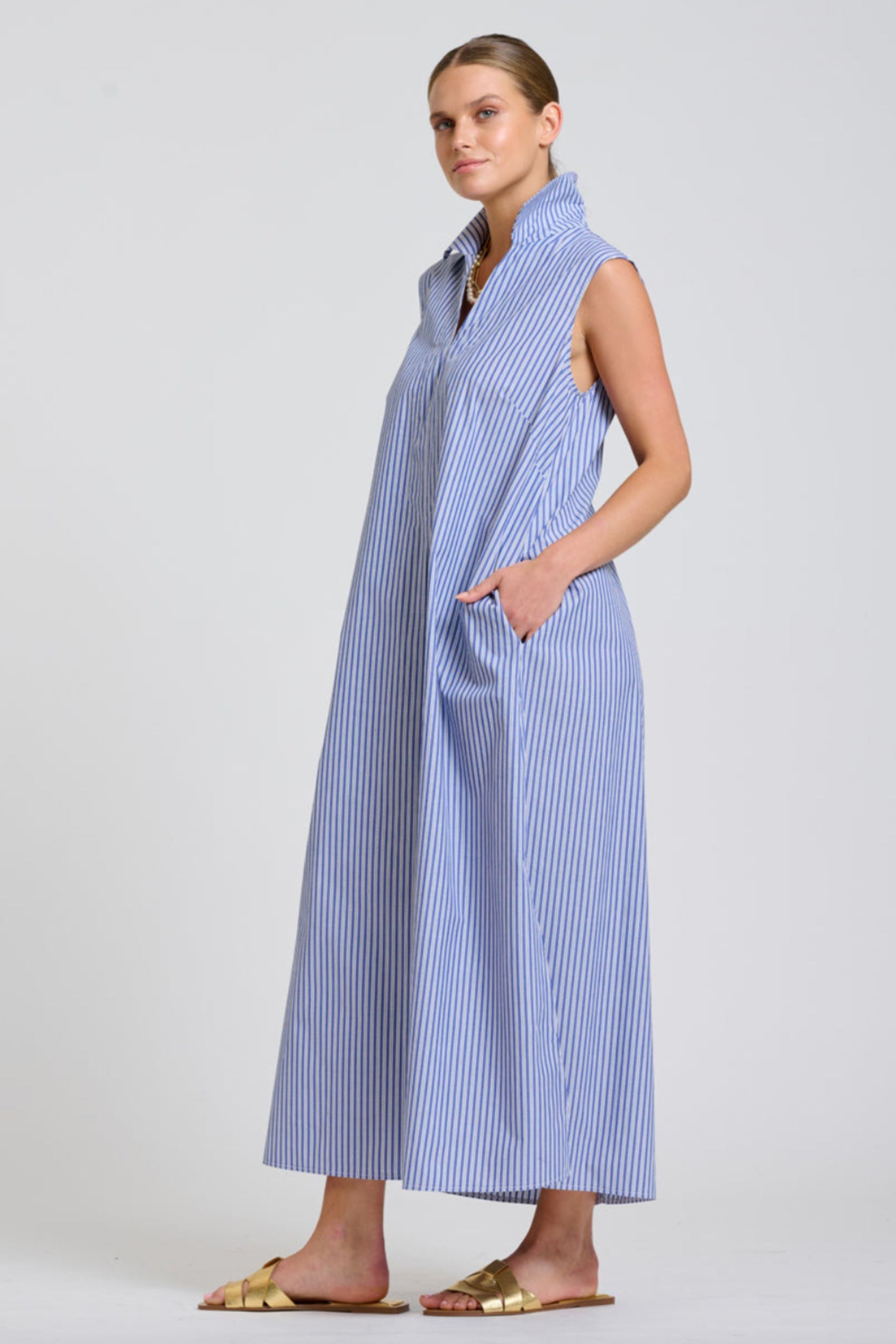 The Andrea Dress | Mid Blue Wide Stripe