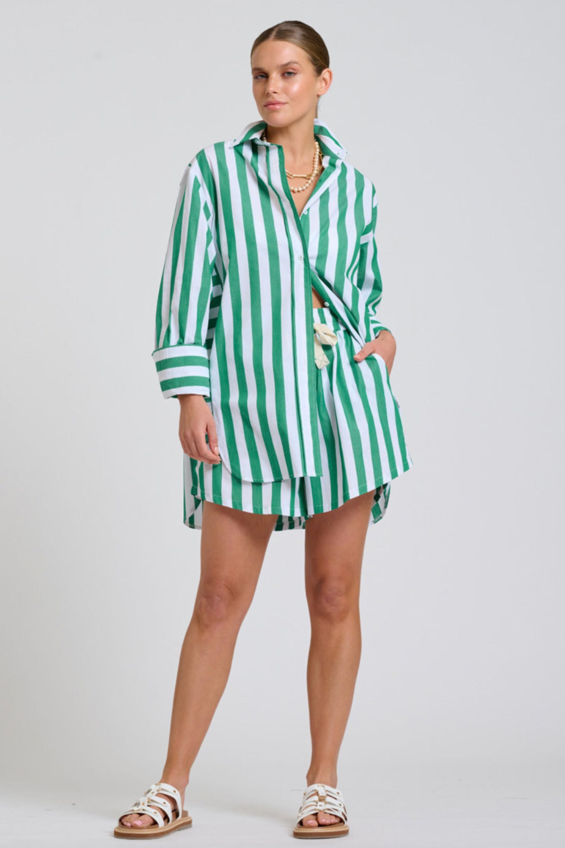 The Pippa Oversized Long Line Shirt Dress | Green Stripe