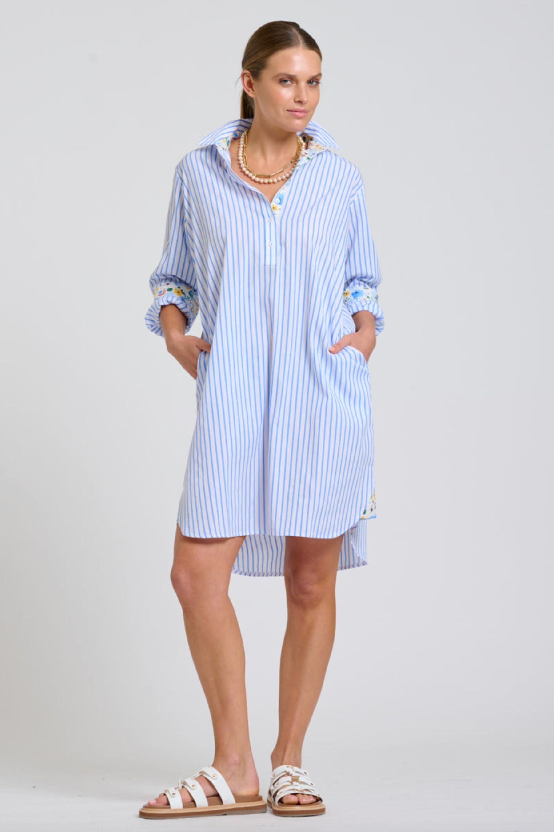 Popover Shirt Dress | Mid Blue Stripe/Floral