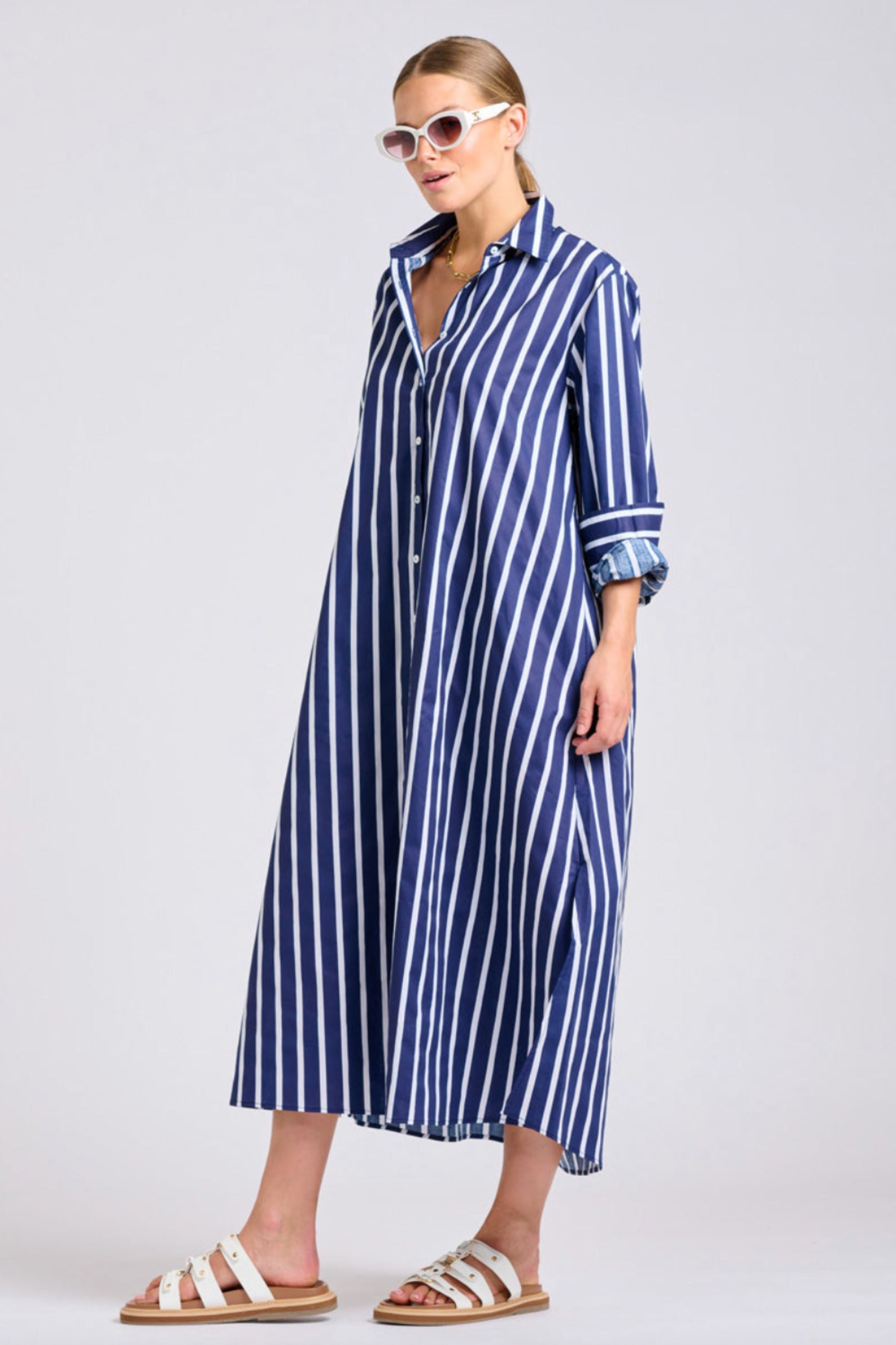 The Luna Oversized Dress | Navy With White Stripe