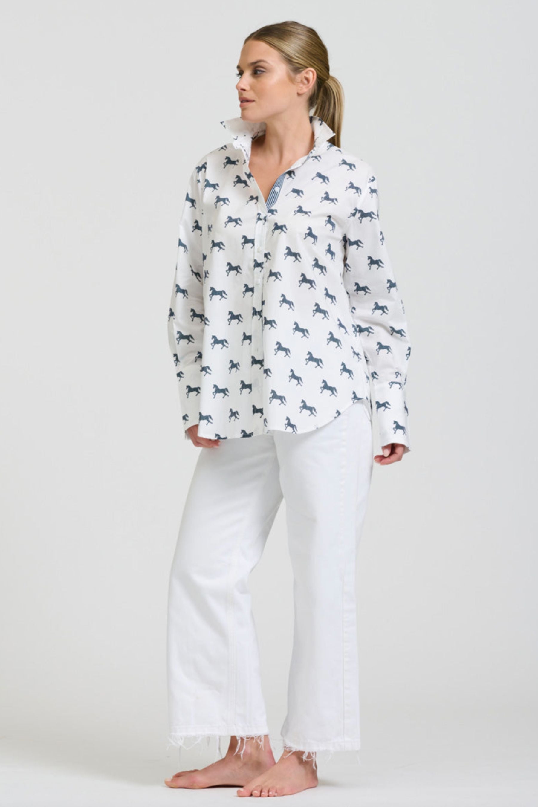 The Elodie Trim Girlfriend Relaxed Shirt | White With Navy Pony