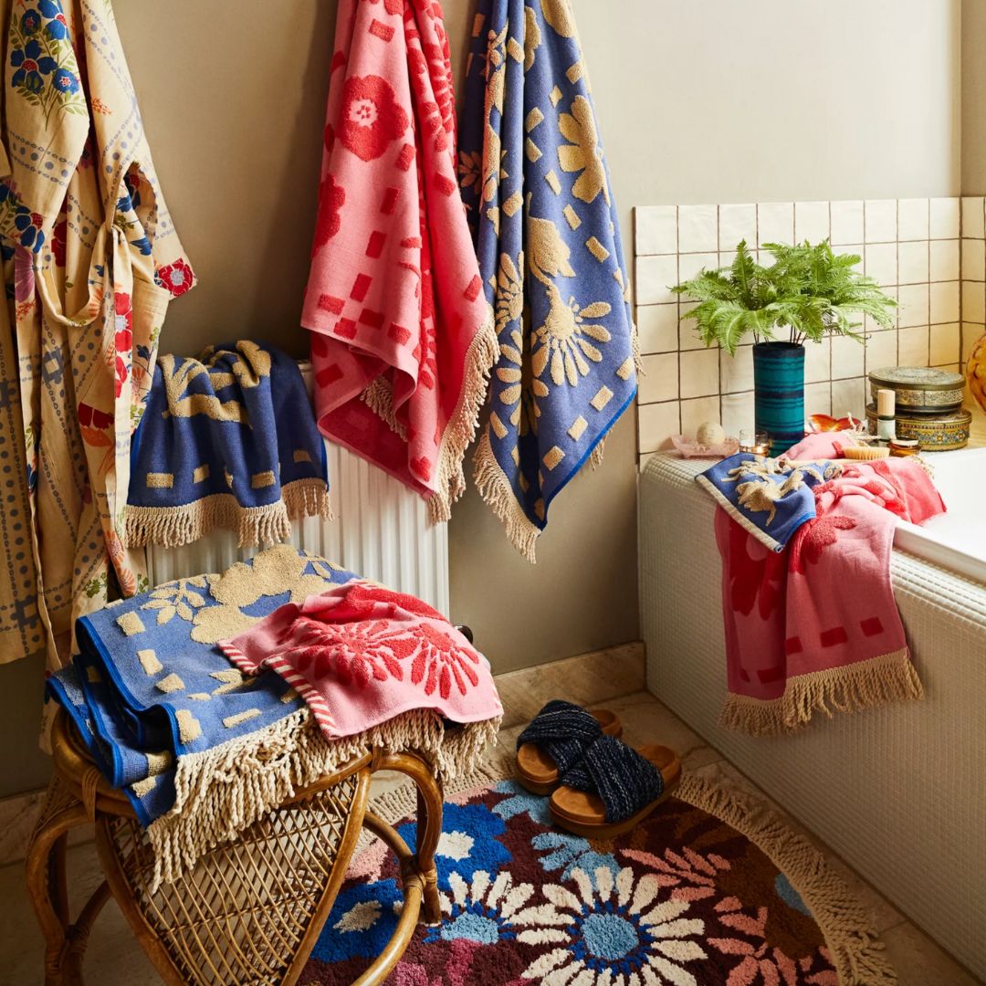 "Inspired by traditional woodblock printing, the Aja hand towel adds an artisanal touch to your space. The floral motifs invite nature indoors in the form of stunning desert blooms". – Phoebe’s Style Notes