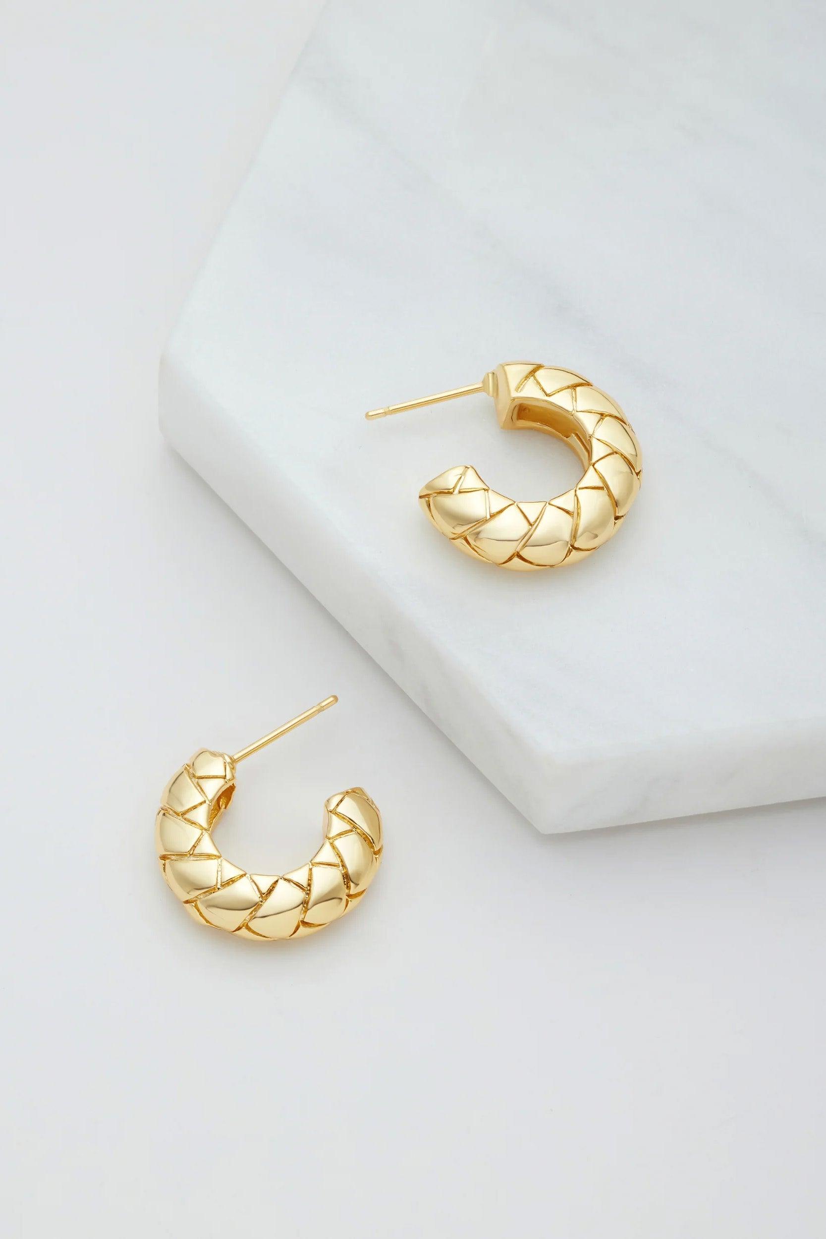 Introducing the Briana Hoops – classic hoops with an intricately engraved braided design. Lightweight and versatile, these earrings effortlessly elevate your style with subtle sophistication for any occasion. Stand out with the timeless charm of the Briana Hoops, a perfect blend of classic and unique.