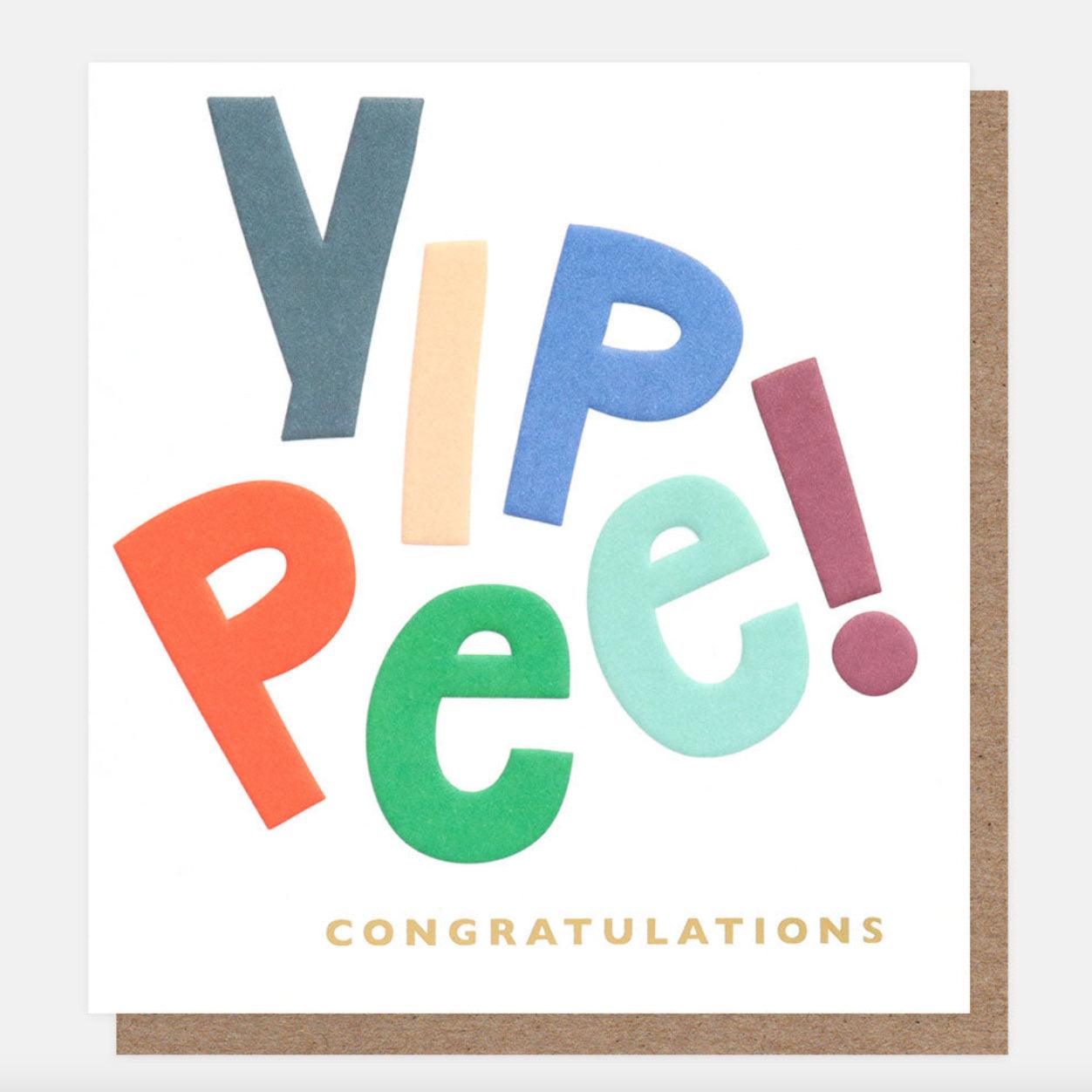 The Yippee card range brings the summer party vibes with explosions of confetti around hand drawn captions, in a celebration of colour, finished with gold foil detailing.